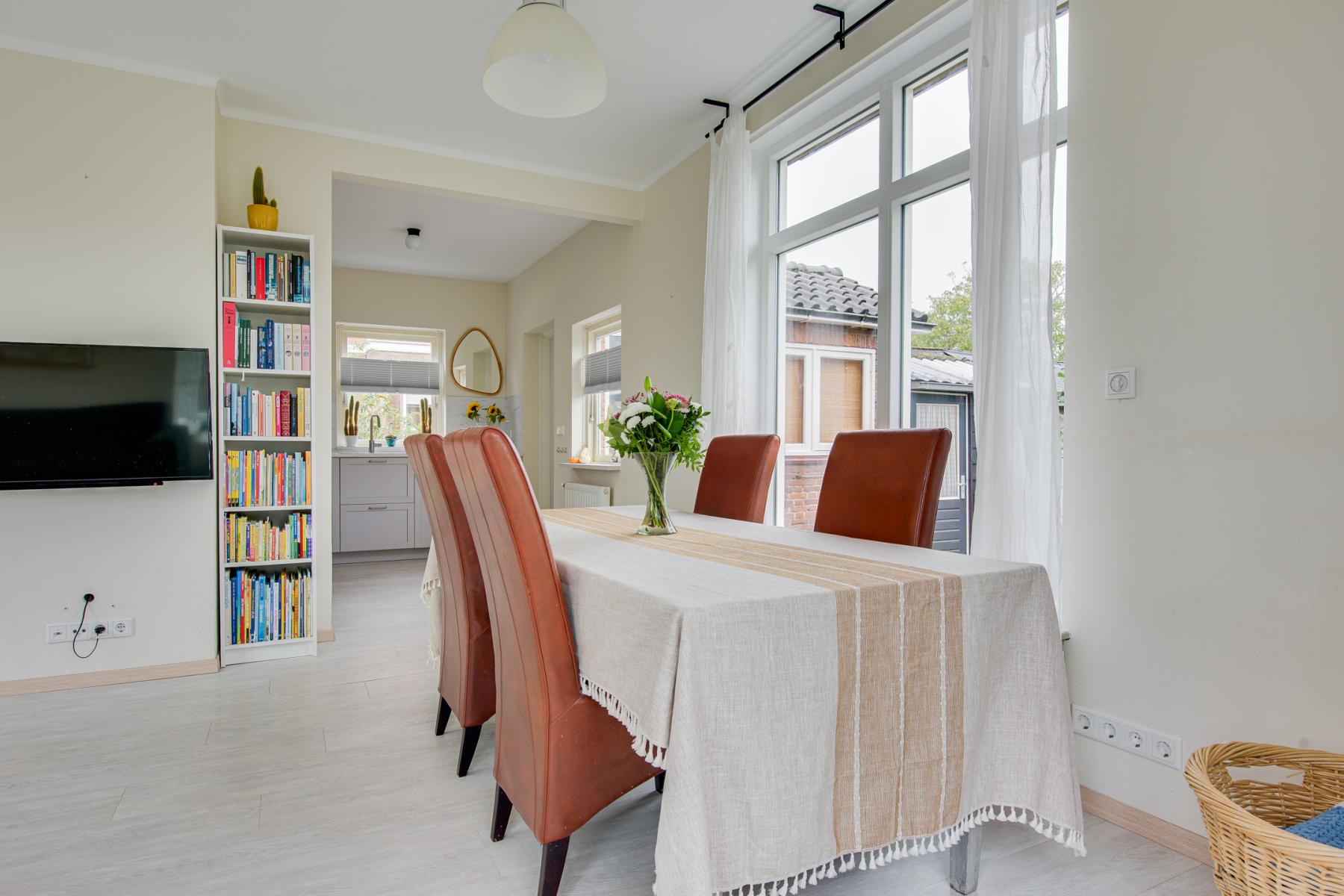 Op de begane grond vind je een ruime woonkamer waar je heerlijk kunt ontspannen of gezellig samenkomt. Door het grote raam aan de voorzijde èn de gezellige erker heeft de woonkamer veel lichtinval. In de woonkamer is bovendien een inverter aanwezig. De eetkamer met aangrenzende keuken biedt volop ruimte om uitgebreid te koken en te tafelen – ideaal voor een gezellige avond met vrienden of familie. De keuken is voorzien van inductiekookplaat, afzuigkap, 1,5 spoelbak, vaatwasser en combi-oven.