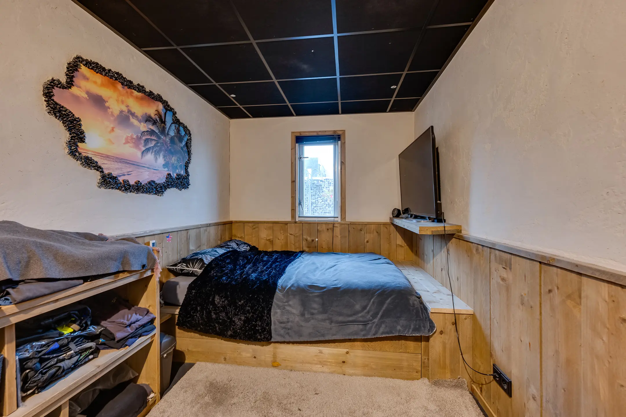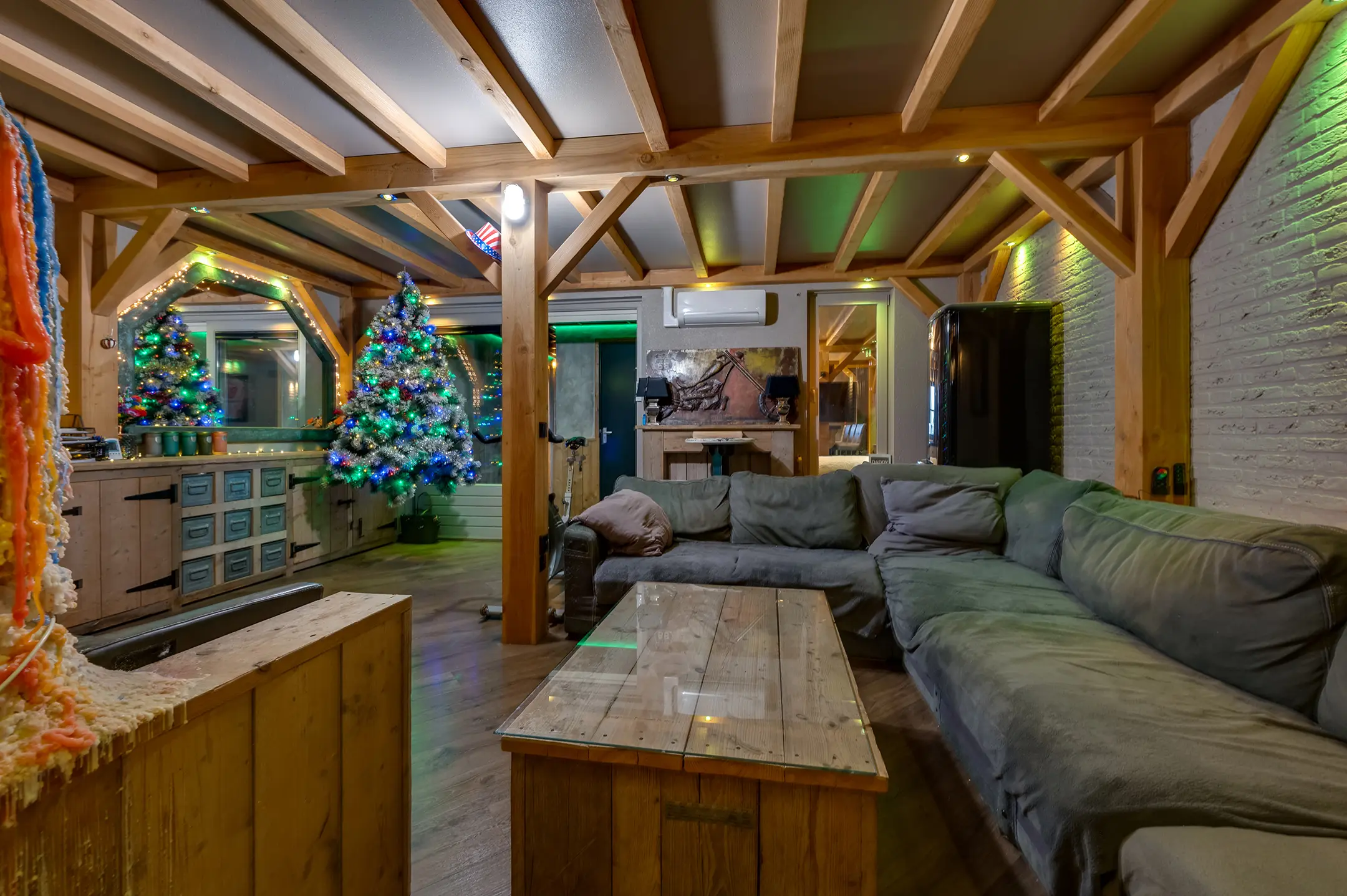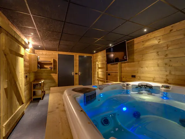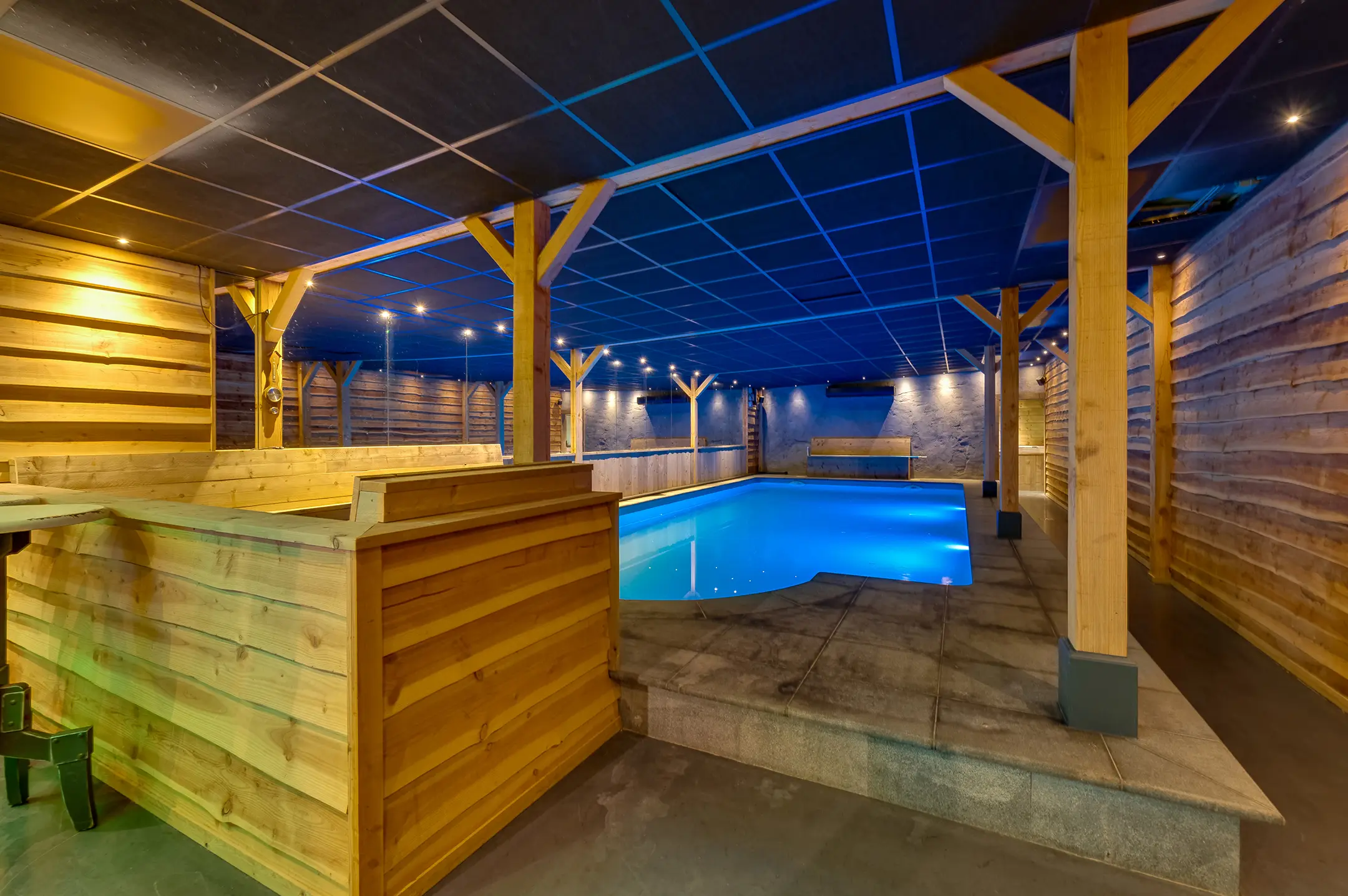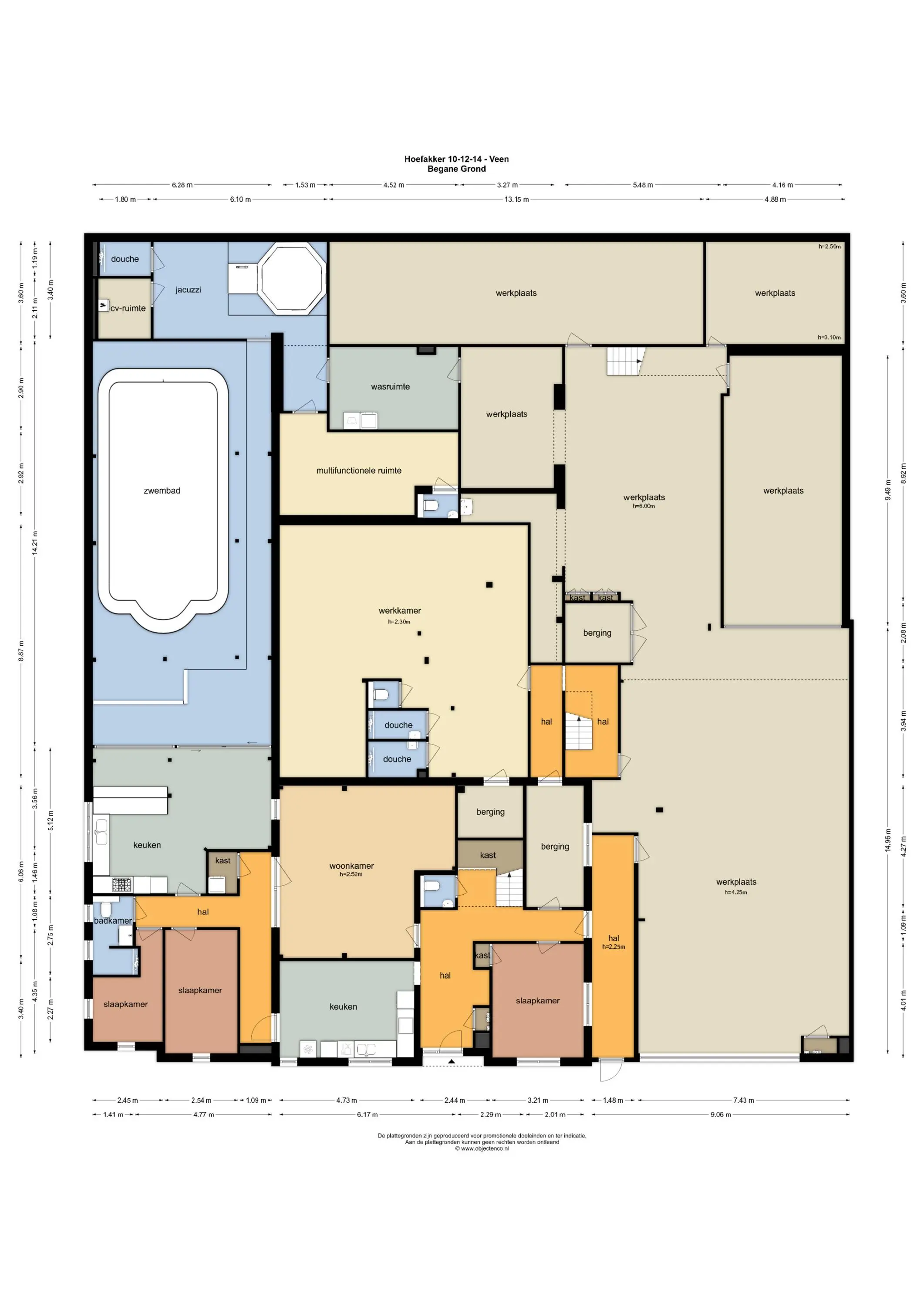 Eigen entree/hal met giet betonvloer en systeemplafond. Wasruimte met aansluitpunten wasapparatuur en unit vloerverwarming. Slaapkamer met betonvloer met vloerverwarming, systeemplafond, houten kozijnen met dubbel glas en airco unit. Slaapkamer 2 met giet betonvloer met vloerverwarming, systeemplafond en houten kozijnen met dubbel glas. Geheel betegelde badkamer met vloerverwarming, inloopdouche, hangend toilet, wastafelmeubel en houten kozijnen met dubbel glas. Woonkeuken met giet betonvloer met vloerverwarming en een U-vormig keukenblok met betonlook aanrechtblad met een 5-pits gaskookplaat, afzuigkap, combimagnetron, koel-/vriescombinatie, dubbele spoelbak en airco unit. Zwembad met loungeruimte. Jacuzzi ruimte met grote jacuzzi voor meerdere personen. Technische ruimte met de pomp van het zwembad, unit vloerverwarming en CV-combiketel. Geheel betegelde doucheruimte met inloopdouche. Multifunctionele ruimte 1 met laminaatvloer en designradiator. Multifunctionele ruimte 2 met laminaatvloer, designradiator en eigen toiletruimte met hangend toilet met fonteintje.