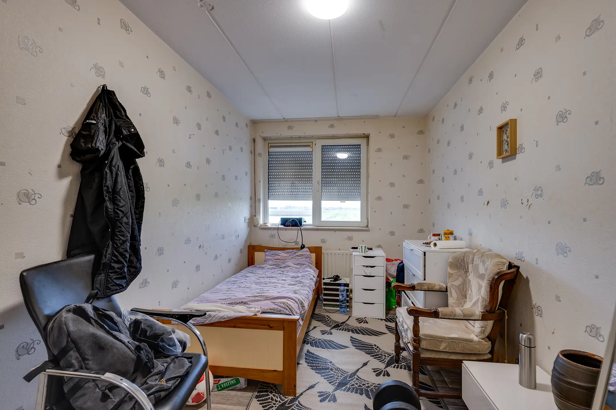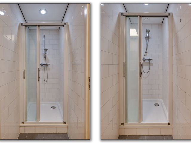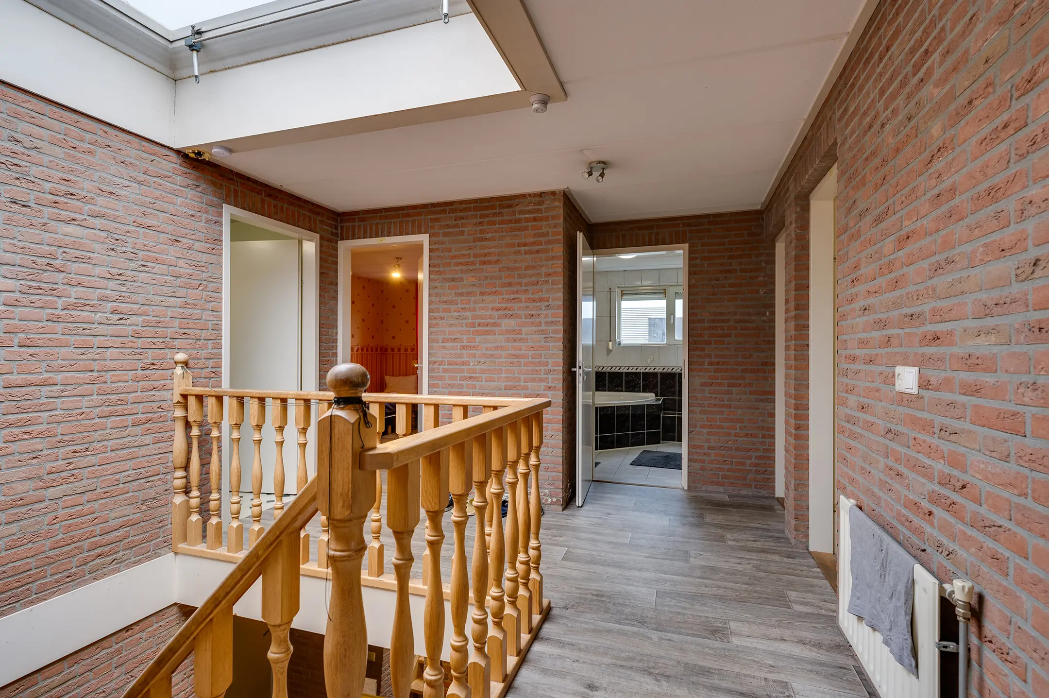 Slaapverdieping: overloop met zeil, schoonmetselwerk en lichtkoepel. Slaapkamer 1 met zeil, kunststof kozijnen met dubbel glas en rolluik. Slaapkamer 2 met zeil, kunststof kozijnen met dubbel glas en rolluik. Slaapkamer 3 met vloerbedekking, kunststof kozijnen met dubbel glas en rolluik. Slaapkamer 4 met zeil, kunststof kozijnen met dubbel glas en rolluik. Geheel betegelde toiletruimte met hangend toilet en fonteintje. Geheel betegelde badkamer met ligbad, douchecabine, designradiator, dubbel wastafelmeubel, kunststof kozijnen met dubbel glas en rolluik. Inpandige wasruimte met aansluitpunten wasapparatuur, unit mechanische ventilatie en opstelplaats CV-combiketel (Nefit uit ca 1997).