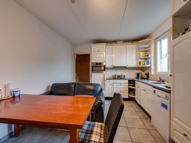 Begane grond: entree/hal met tegelvloer en schoonmetselwerk, meterkast (nieuwe groepenkast met 9 groepen, 3 aardlekschakelaars en krachtstroom), woonkeuken met tegelvloer en kunststof kozijnen met dubbel glas. De keuken is voorzien van een L-vormig keukenblok met keramische kookplaat, afzuigkap, combimagnetron en koelkast. Woonkamer met laminaatvloer, airco unit en balken plafond. Geheel betegelde toiletruimte met hangend toilet, slaapkamer begane grond met zeil, kunststof kozijnen met dubbel glas en vaste kast. Inpandige berging met tegelvloer.