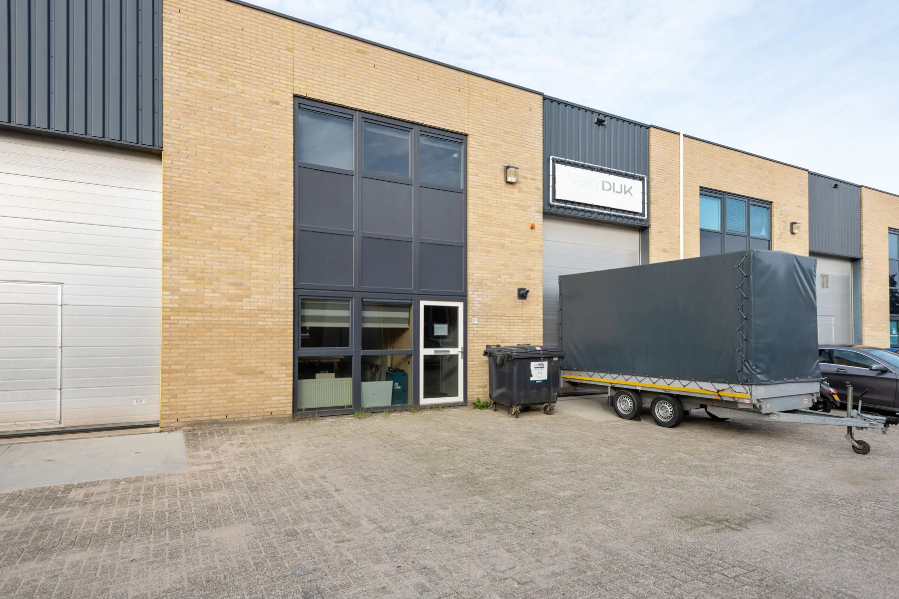 In de bedrijfsruimte is een overheaddeur met loopdeur en CV combiketel, merk Remeha.