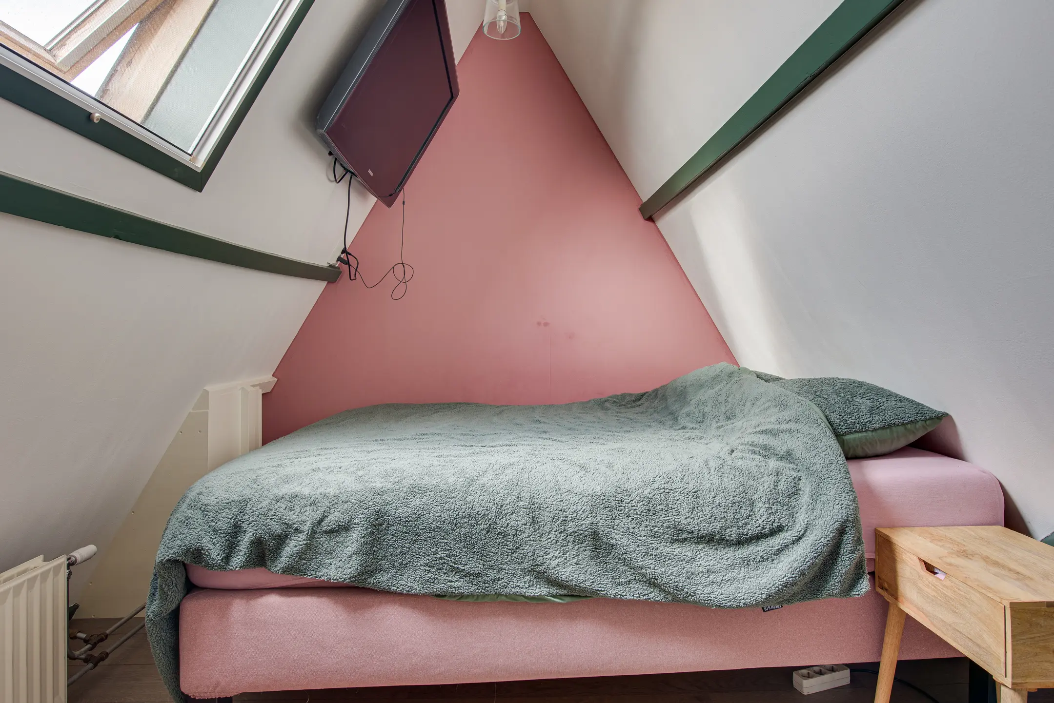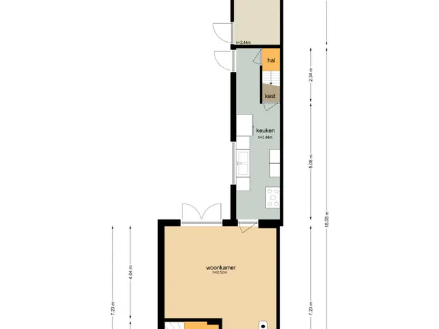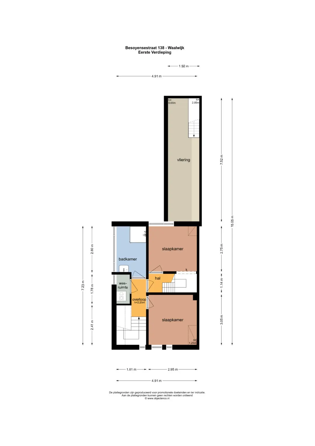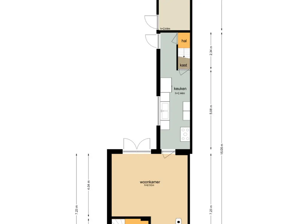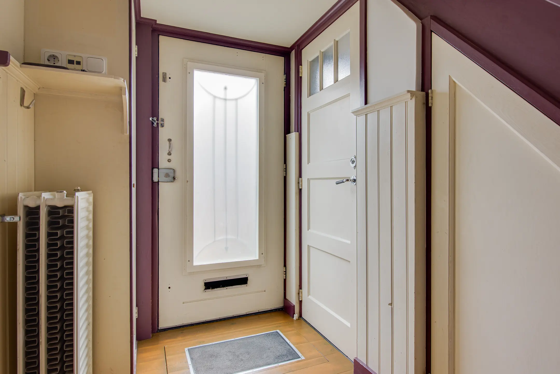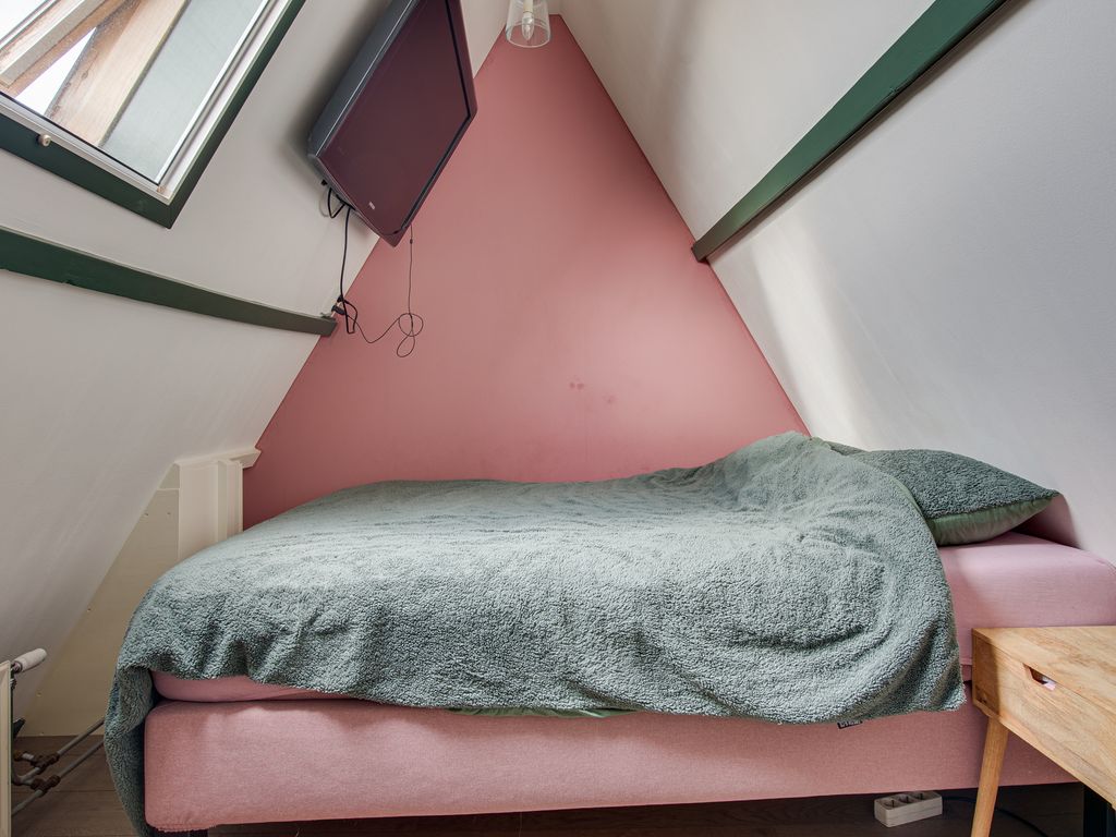 Achter de keuken bevindt zich nog een hal met toegang tot een ruime vliering – perfect voor extra opslagruimte.