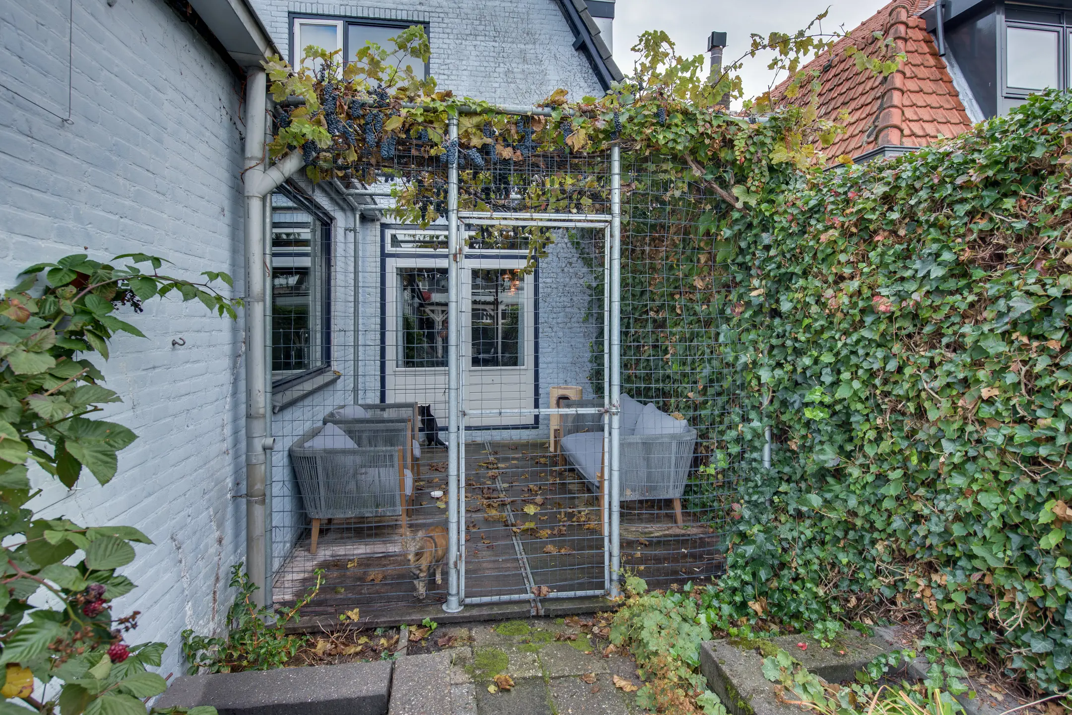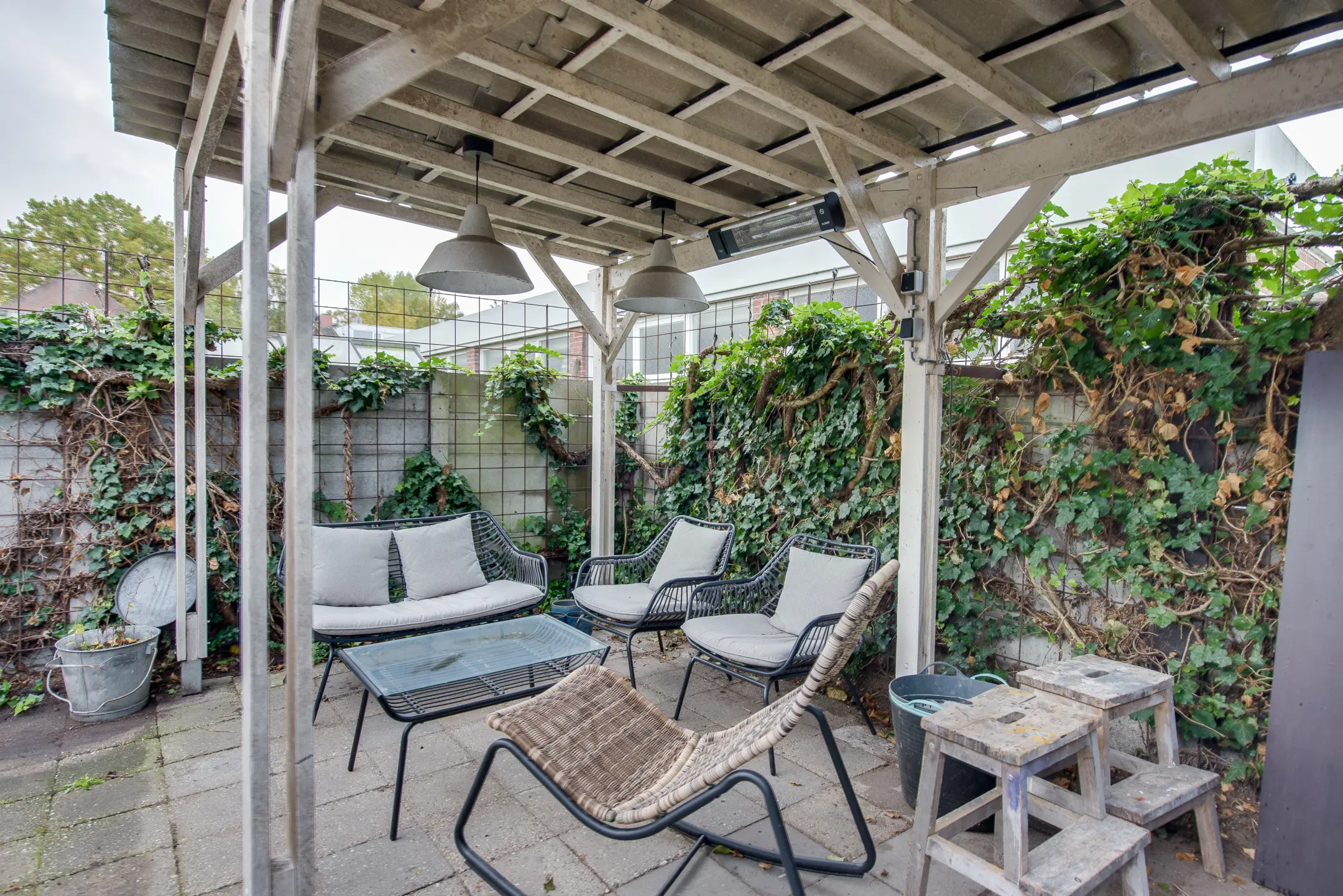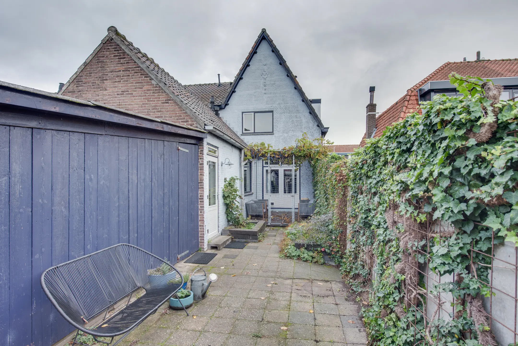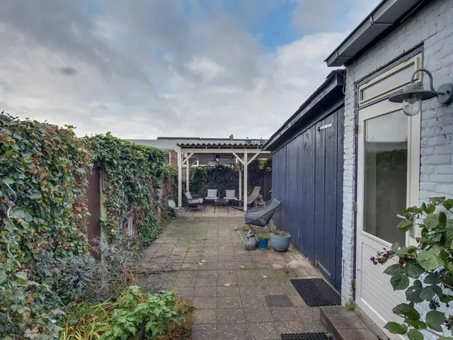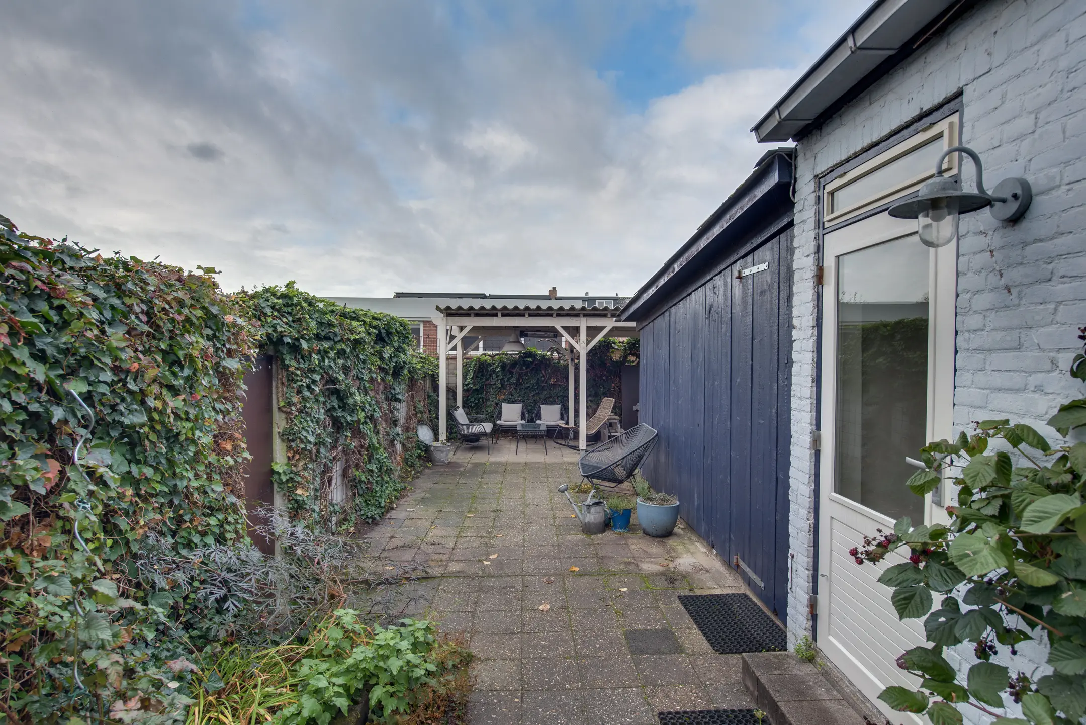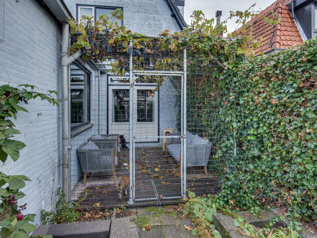 De achtertuin, gelegen op het westen, is een fijne plek om te ontspannen en te genieten van de middag- en avondzon. De tuin beschikt over een achterom en een houten berging met elektriciteit. Achterin de tuin staat een overkapping – perfect voor gezellige zomeravonden, ook als er een buitje valt.