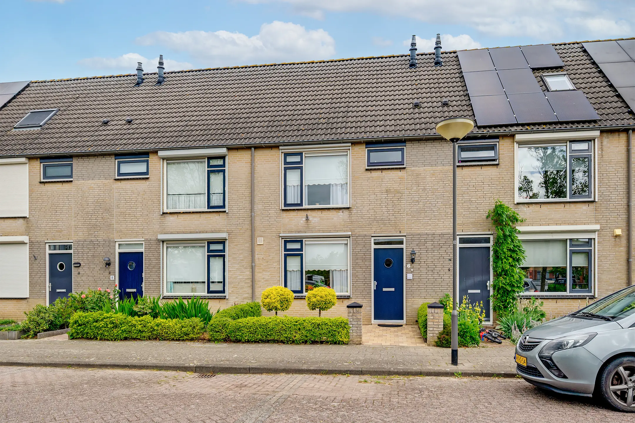 De achtertuin is netjes aangelegd en volledig omheind met een houten schutting. Er is een berging én een achterom, wat altijd handig is. Aan de achtergevel hangt een elektrisch zonnescherm voor de nodige verkoeling op warme dagen.