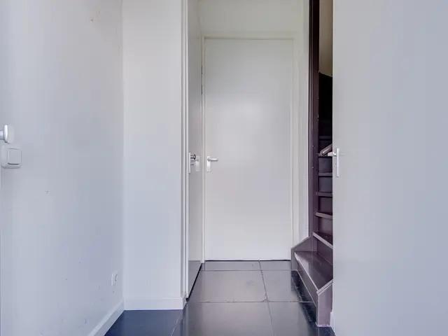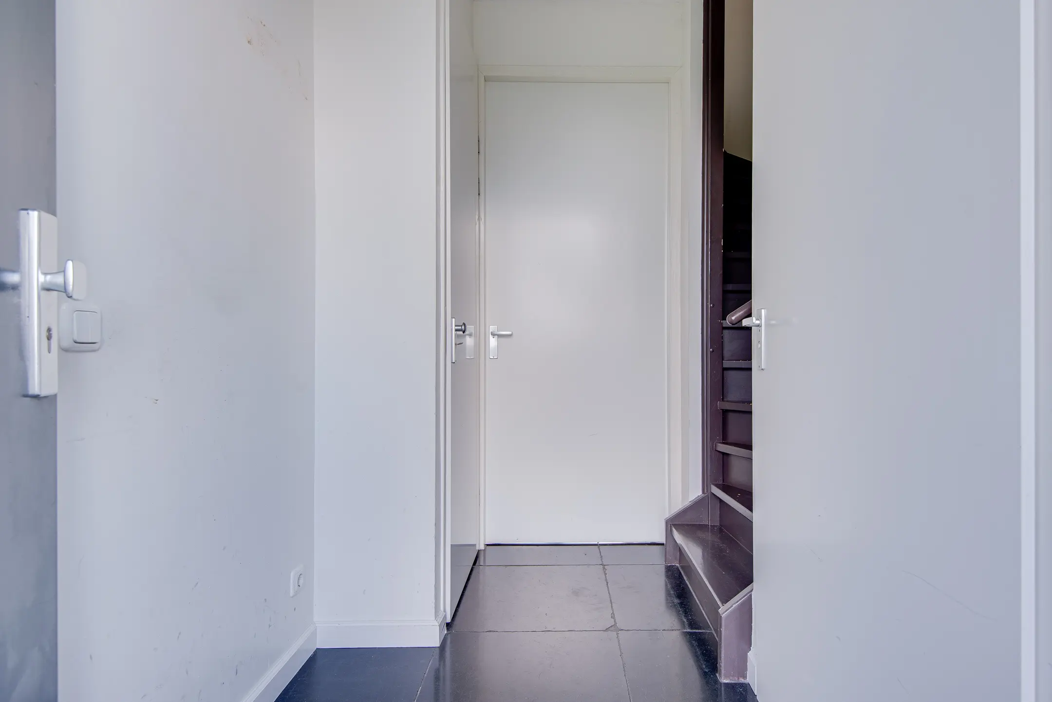 Je komt binnen in een nette hal met tegelvloer en comfortabele vloerverwarming. Hier vind je ook de meterkast (met een moderne groepenkast: 11 groepen en 2 aardlekschakelaars) en een fris afgewerkte toiletruimte met hangend toilet en fonteintje.