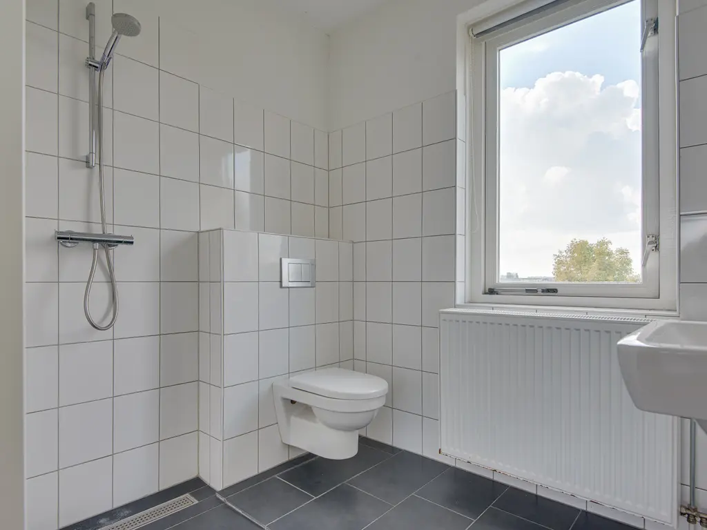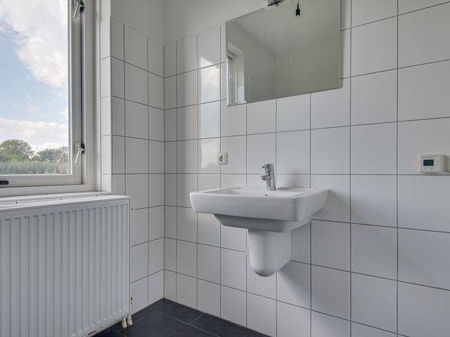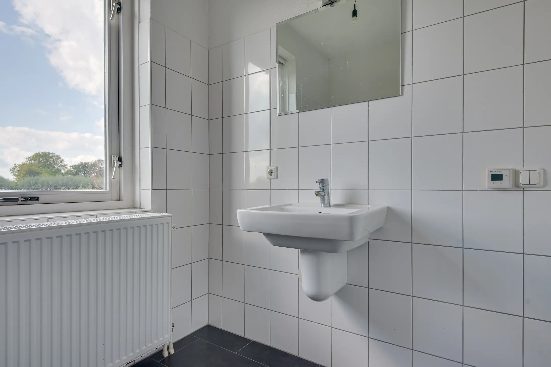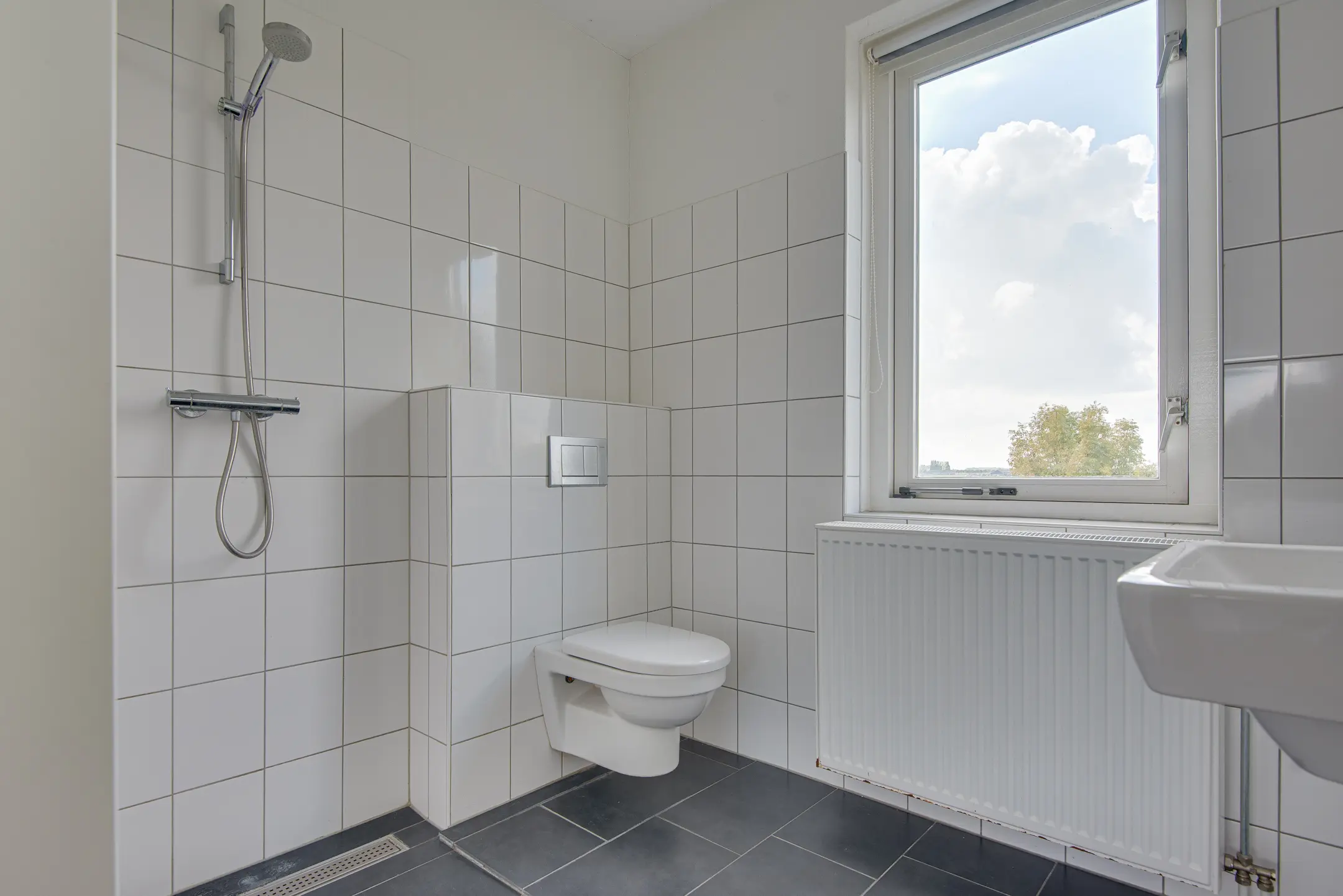 Op de eerste verdieping zijn drie keurige slaapkamers, allemaal voorzien van laminaatvloer, houten kozijnen met HR++ glas en elektrische rolluiken – ideaal voor een goede nachtrust. De volledig betegelde badkamer is uitgerust met een inloopdouche, een wastafel en hangend toilet van Villeroy & Boch en ook hier een elektrisch rolluik.