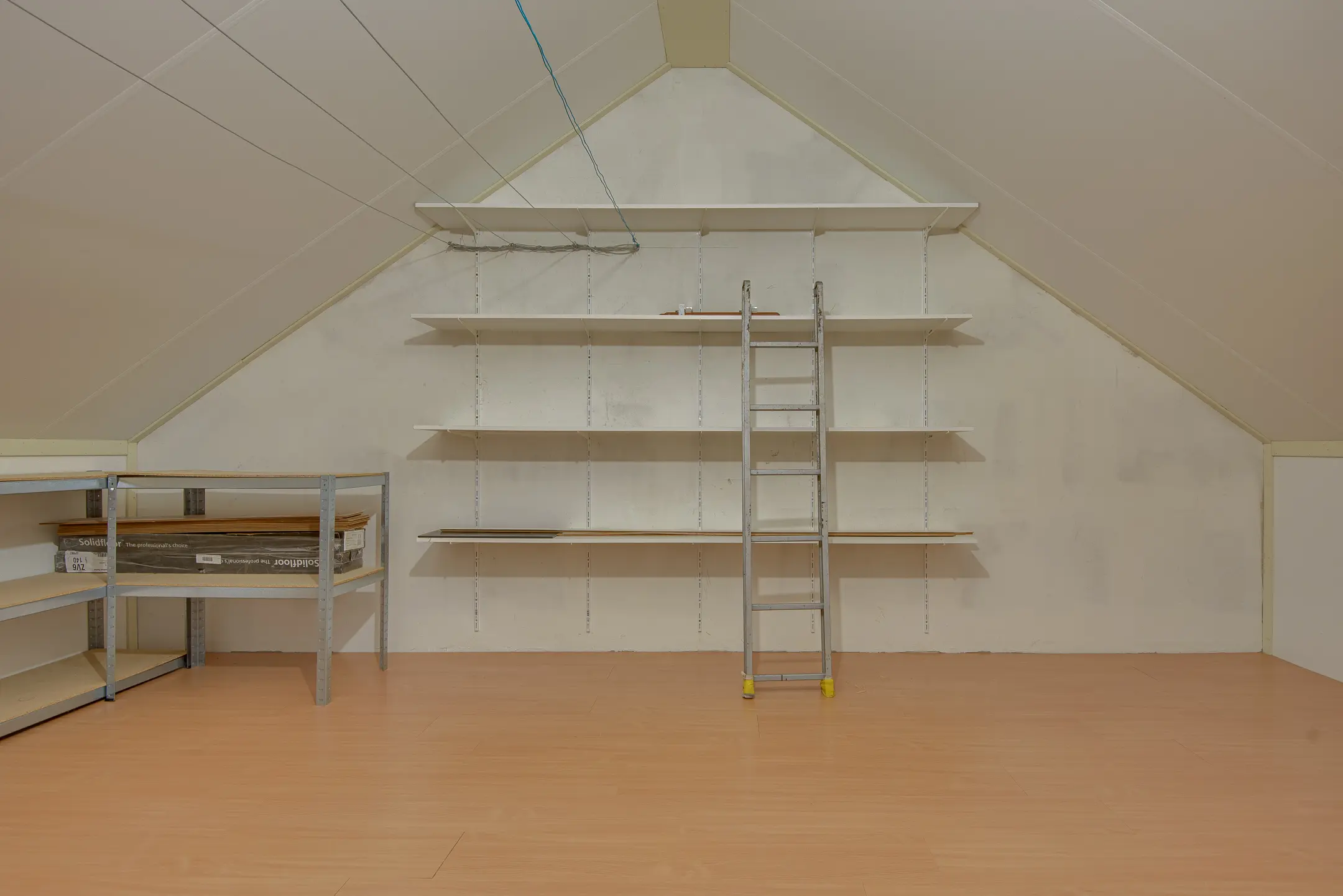 Via een vaste trap bereik je de ruime zolder met laminaatvloer, waar je eenvoudig een extra kamer kunt creëren. Hier vind je ook de CV-combiketel (Nefit, 2010) en de mechanische ventilatie-unit.