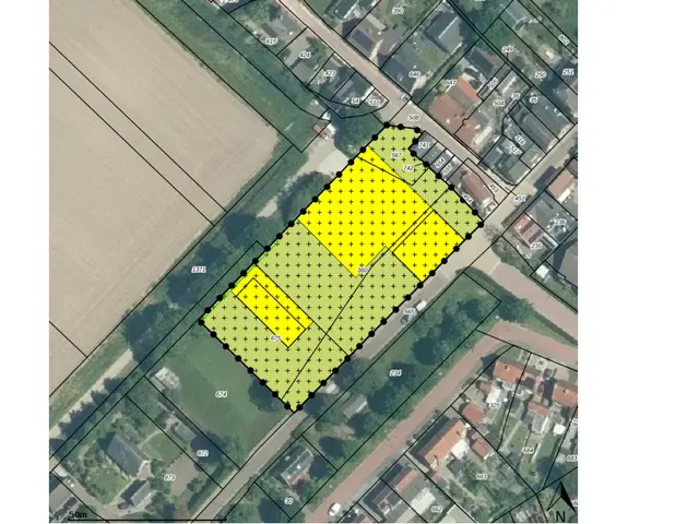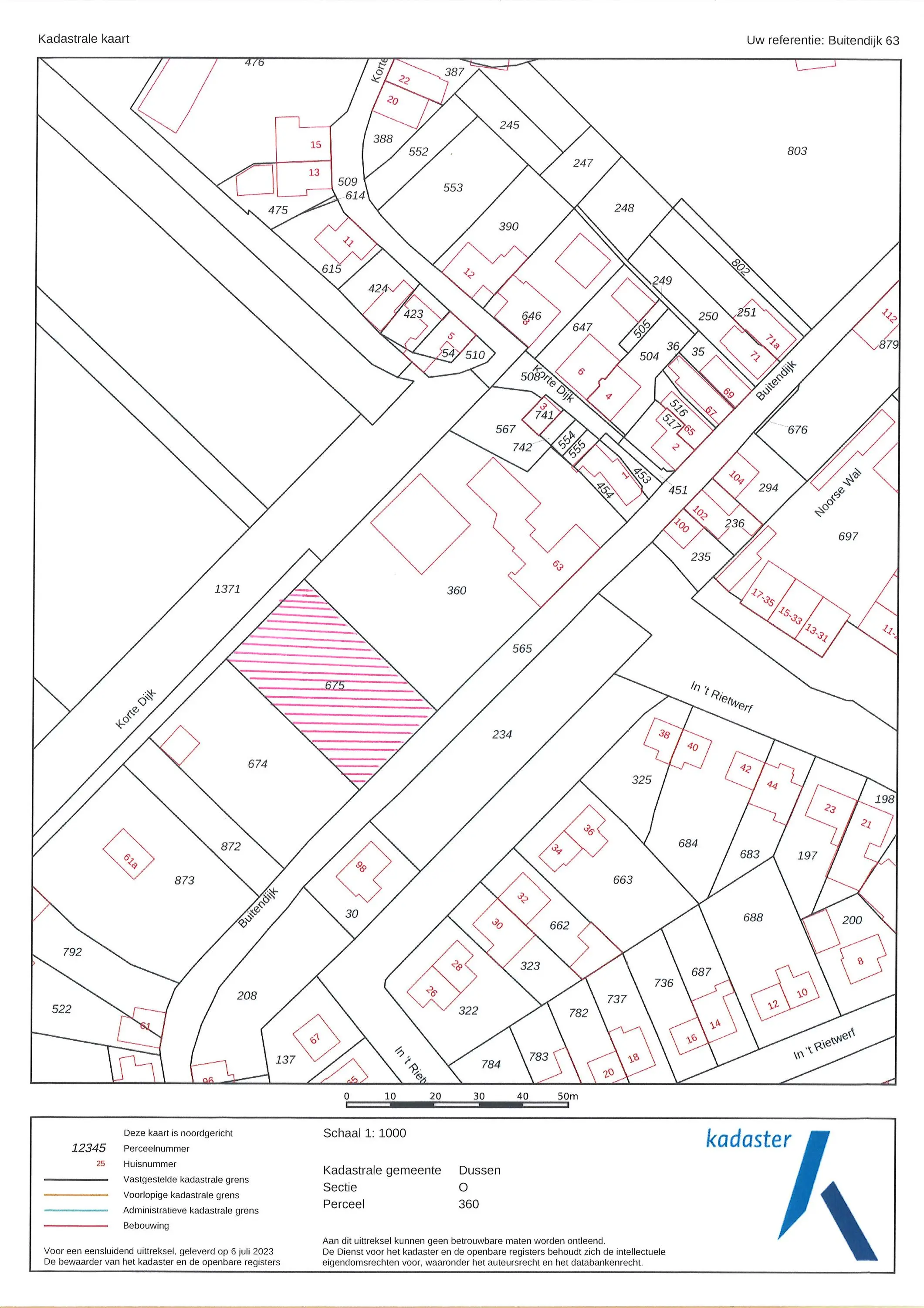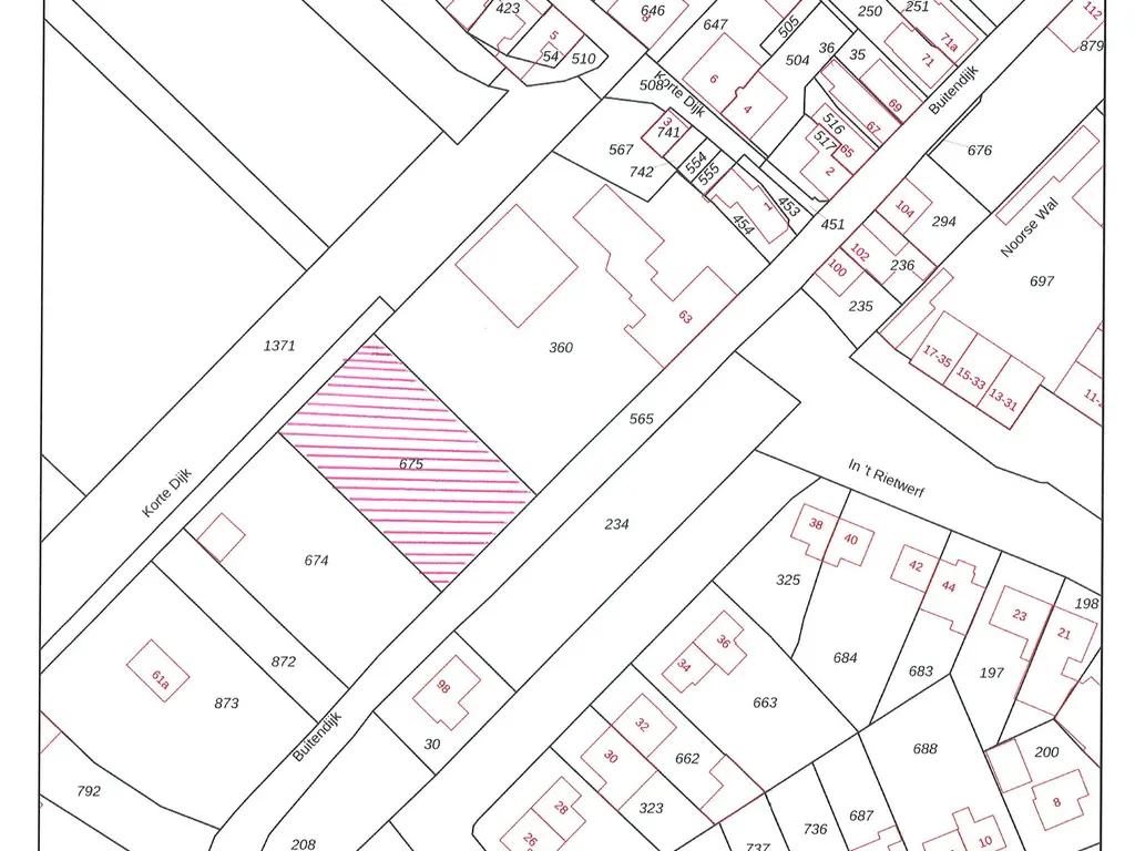 Het perceel meet 1068 m² (ca. 25 x 42 meter).