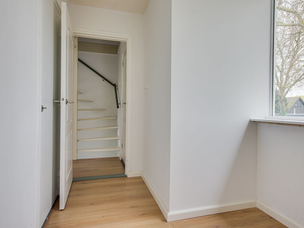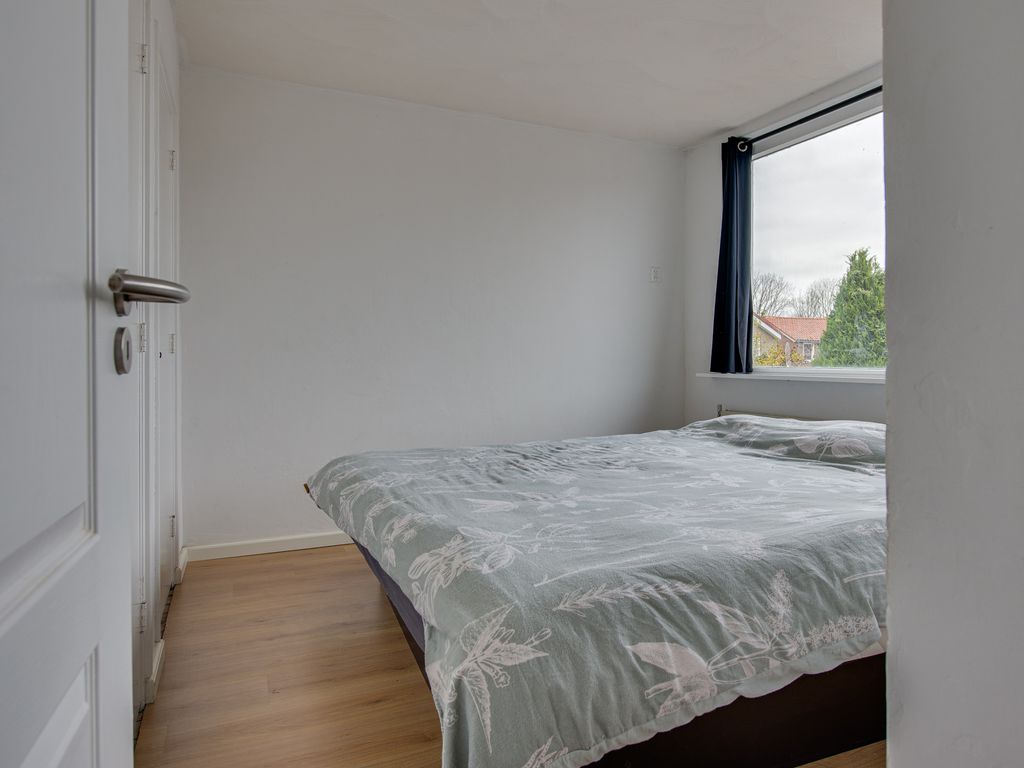Hier bevinden zich drie slaapkamers, praktisch ingedeeld en voorzien van inbouwkasten. De recent vernieuwde badkamer (2024) is uitgerust met een wastafelmeubel, douche en handdoekradiator—alles wat je nodig hebt.