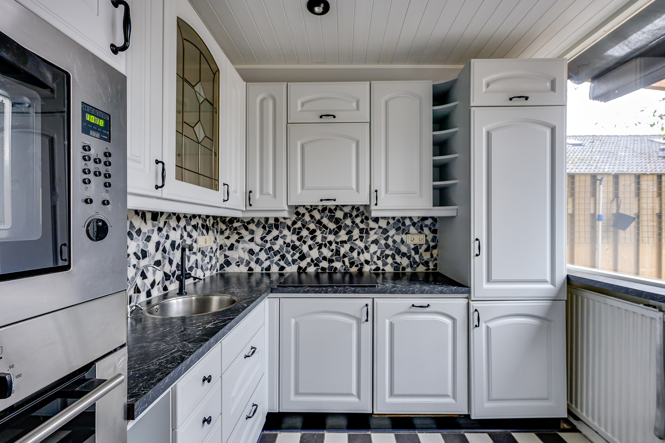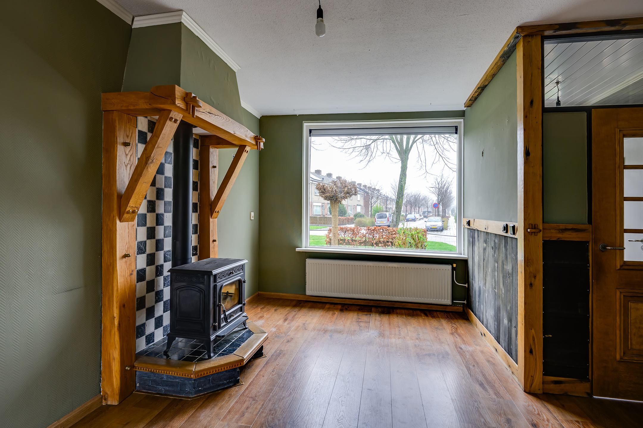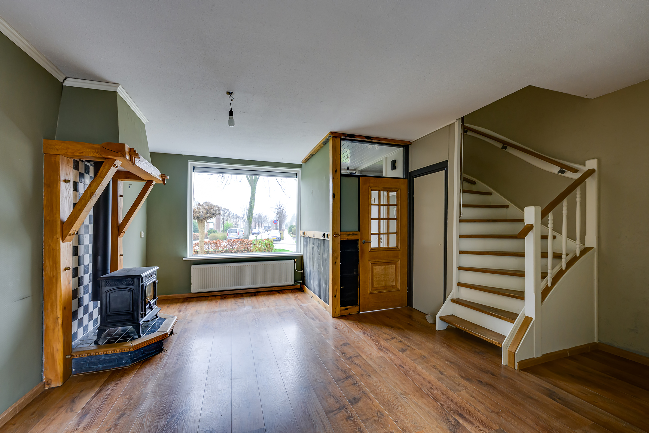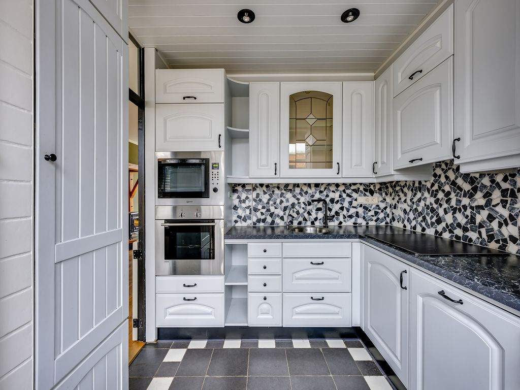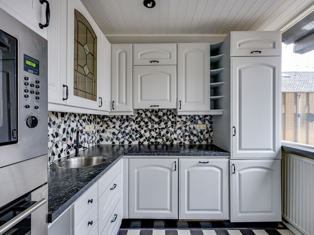 De ruime en lichte woonkamer vormt het hart van de woning en biedt een prettige leefruimte voor het hele gezin. Dankzij de sfeervolle houtkachel en praktische trapkast is het hier zowel gezellig als functioneel. De halfopen keuken sluit mooi aan op de woonkamer en is voorzien van diverse inbouwapparatuur, waaronder een inductiekookplaat, oven, combimagnetron, koel-vriescombinatie, afzuigkap en vaatwasser. De keuken beschikt bovendien over een waterontharder, wat zorgt voor extra comfort en minder kalkaanslag. Vanuit de keuken heb je direct toegang tot de zonnige tuin.
