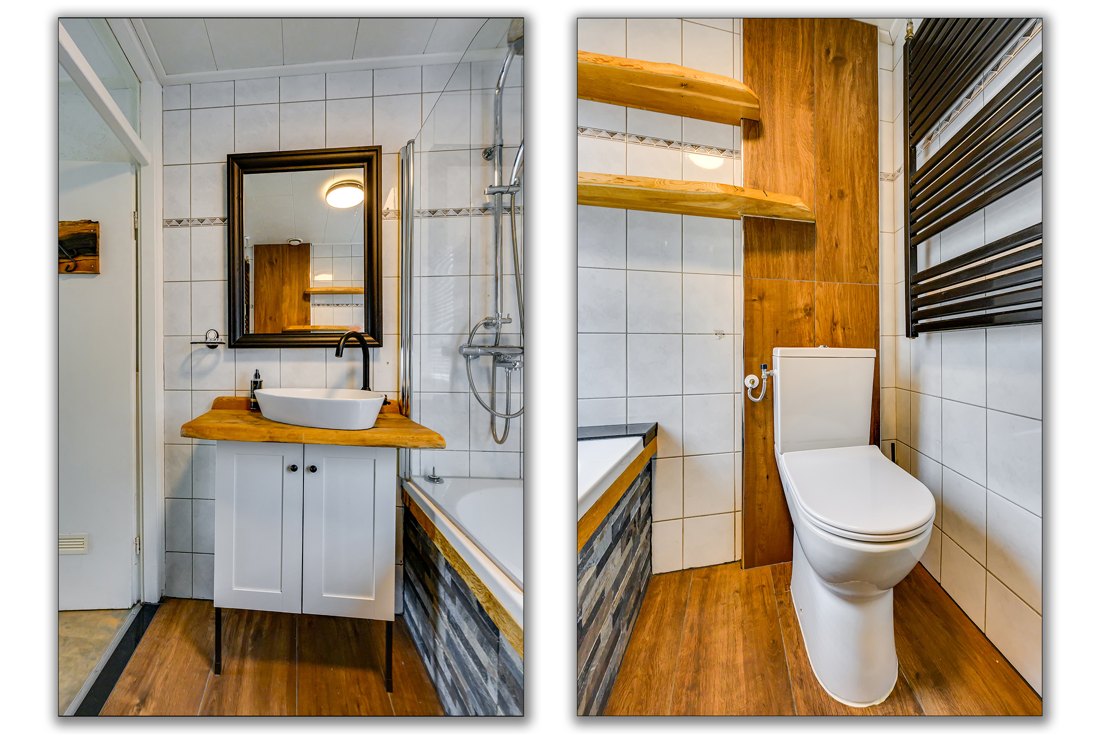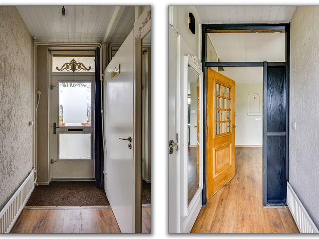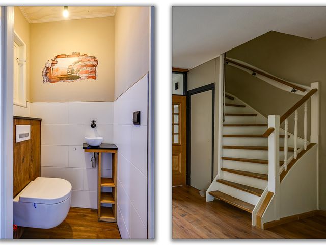 Bij binnenkomst wordt je verwelkomd in de hal met meterkast. Hier bevindt zich tevens de moderne toiletruimte met hangend toilet en fonteintje.