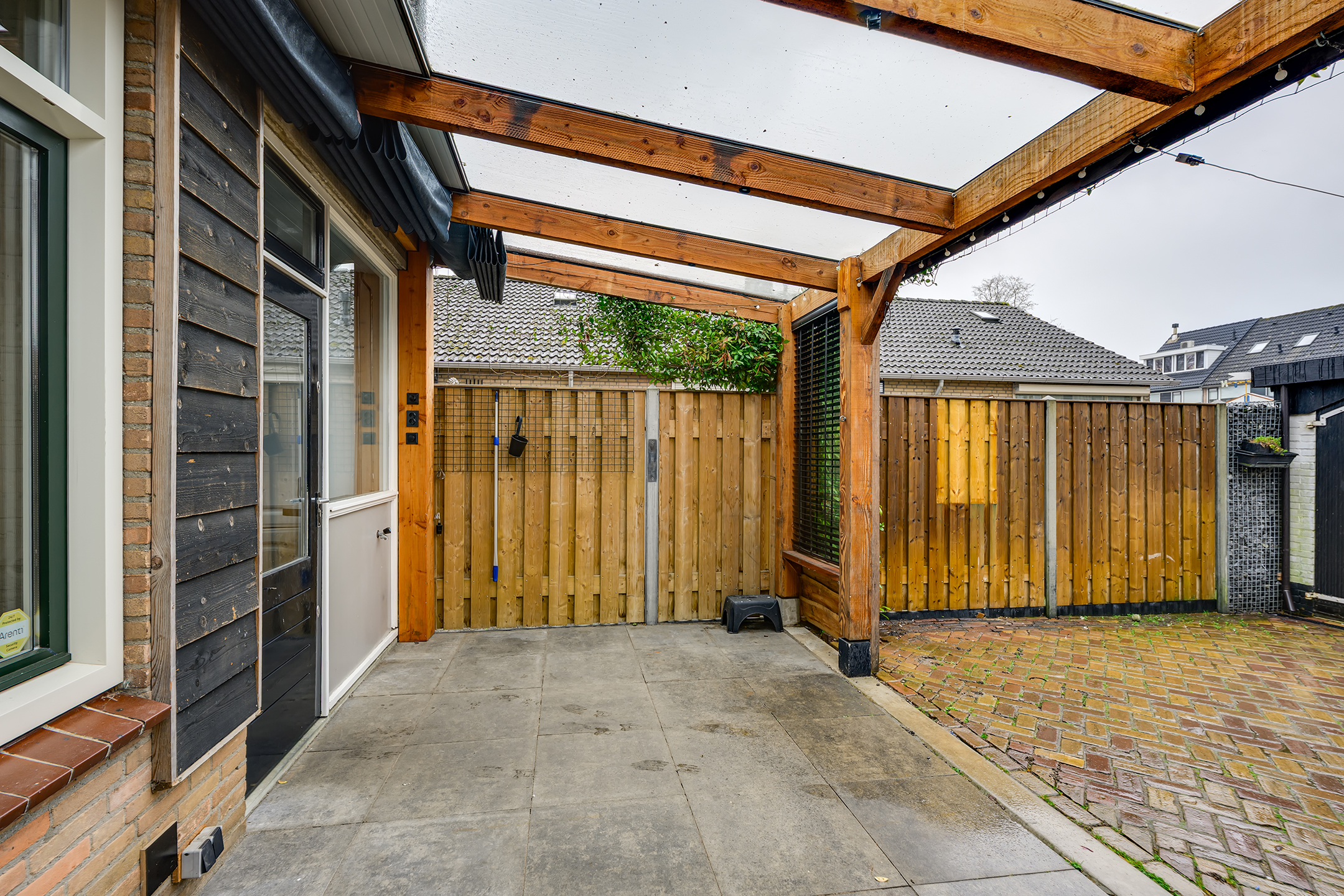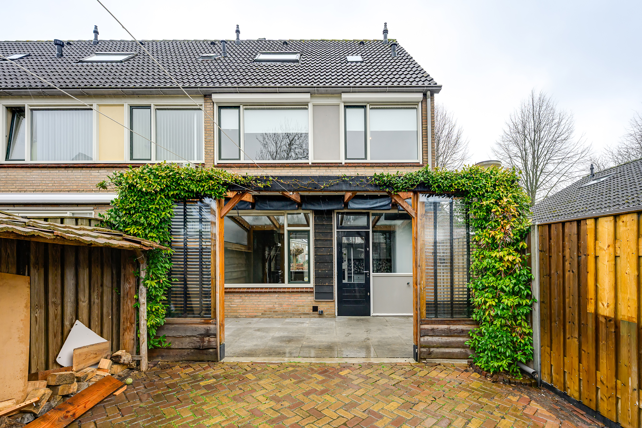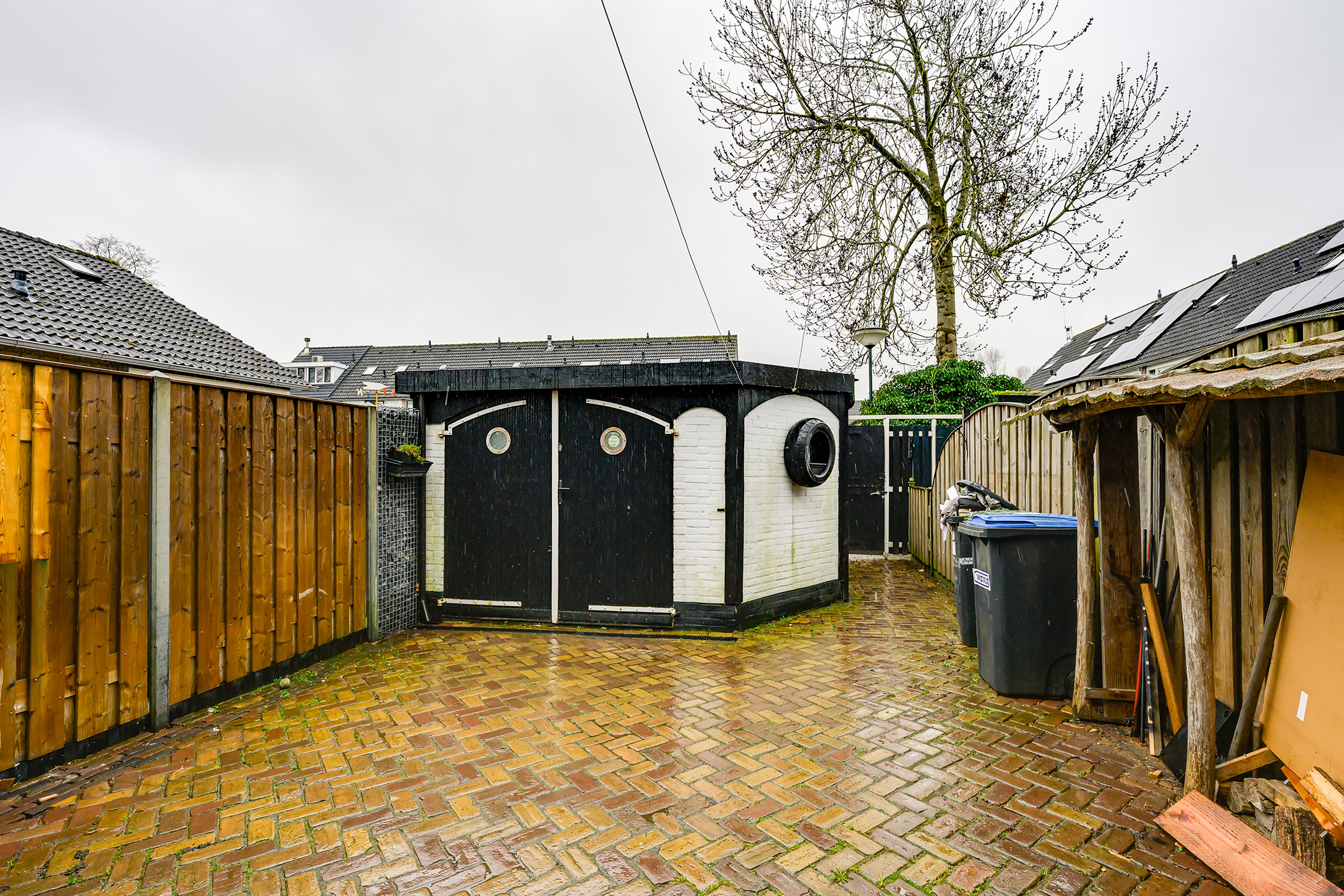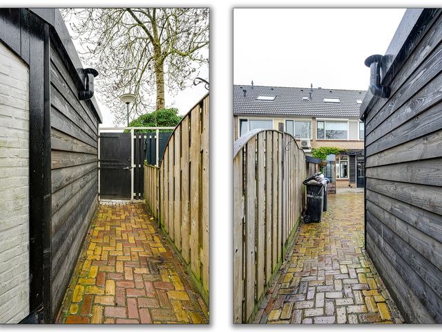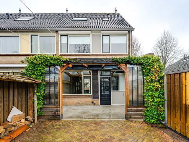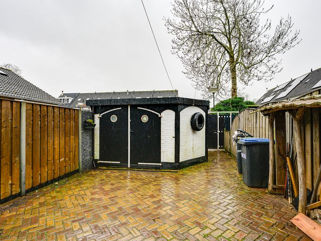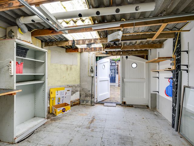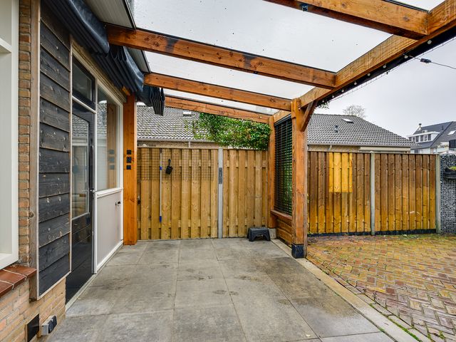 De verzorgde achtertuin is een heerlijke plek om te ontspannen. Dankzij de aangebouwde veranda kun je hier al vroeg in het seizoen en tot laat in de avond comfortabel buiten zitten. De tuin is fraai aangelegd met sierbestrating en biedt daarnaast praktische extra’s zoals een houthok en de vrijstaande garage biedt voldoende ruimte voor opslag of hobby’s.