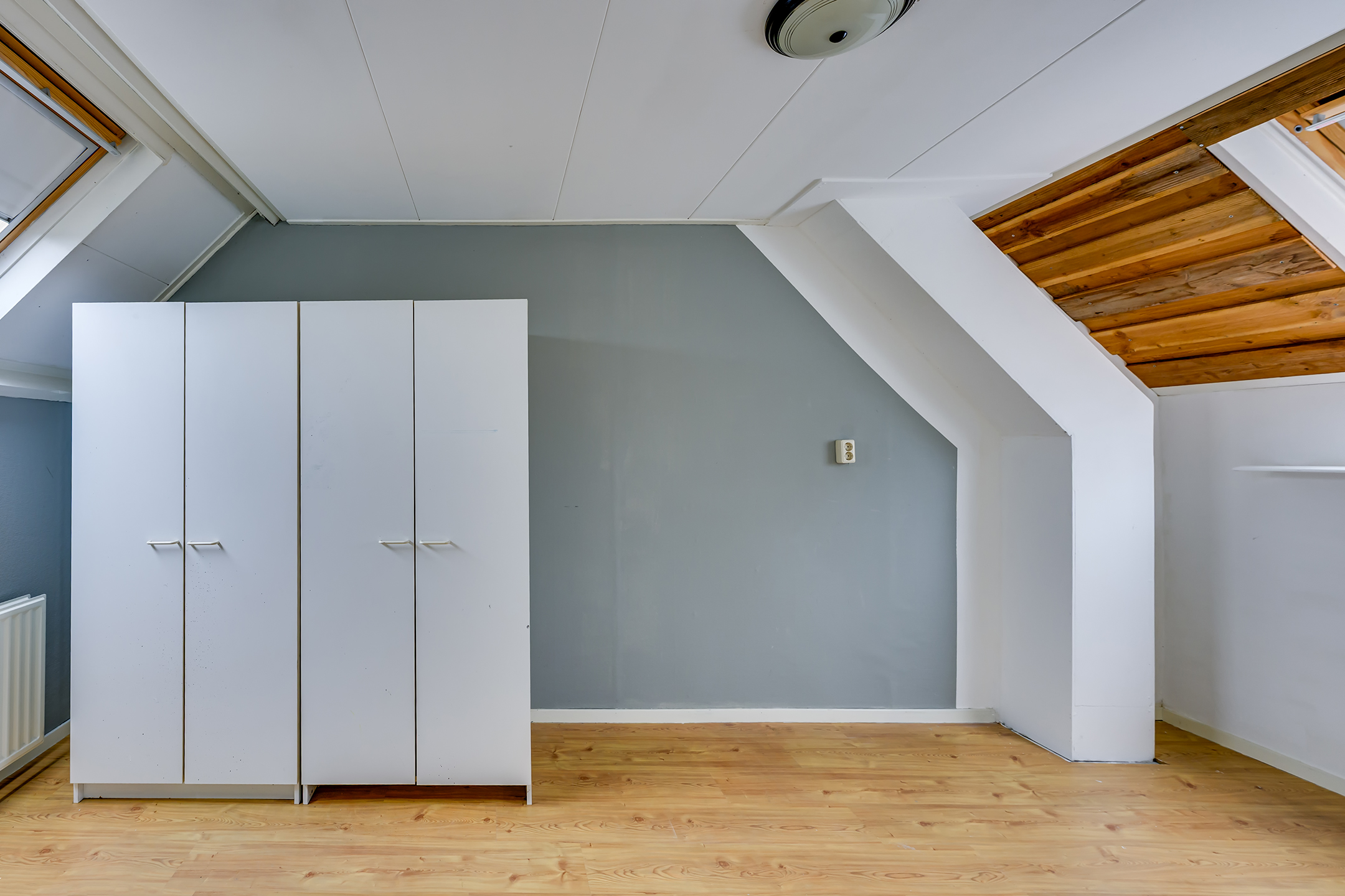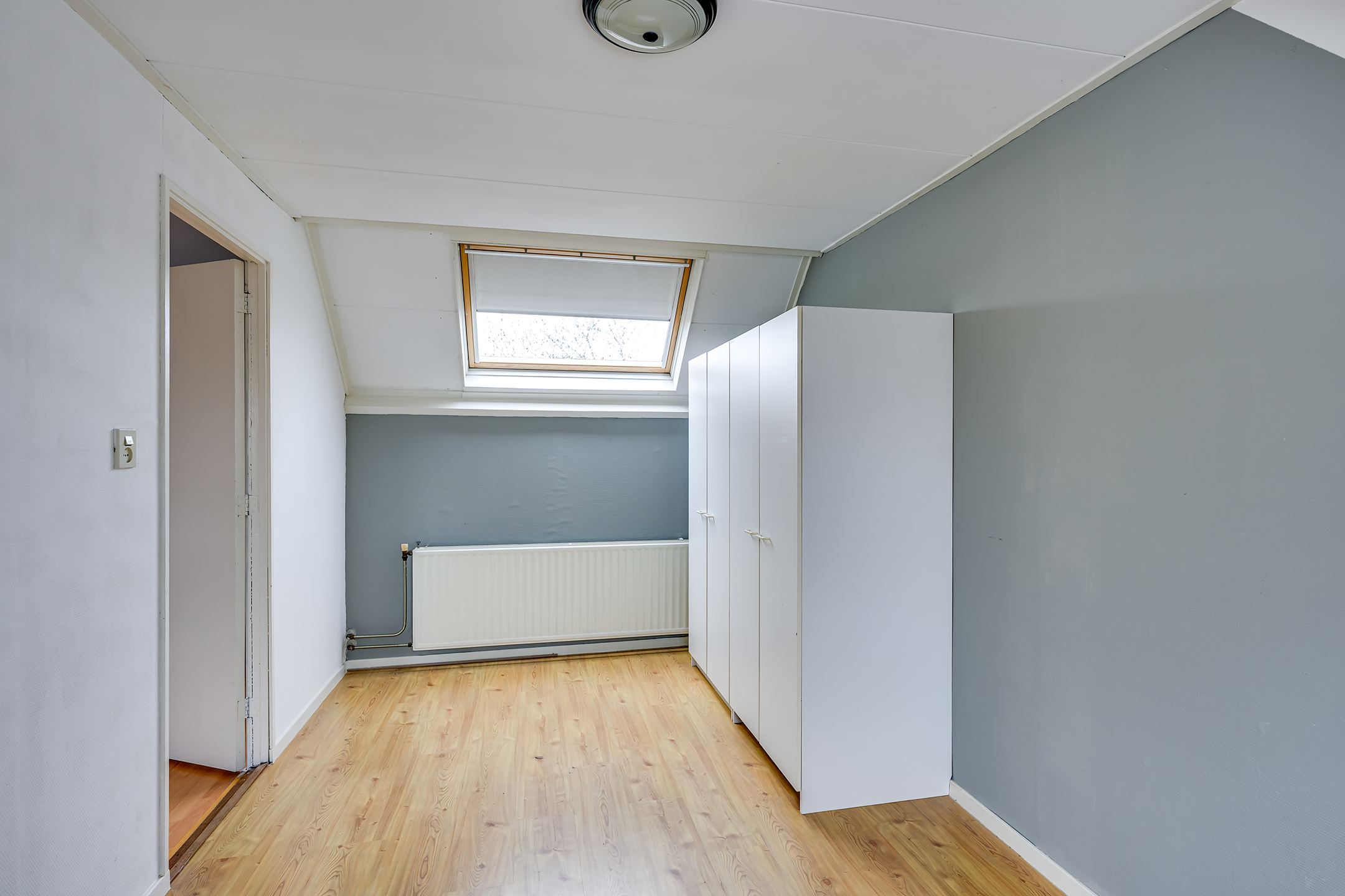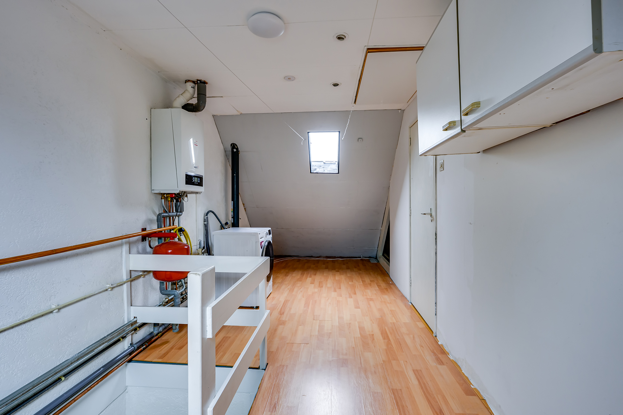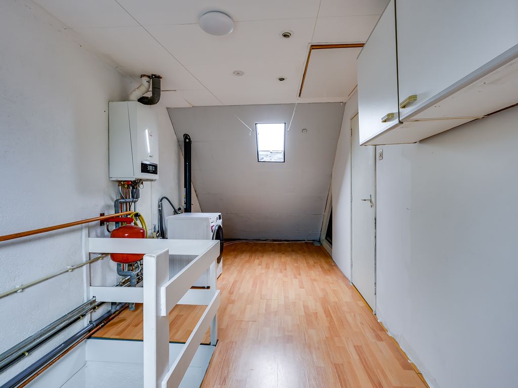De tweede verdieping biedt een lichte overloop met dakramen, aansluitingen voor de wasmachine, extra bergruimte en de opstelplaats voor de HR-combiketel en mechanische ventilatie. Daarnaast vind je hier een vierde slaapkamer, eveneens voorzien van dakramen en daardoor heerlijk licht.
