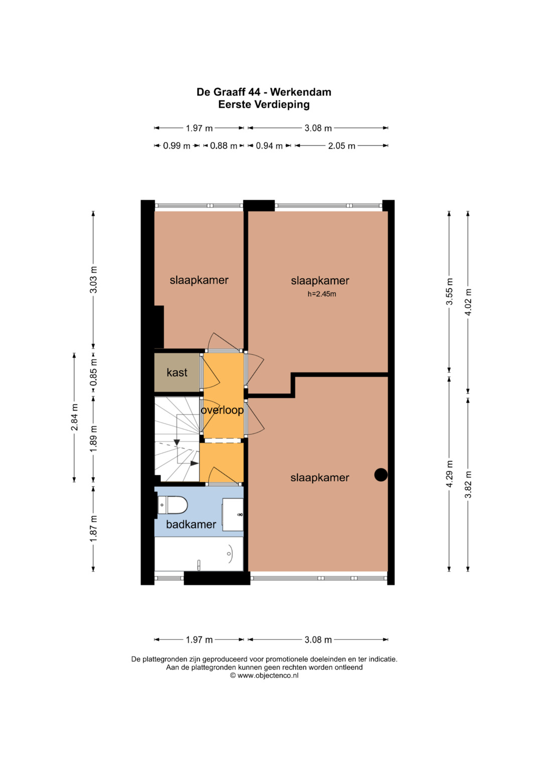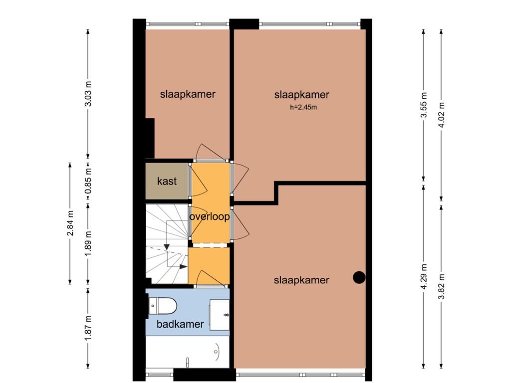 Op de eerste verdieping bevinden zich drie goed bemeten slaapkamers en een moderne badkamer. Deze is compleet uitgevoerd met een douche/ligbad, toilet, wastafelmeubel en designradiator. Via een vaste trap bereik je de tweede verdieping.