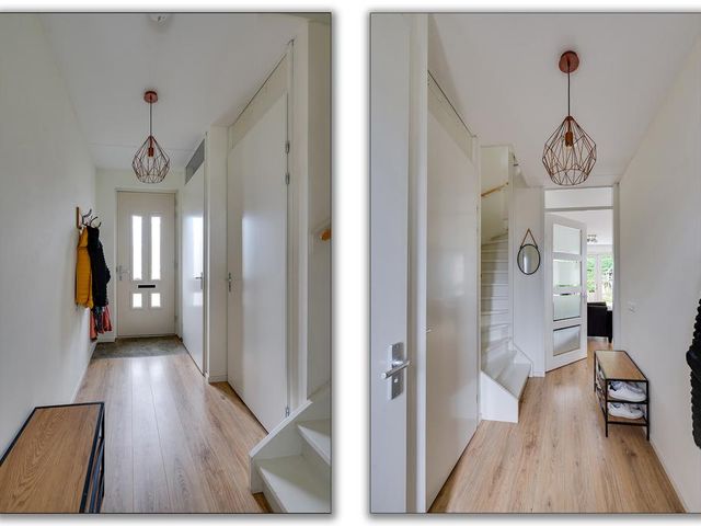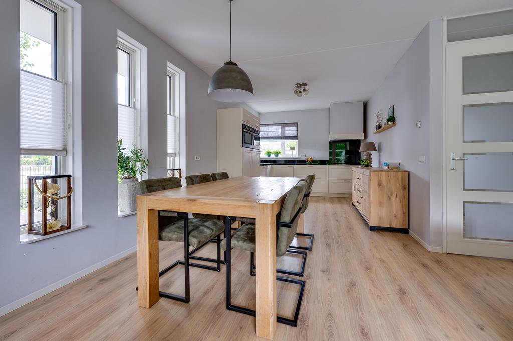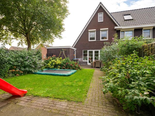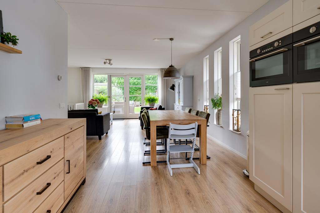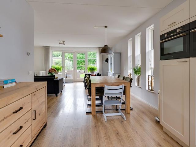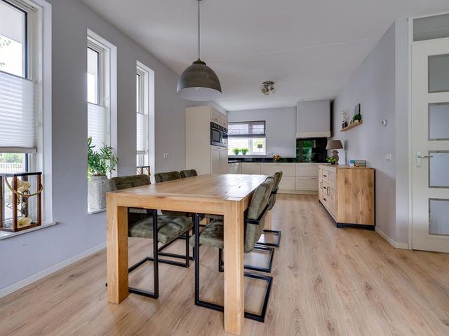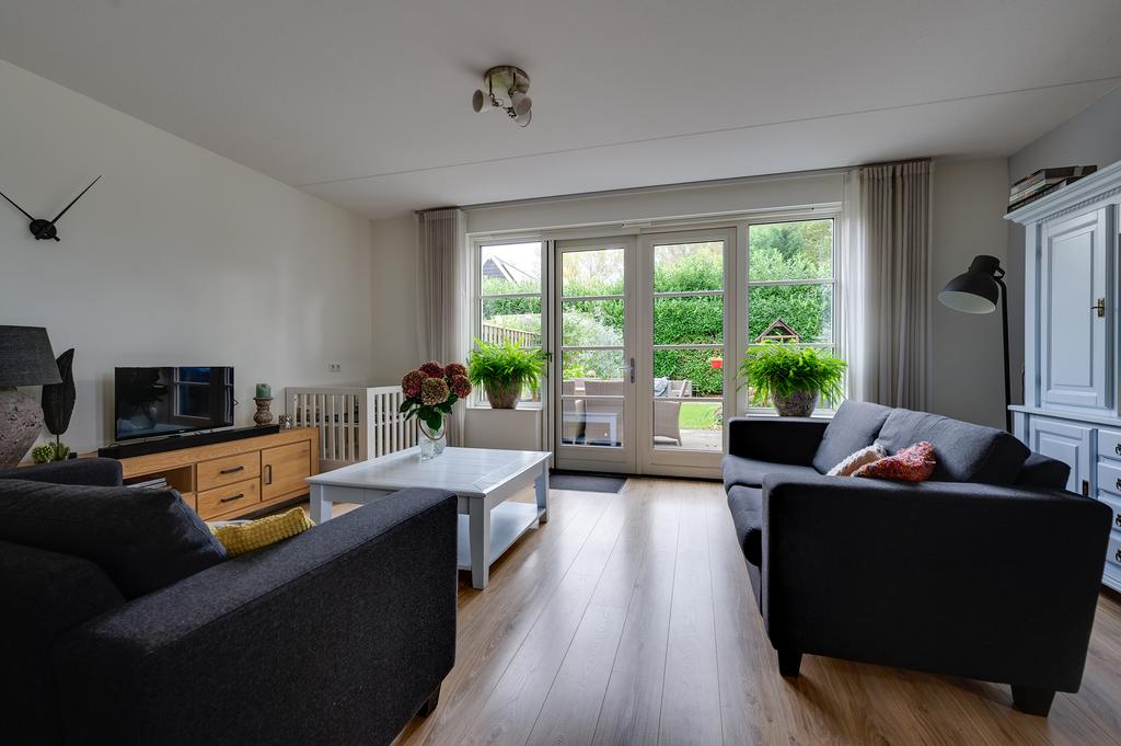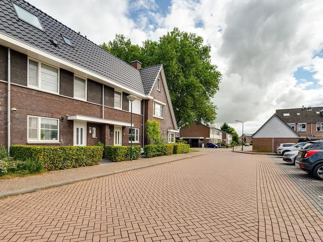 De woning is gebouwd omstreeks 2015 en heeft een inhoud van circa 552 m³. De 3 zijramen geven samen met de grote raampartij met dubbele deur aan de achterzijde extra veel licht in de woonkamer. De luxe hoekkeuken is aan de voorzijde van de woonkamer. De vloer op de begane grond is afgewerkt met laminaat v.v. vloerverwarming. De wanden zijn gestuukt.