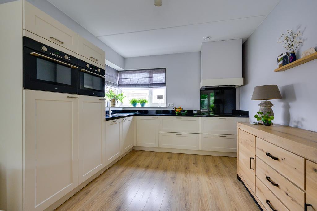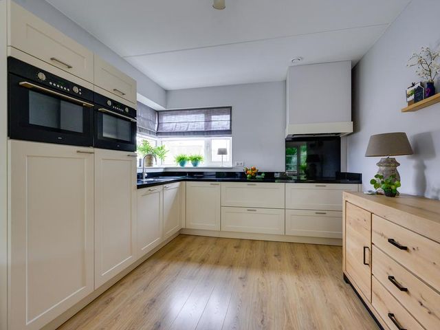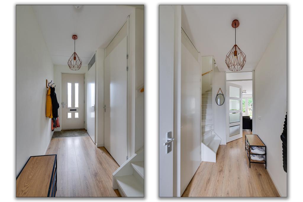 Entree/hal met toiletruimte voorzien van hangtoilet en fonteintje, meterkast, trapopgang en toegang tot de ruime woonkamer. Vanuit de woonkamer hebt u zicht op de tuin. De keuken is in lichte kleurstelling en v.v. graniet aanrechtblad. In de keuken is de volgende inbouwapparatuur aanwezig: inductie kookplaat met afzuigkap, combimagnetron, stoomoven, koelkast met vriesvak, afwasmachine en een praktische magic corner. Ook in de keuken hebt u door het hoekraam veel lichtinval.