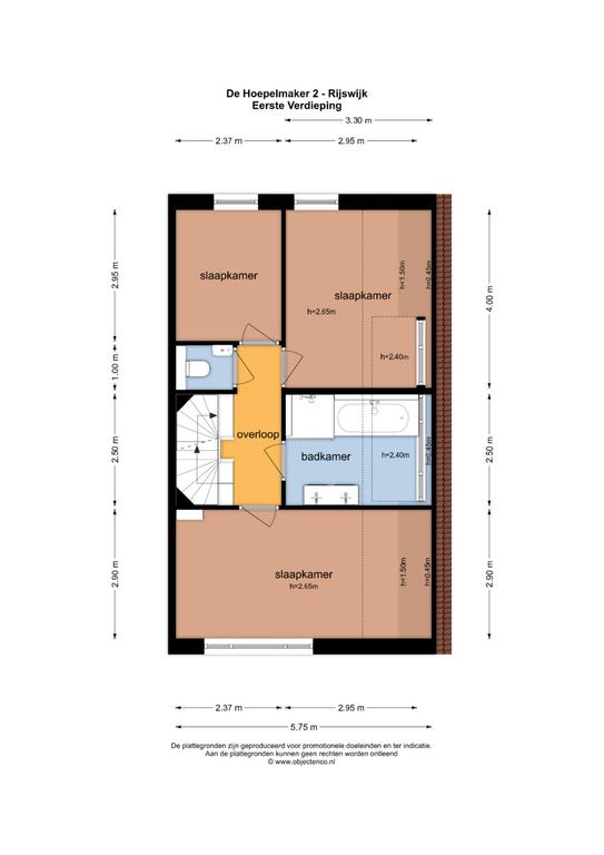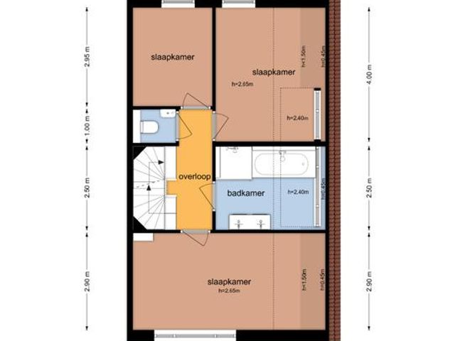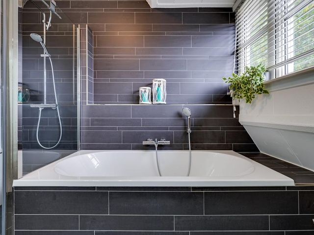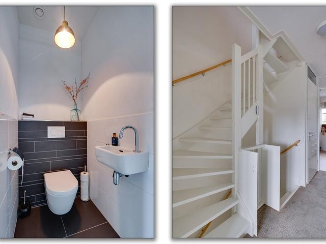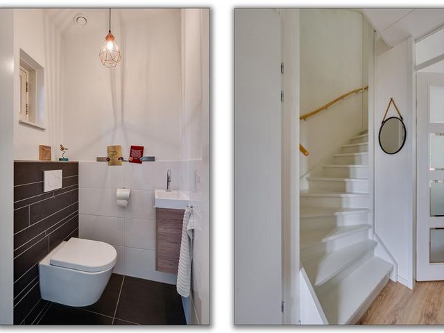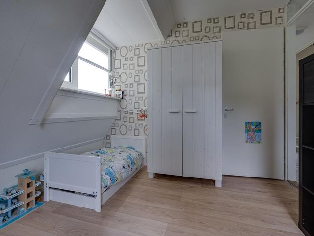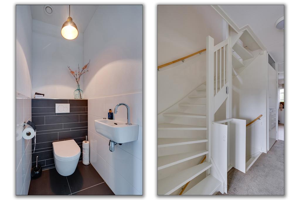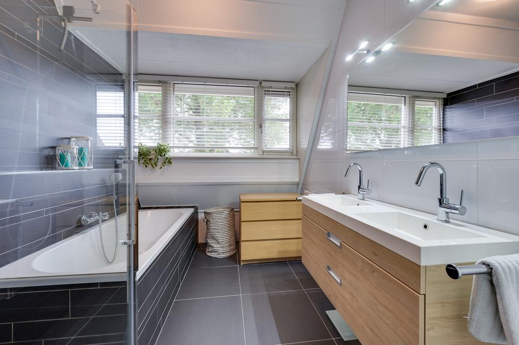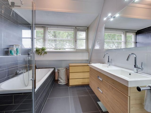 Overloop, separate toiletruimte met hangtoilet en fonteintje, 3 slaapkamers van respectievelijk ca. 7, 10 en 15 m² groot, waarvan 1 met dakkapel. De badkamer heeft eveneens een dakkapel, is geheel betegeld en voorzien van dubbele wastafel met spiegelwand en kastruimte, ligbad en inloopdouche.