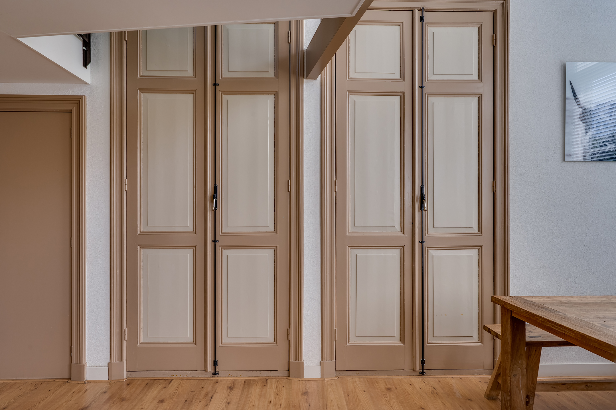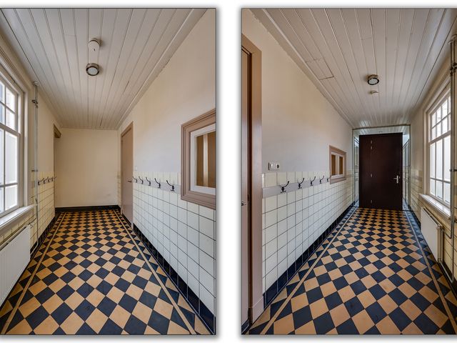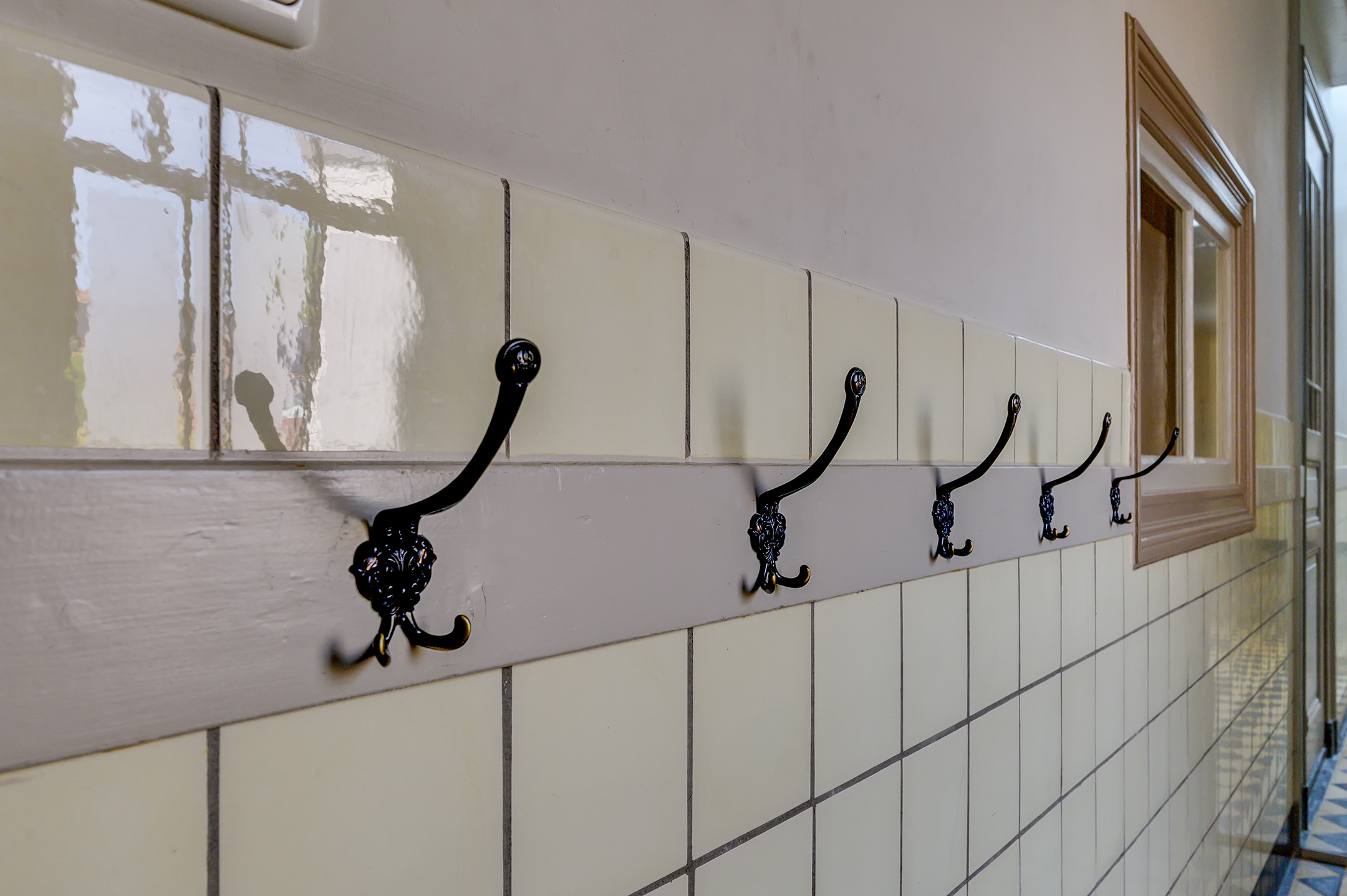Zodra je het pand binnenstapt, stap je eigenlijk een stukje geschiedenis binnen. Authentieke details, zoals de nostalgische kapstokhaken, herinneren aan de tijd dat hier nog les werd gegeven – een charmant vleugje verleden dat direct opvalt.