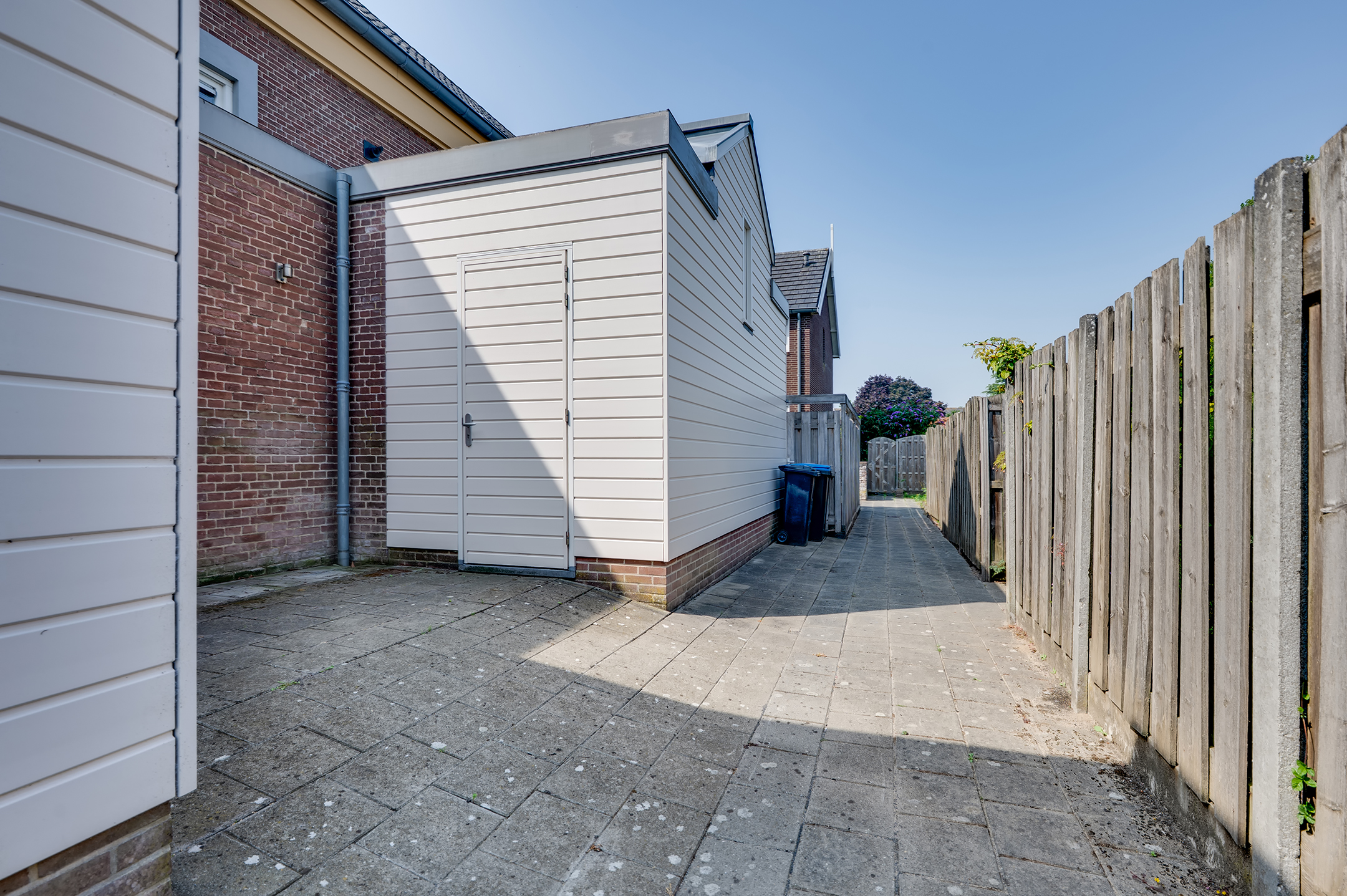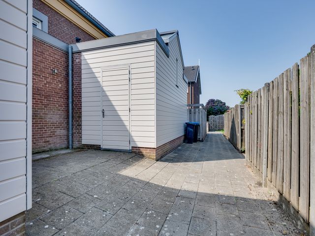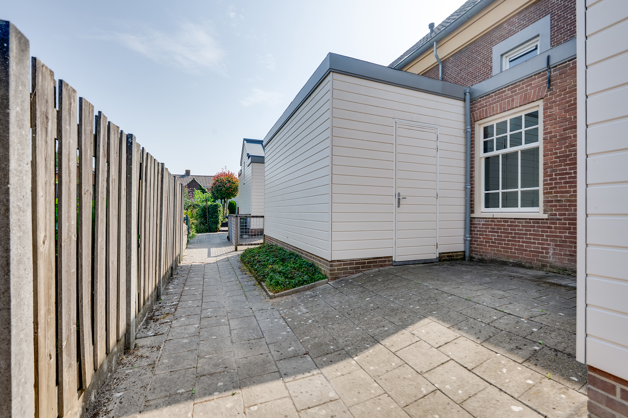 Ook aan praktisch gemak is gedacht: je hebt een eigen parkeerplaats op het terrein én een handige externe berging – ideaal voor je fiets of extra spullen. Naast deze berging zit ook weer een buitendeur ook zo ‘achterom’ via de hal binnen te komen.