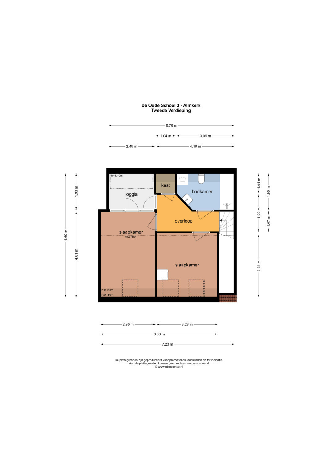 Op de tweede verdieping vind je een overloop, twee slaapkamers (waarvan één met een knusse loggia), een bergkast en een nette badkamer. De badkamer is voorzien van een toilet, wastafel, aansluiting voor de wasmachine en een comfortabele bad-douchecombinatie.