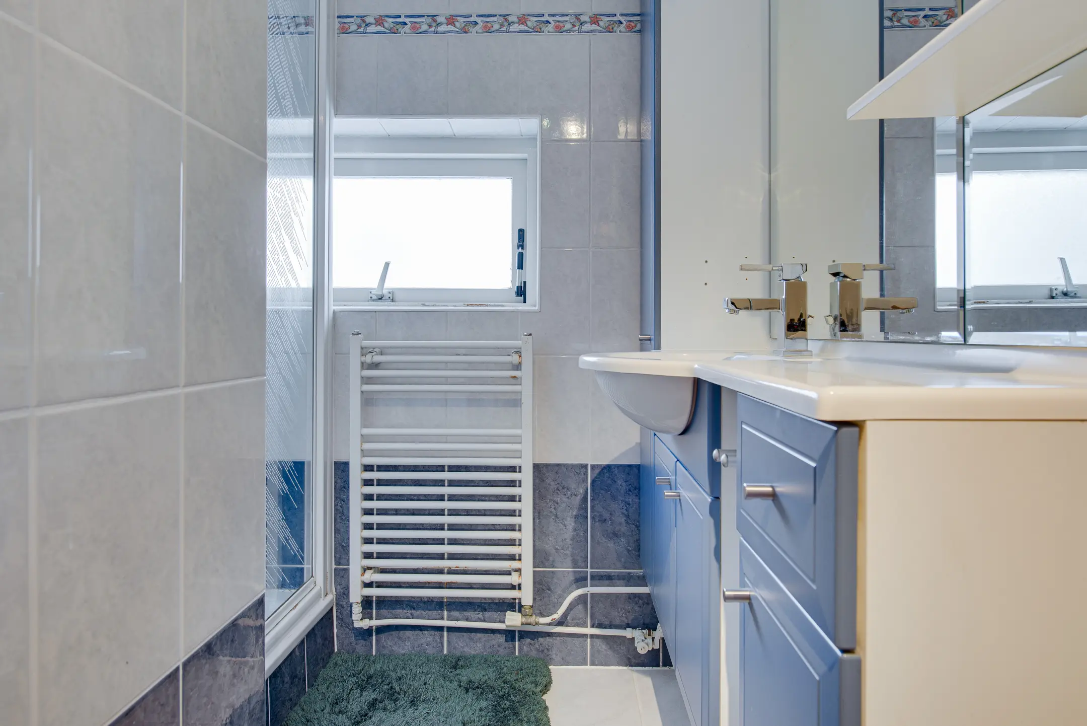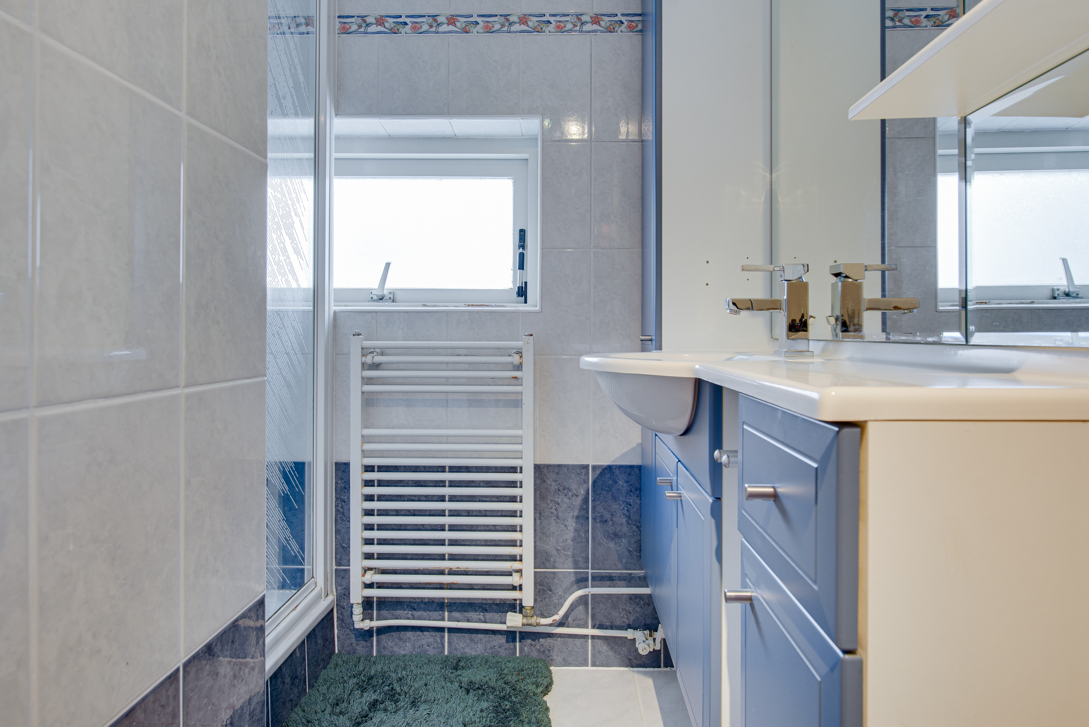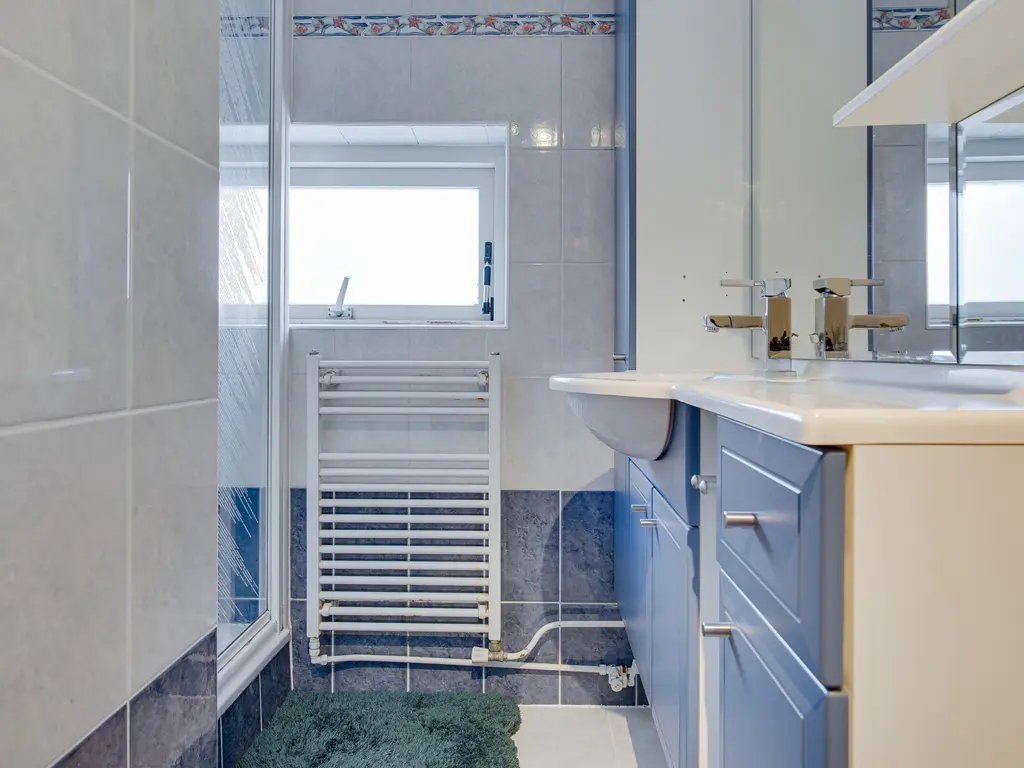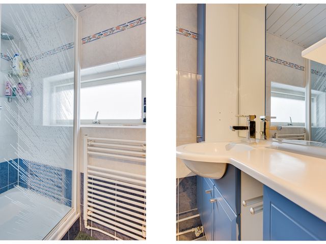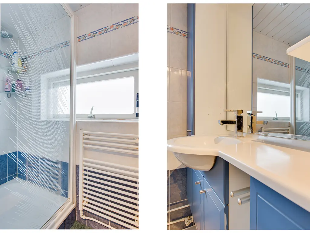 De overloop biedt kastruimte en toegang tot drie comfortabele slaapkamers. In de ouderslaapkamer is airconditioning aanwezig. De badkamer is netjes afgewerkt en beschikt over een douche en wastafelmeubel.