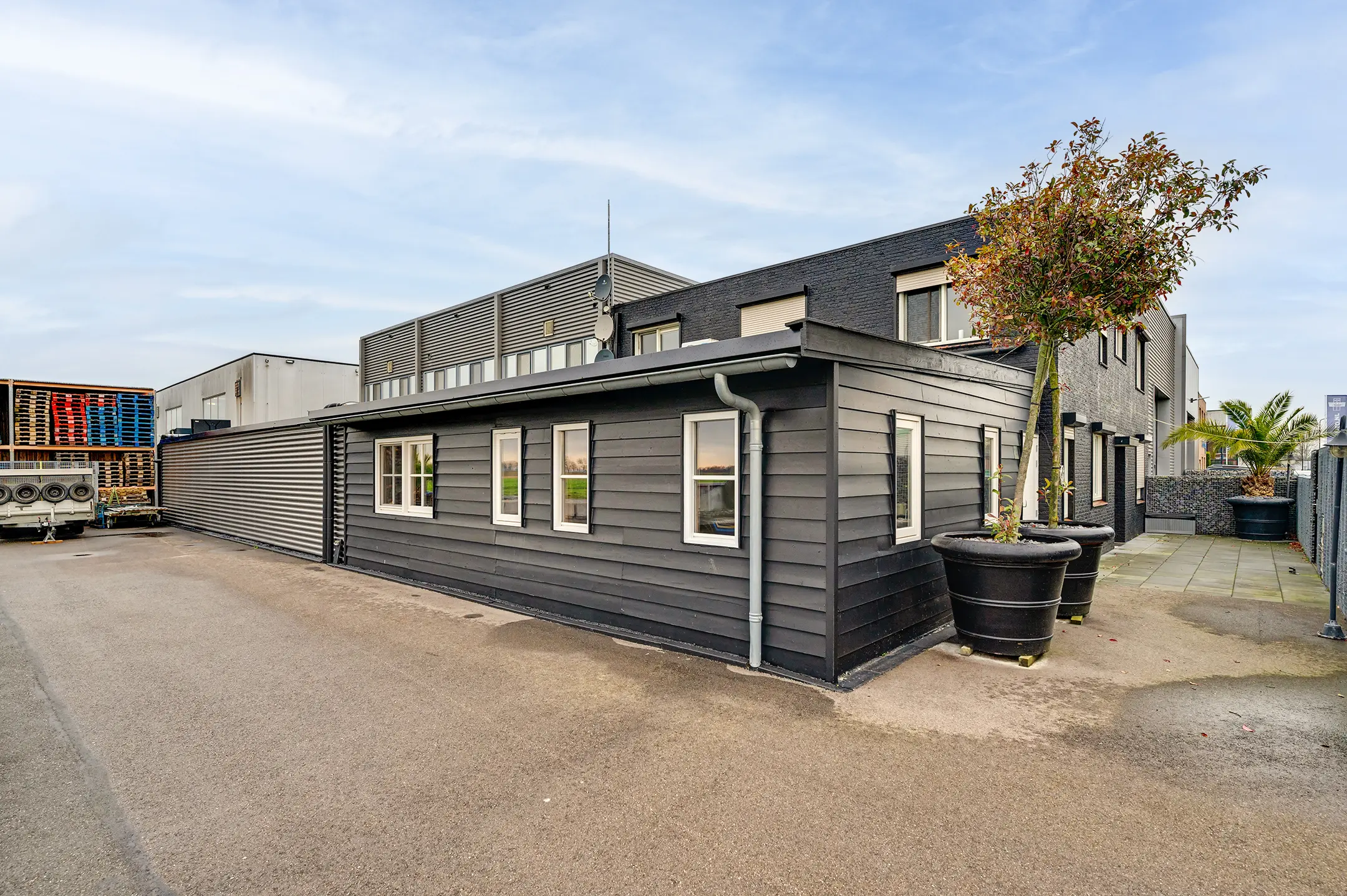 De bedrijfsruimte is gebouwd op een onderheide paalfundering. De constructie bestaat uit een staalconstructie met sandwichpanelen. Parkeren geschiedt op privé parkeerterrein. Tevens is er naast de woning nog een verhard buitenterrein aanwezig. Dit object biedt uitstekende mogelijkheden om wonen en werk te combineren.
