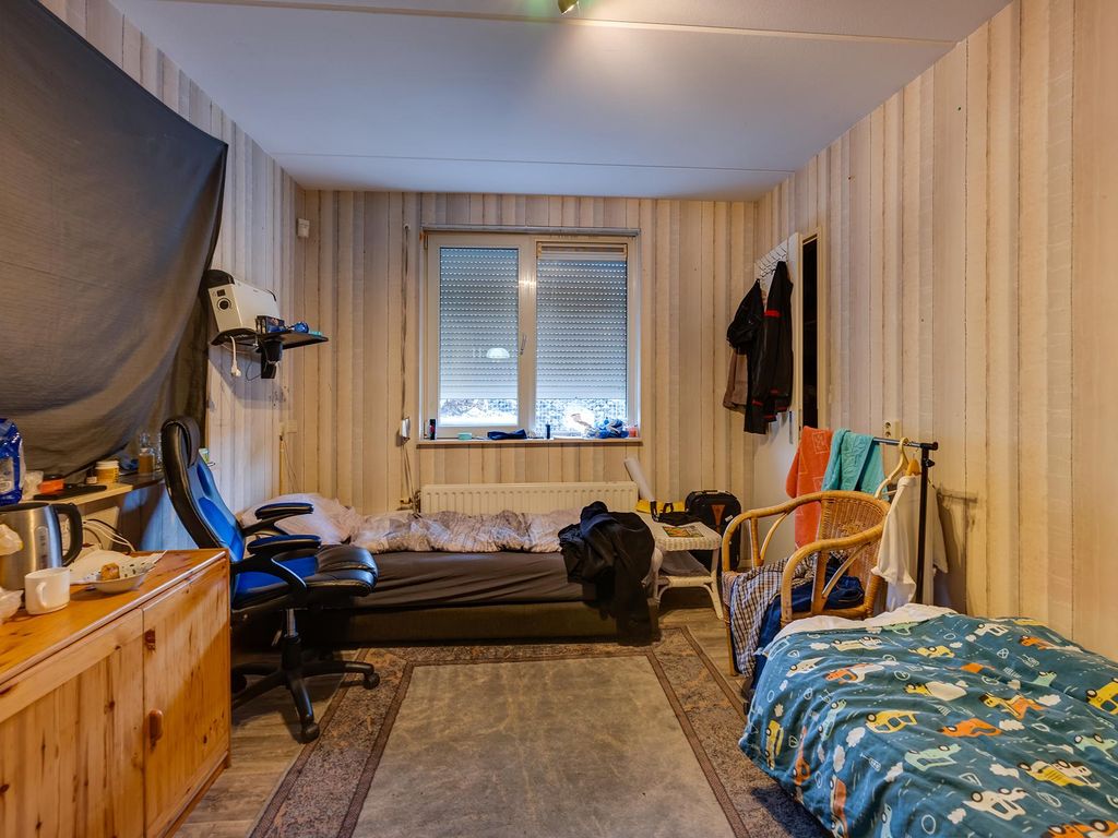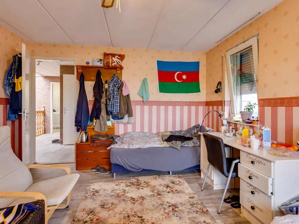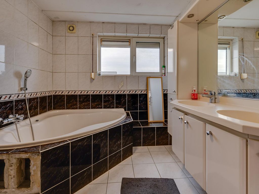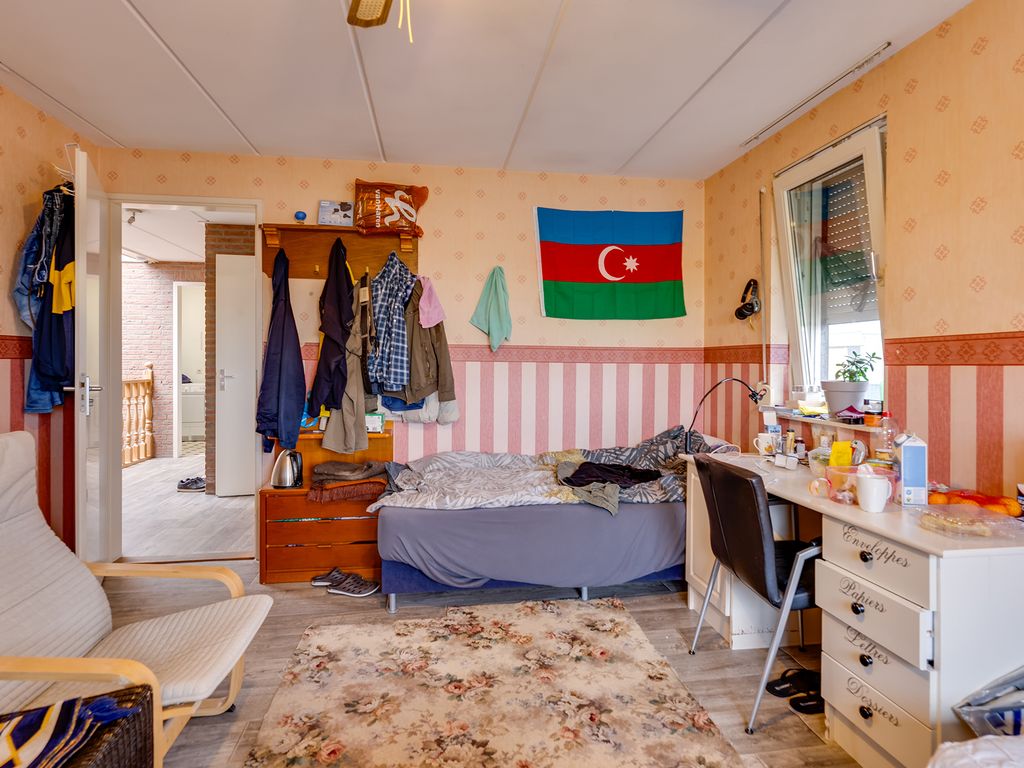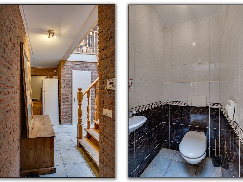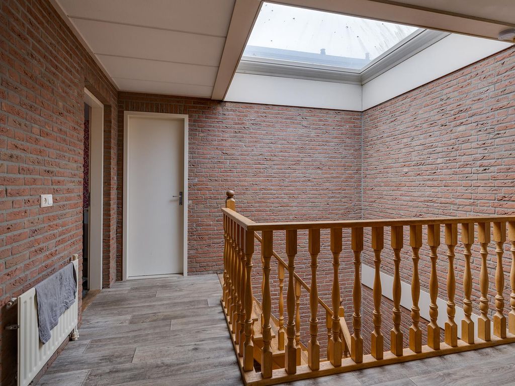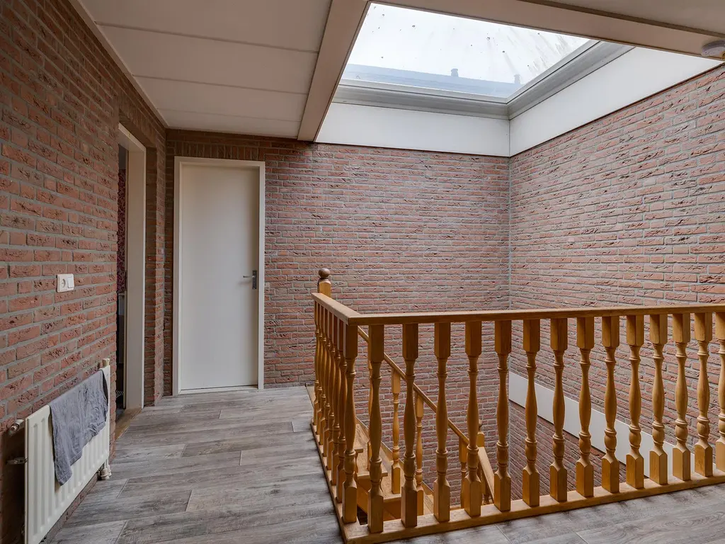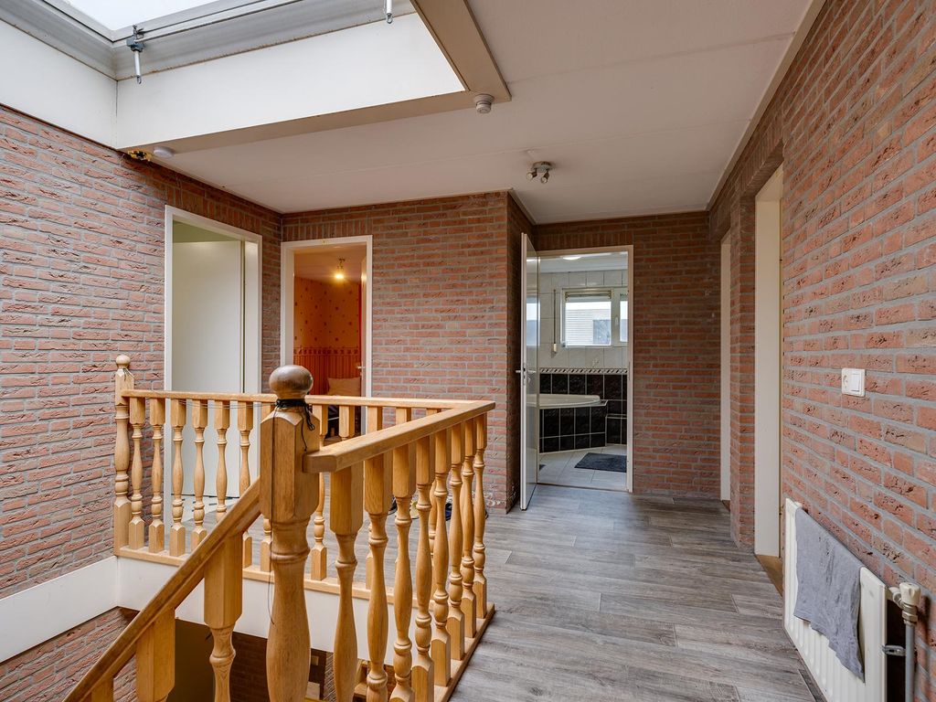 Slaapverdieping: overloop met zeil, schoonmetselwerk en lichtkoepel. Slaapkamer 1 met zeil, kunststof kozijnen met dubbel glas en rolluik. Slaapkamer 2 met zeil, kunststof kozijnen met dubbel glas en rolluik. Slaapkamer 3 met vloerbedekking, kunststof kozijnen met dubbel glas en rolluik. Slaapkamer 4 met zeil, kunststof kozijnen met dubbel glas en rolluik. Geheel betegelde toiletruimte met hangend toilet en fonteintje. Geheel betegelde badkamer met ligbad, douchecabine, designradiator, dubbel wastafelmeubel, kunststof kozijnen met dubbel glas en rolluik. Inpandige wasruimte met aansluitpunten wasapparatuur, unit mechanische ventilatie en opstelplaats CV-combiketel (Nefit uit ca 1997).