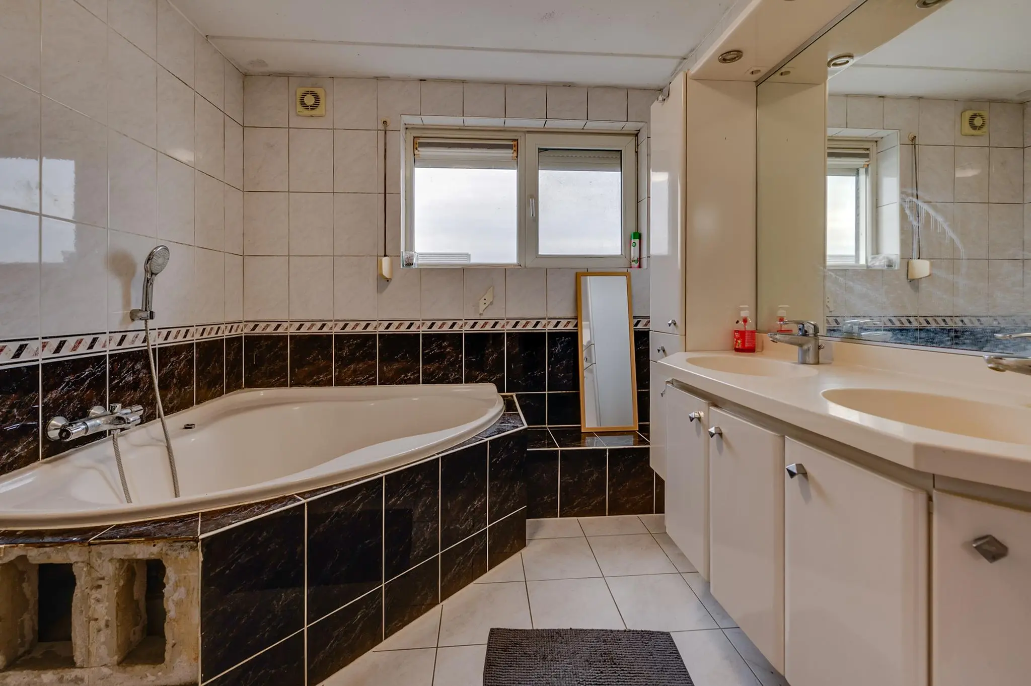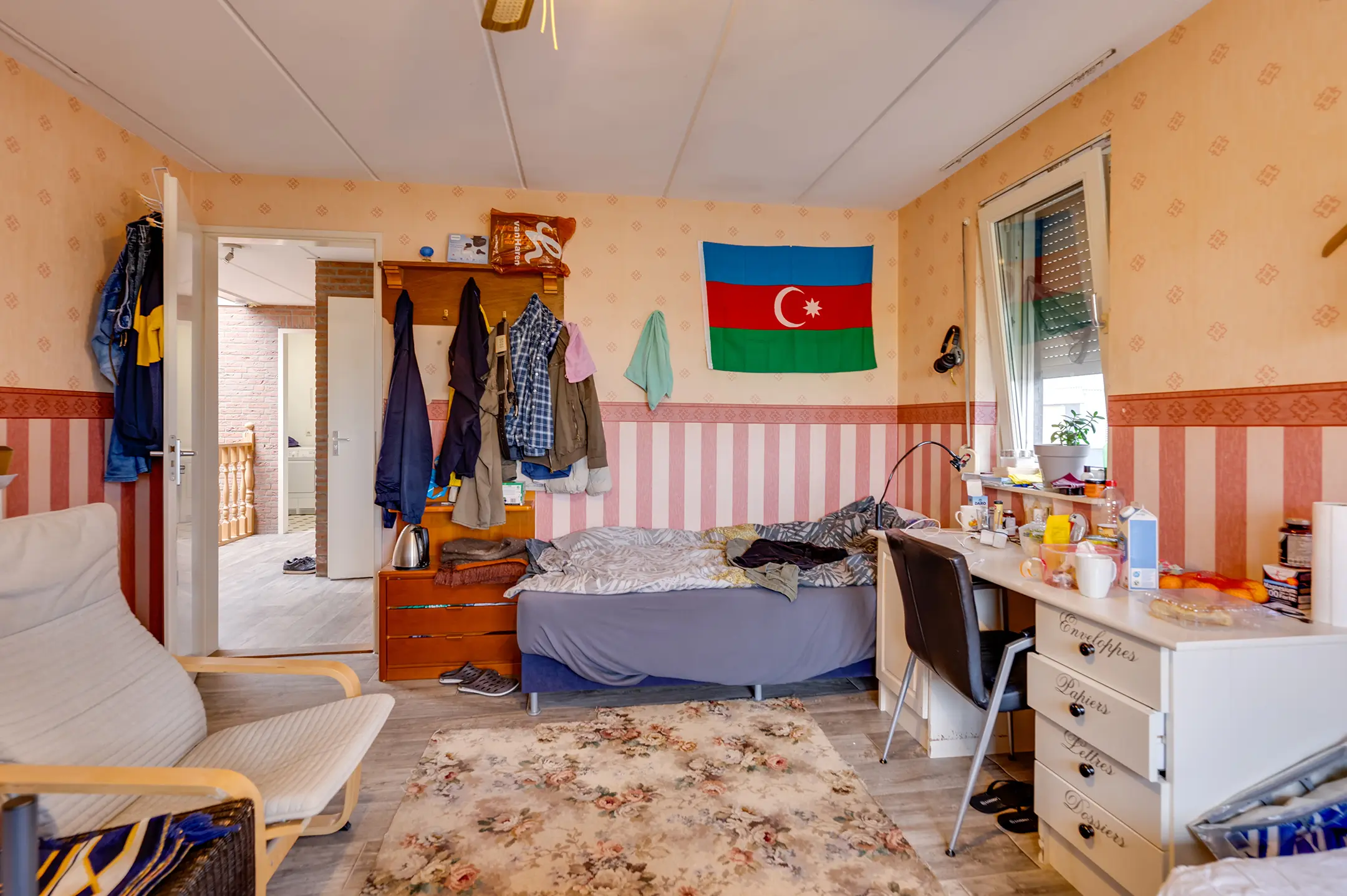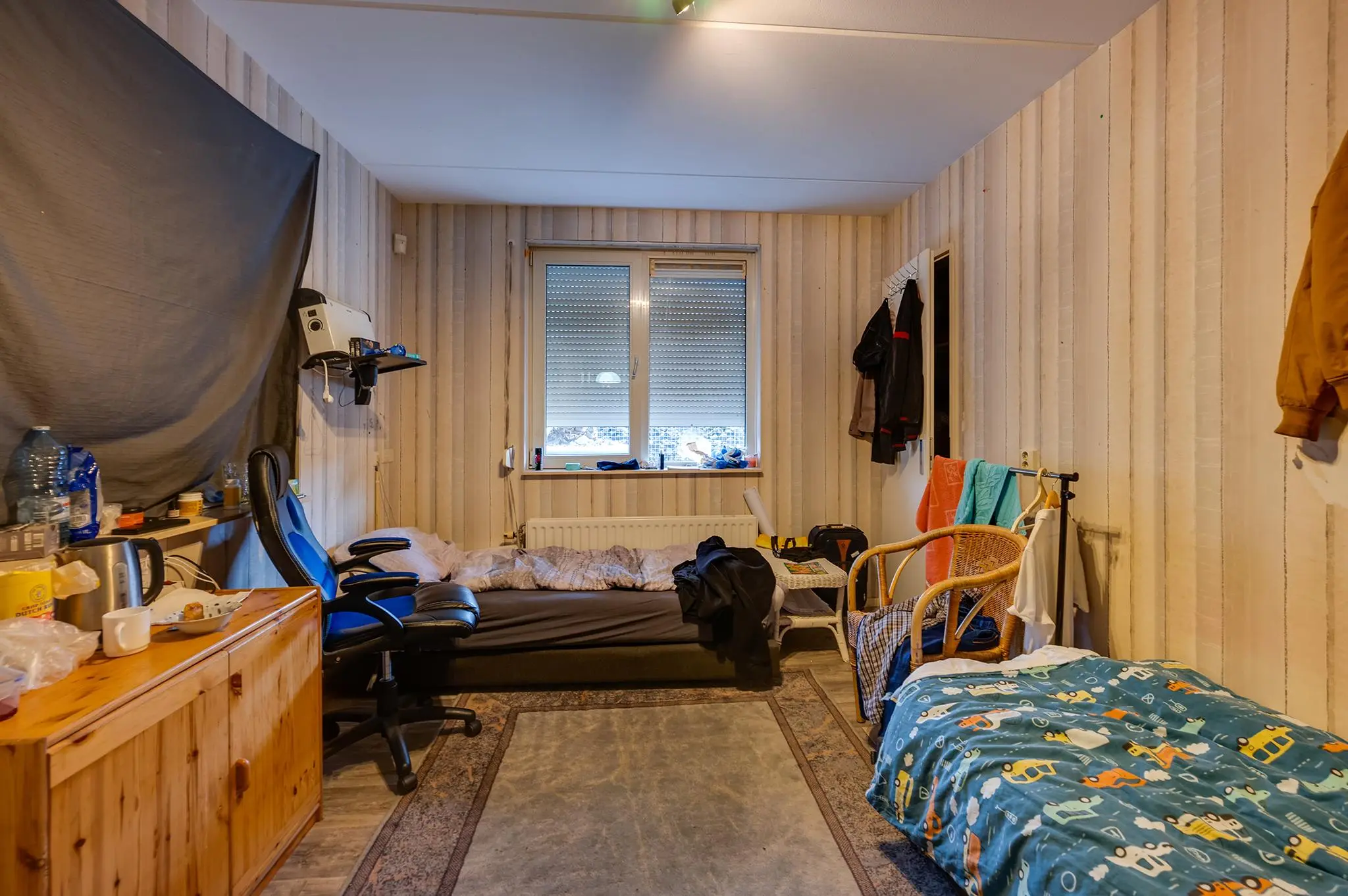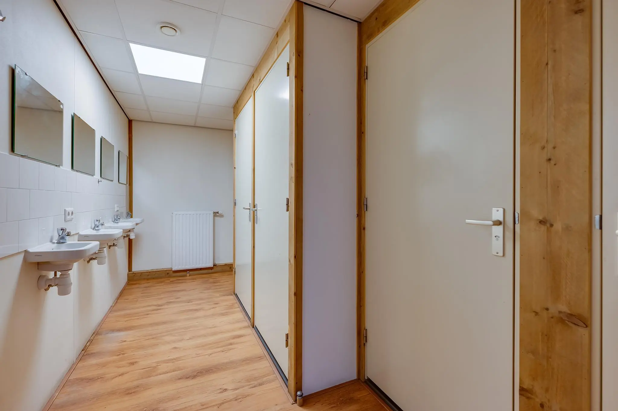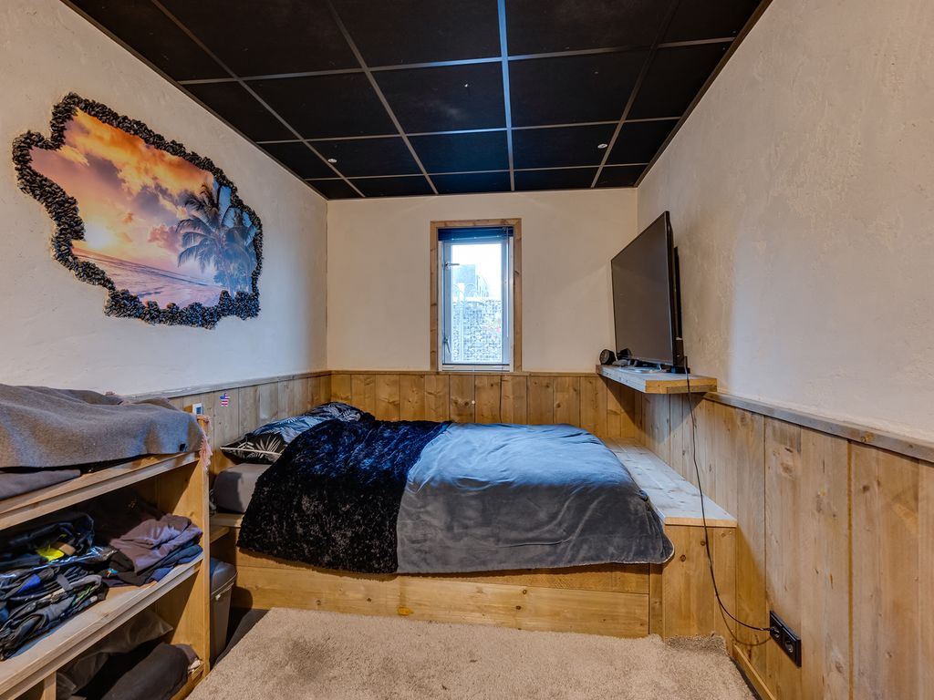 Slaapverdieping: overloop met zeil, schoonmetselwerk en lichtkoepel. Slaapkamer 1 met zeil, kunststof kozijnen met dubbel glas en rolluik. Slaapkamer 2 met zeil, kunststof kozijnen met dubbel glas en rolluik. Slaapkamer 3 met vloerbedekking, kunststof kozijnen met dubbel glas en rolluik. Slaapkamer 4 met zeil, kunststof kozijnen met dubbel glas en rolluik. Geheel betegelde toiletruimte met hangend toilet en fonteintje. Geheel betegelde badkamer met ligbad, douchecabine, designradiator, dubbel wastafelmeubel, kunststof kozijnen met dubbel glas en rolluik. Inpandige wasruimte met aansluitpunten wasapparatuur, unit mechanische ventilatie en opstelplaats CV-combiketel (Nefit uit ca 1997).