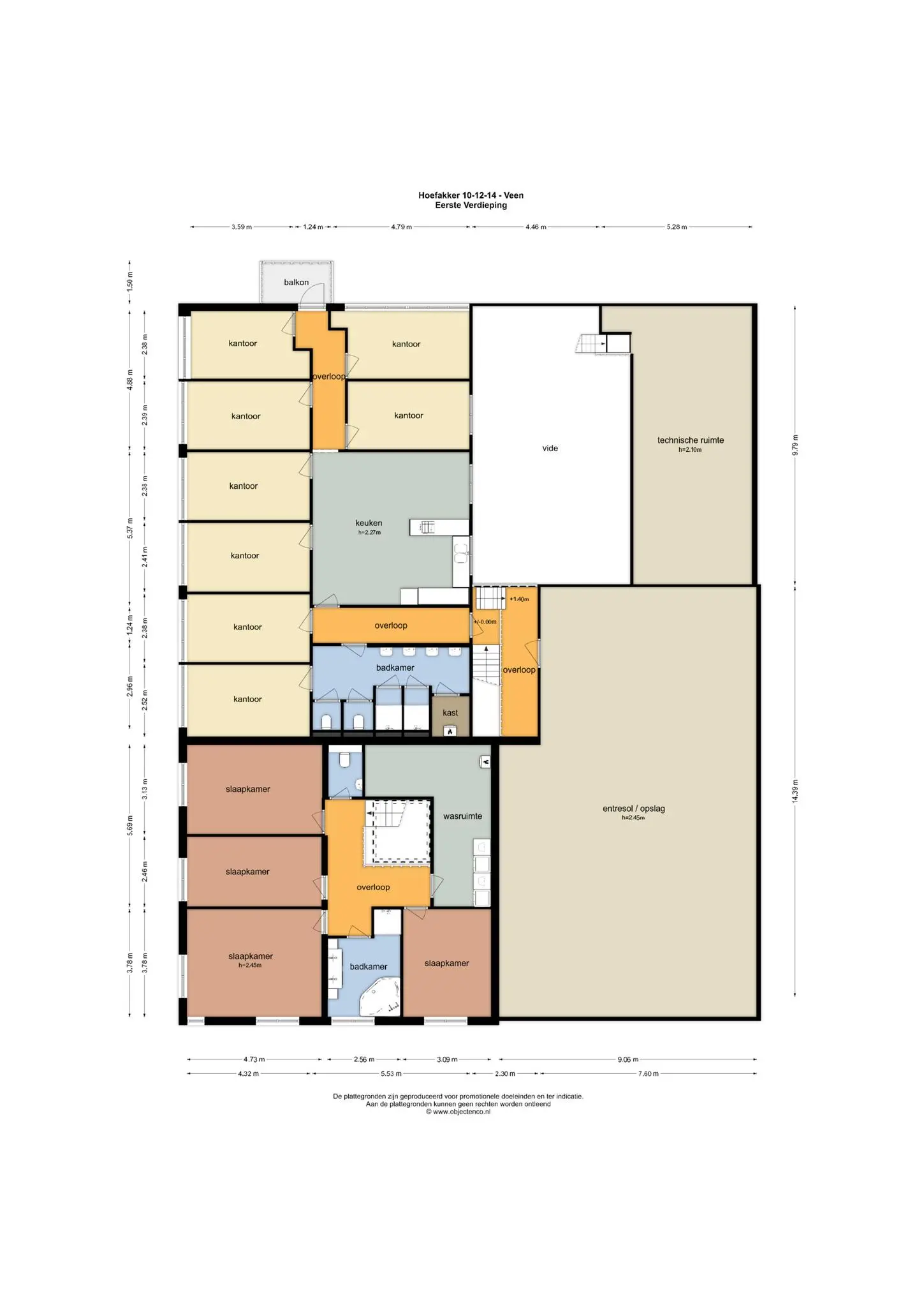 Indeling bedrijfswoning nr. 14 (bouwjaar ca. 2019):