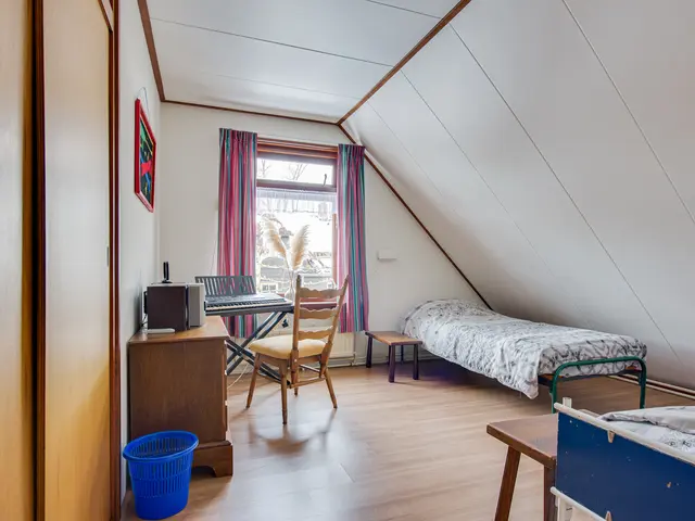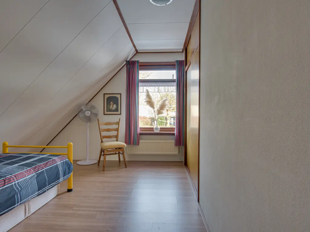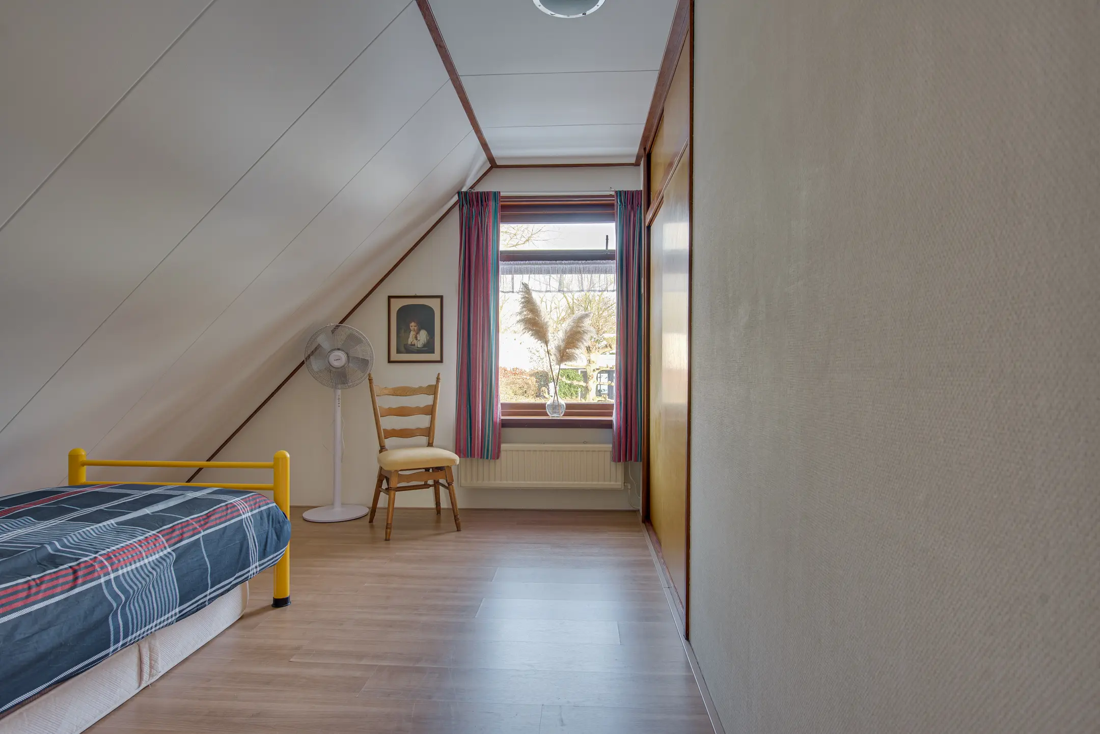 Aansluitend aan de keuken bevindt zich een slaapkamer, momenteel ingericht als werk- / studeerkamer en voorzien van een praktische schuifkastenwand. Ideaal als thuiswerkplek, logeerkamer of slaapkamer op de begane grond.