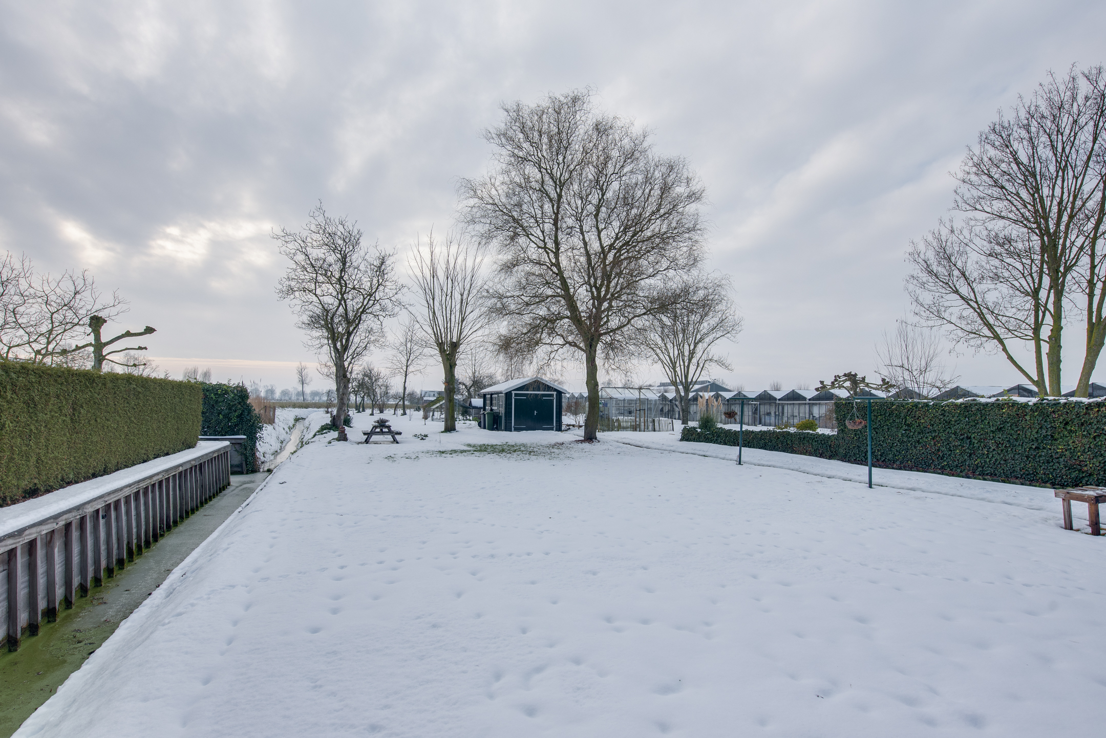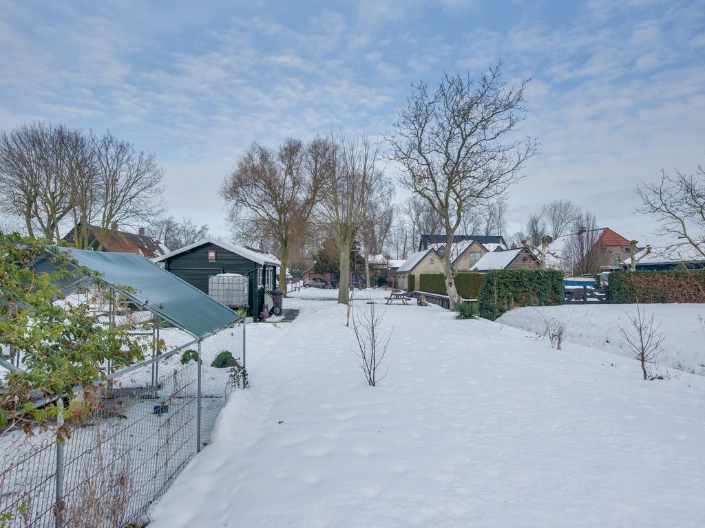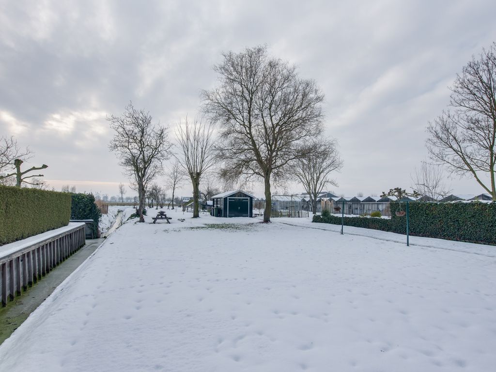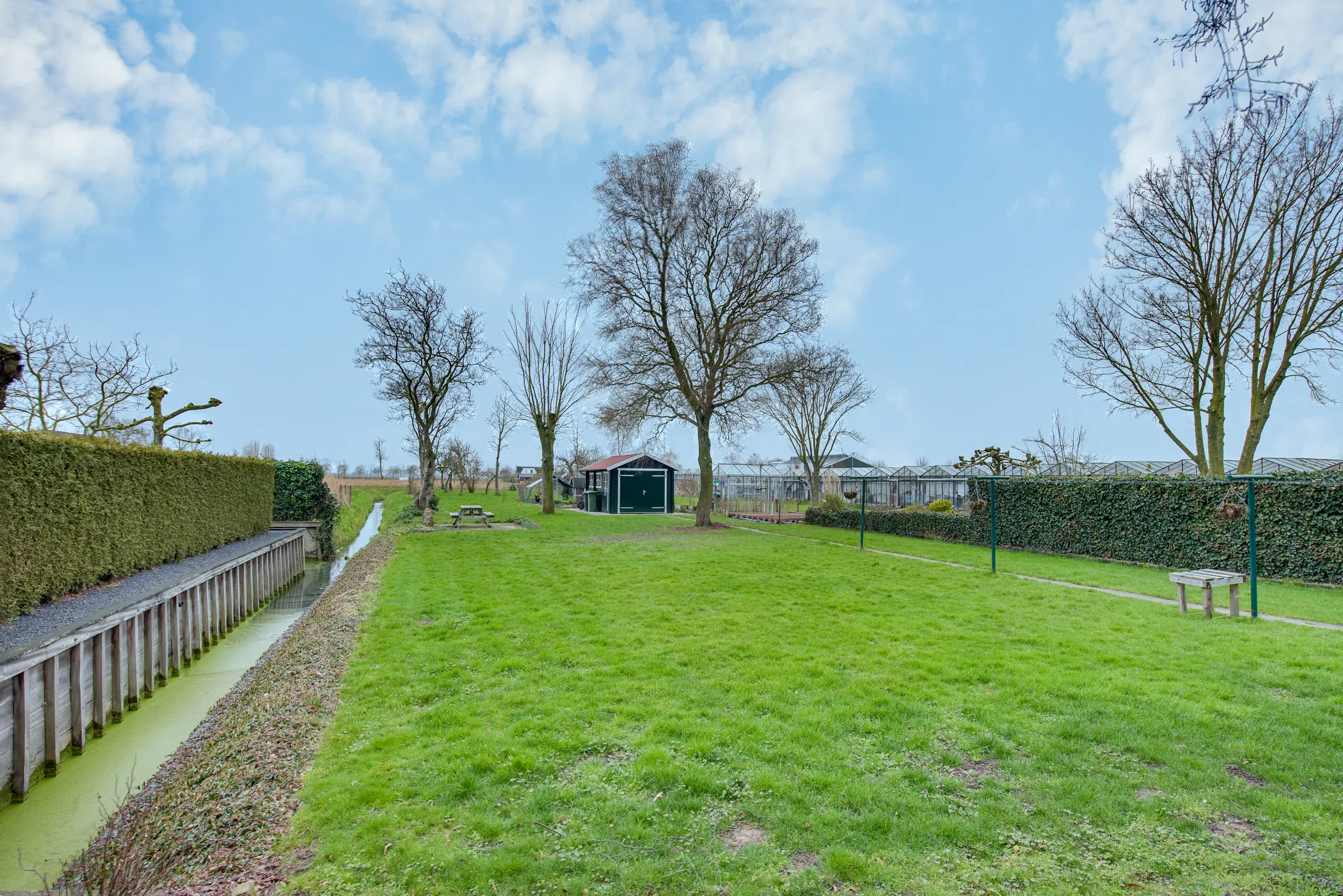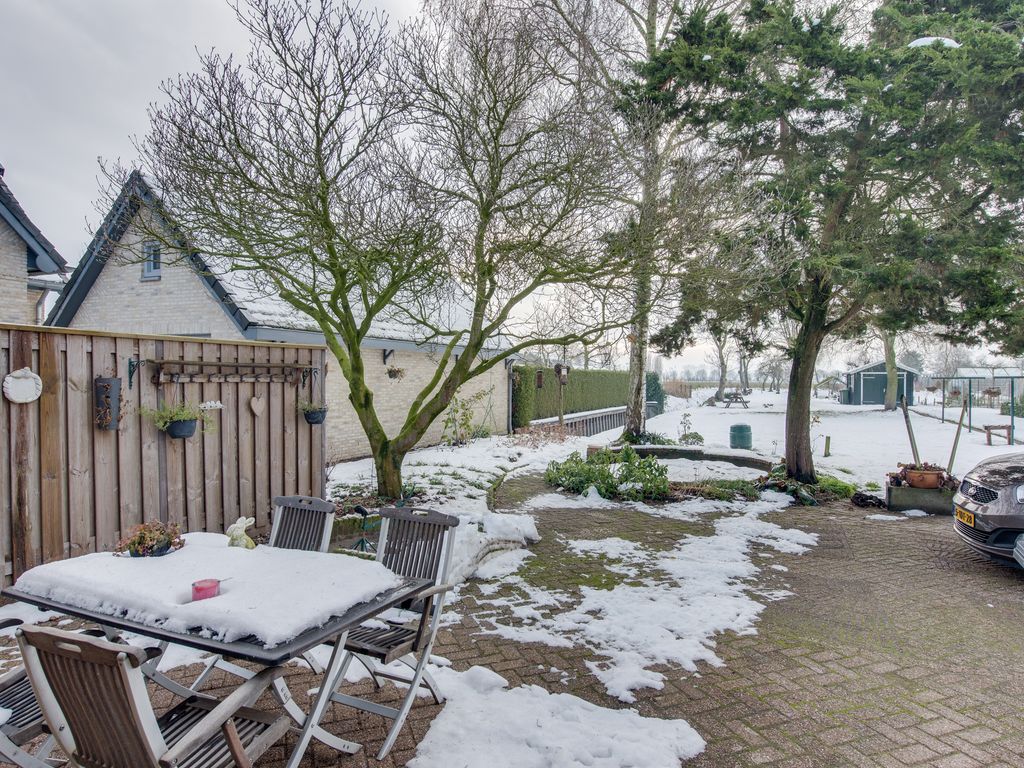 De diepe achtertuin is gelegen op het zuiden en biedt volop rust en privacy. Direct achter de woning ligt een terras met zonnescherm, waar je heerlijk kunt zitten en genieten van lange zomerdagen. Halverwege de tuin staat een houten berging met dubbele deuren en elektra, perfect voor opslag, hobby’s of tuinspullen.