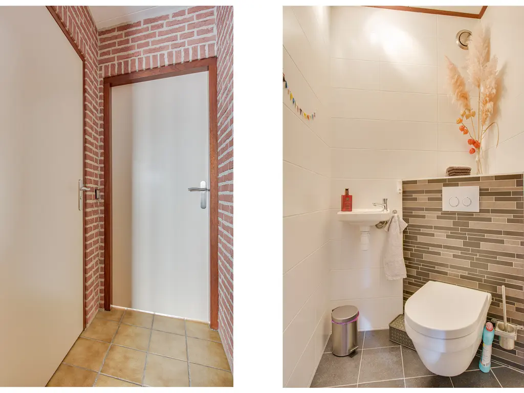 Op de eerste verdieping vind je een ruime overloop, vier slaapkamers met inbouwkasten en een tweede toilet. Daarnaast is er een aparte ruimte die momenteel als berging wordt gebruikt, maar ook uitstekend geschikt is als inloopkast.