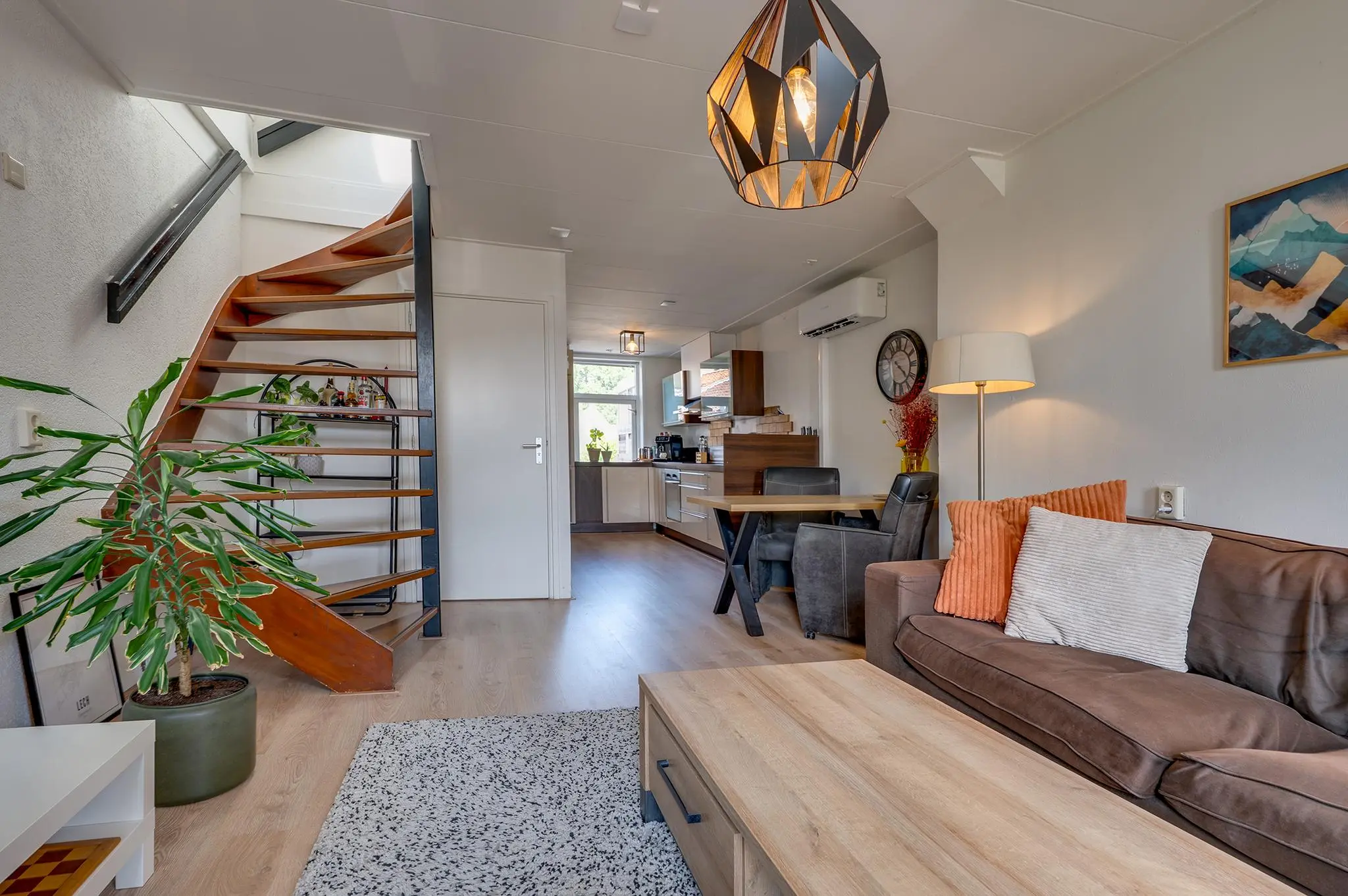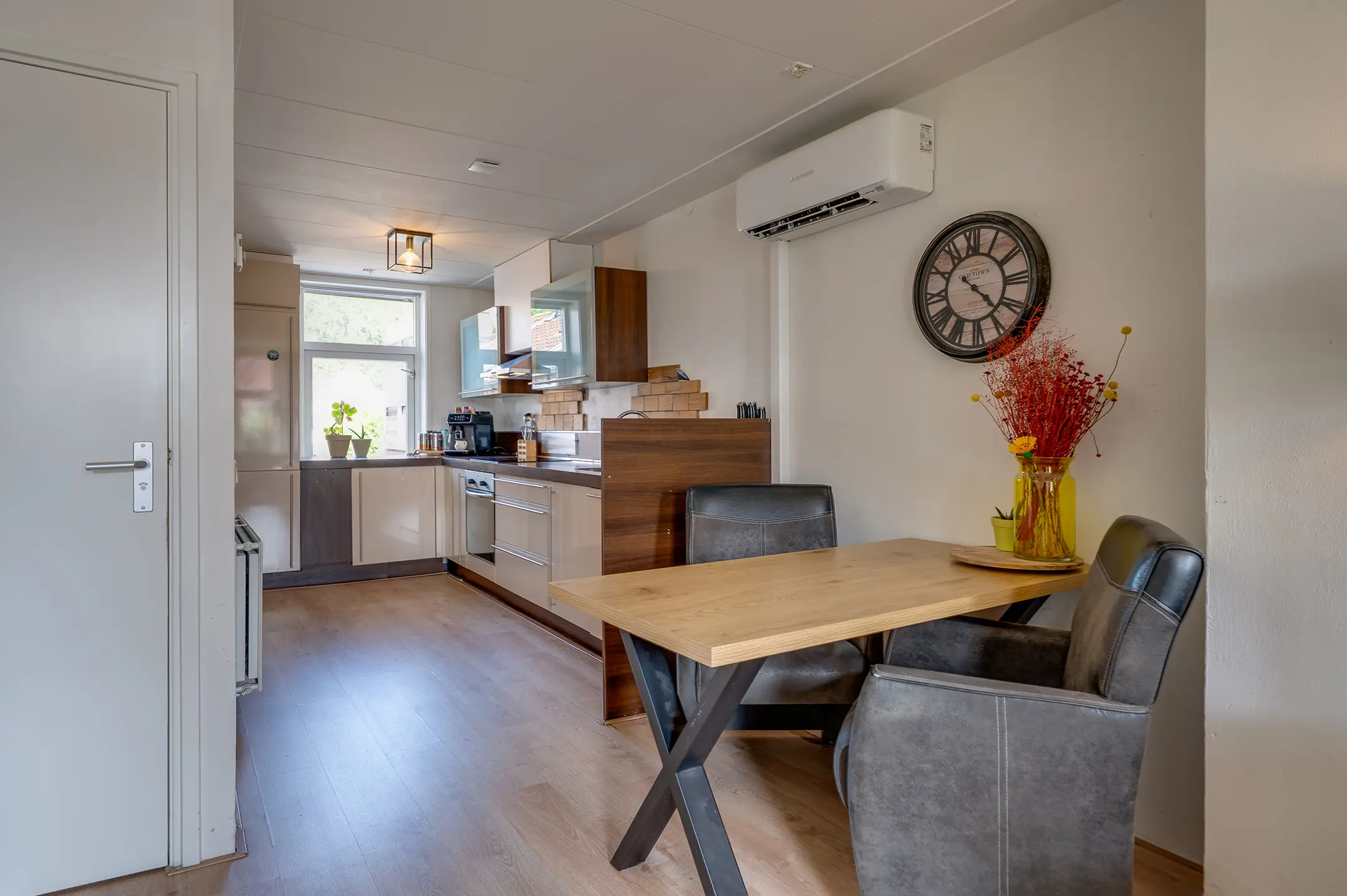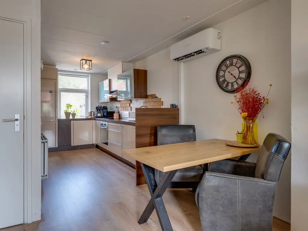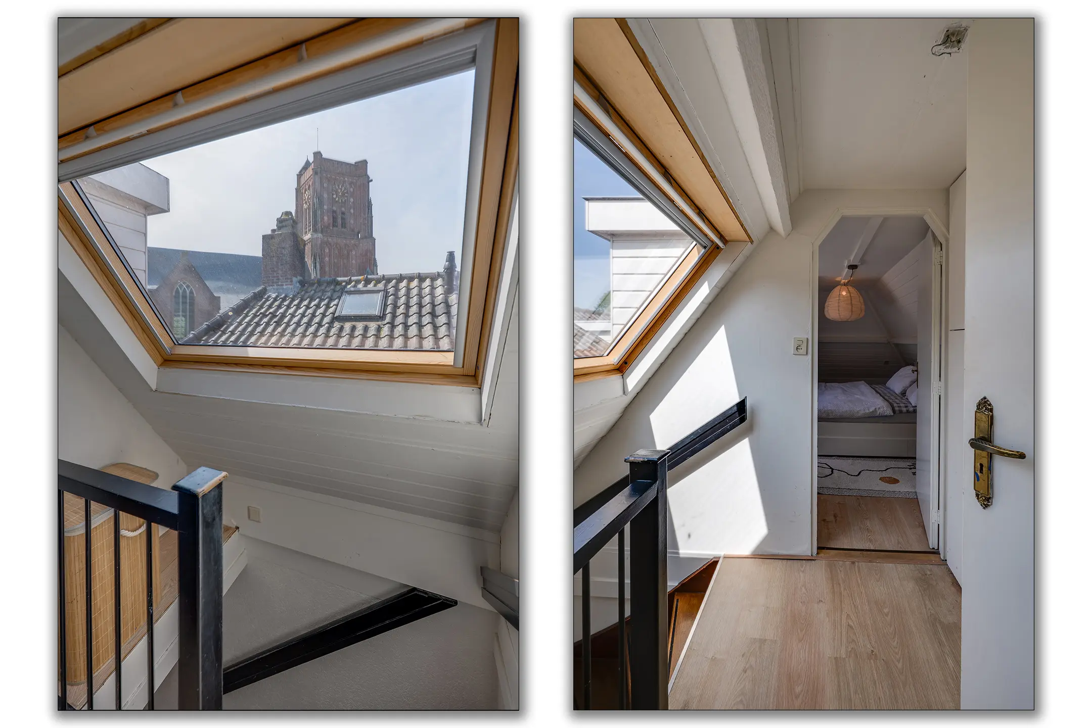 Je komt binnen in een hal met garderobe. Vanuit hier stap je de ruime woonkamer in, met prachtig uitzicht op de Kerkstraat en de Martinuskerk. De airco (inverter) zorgt voor zowel verwarming als verkoeling. Aangrenzend vind je de nieuwe en praktische open keuken. Het warme water wordt geleverd middels een elektrische boiler.