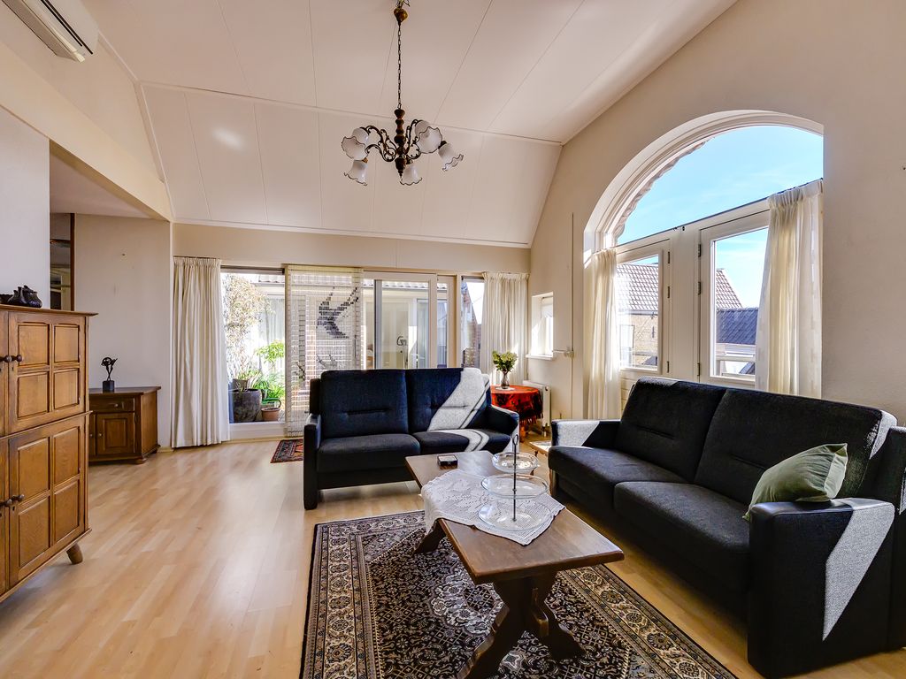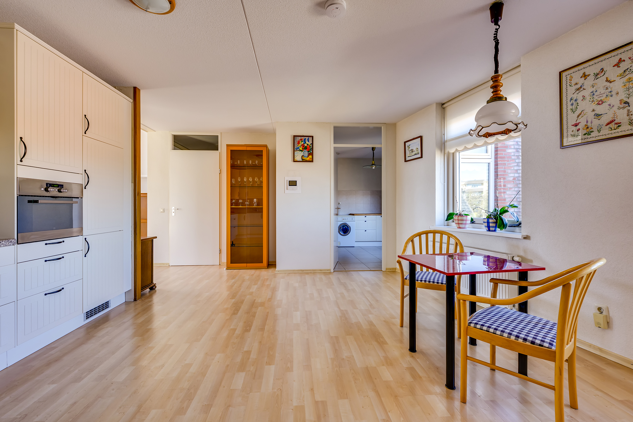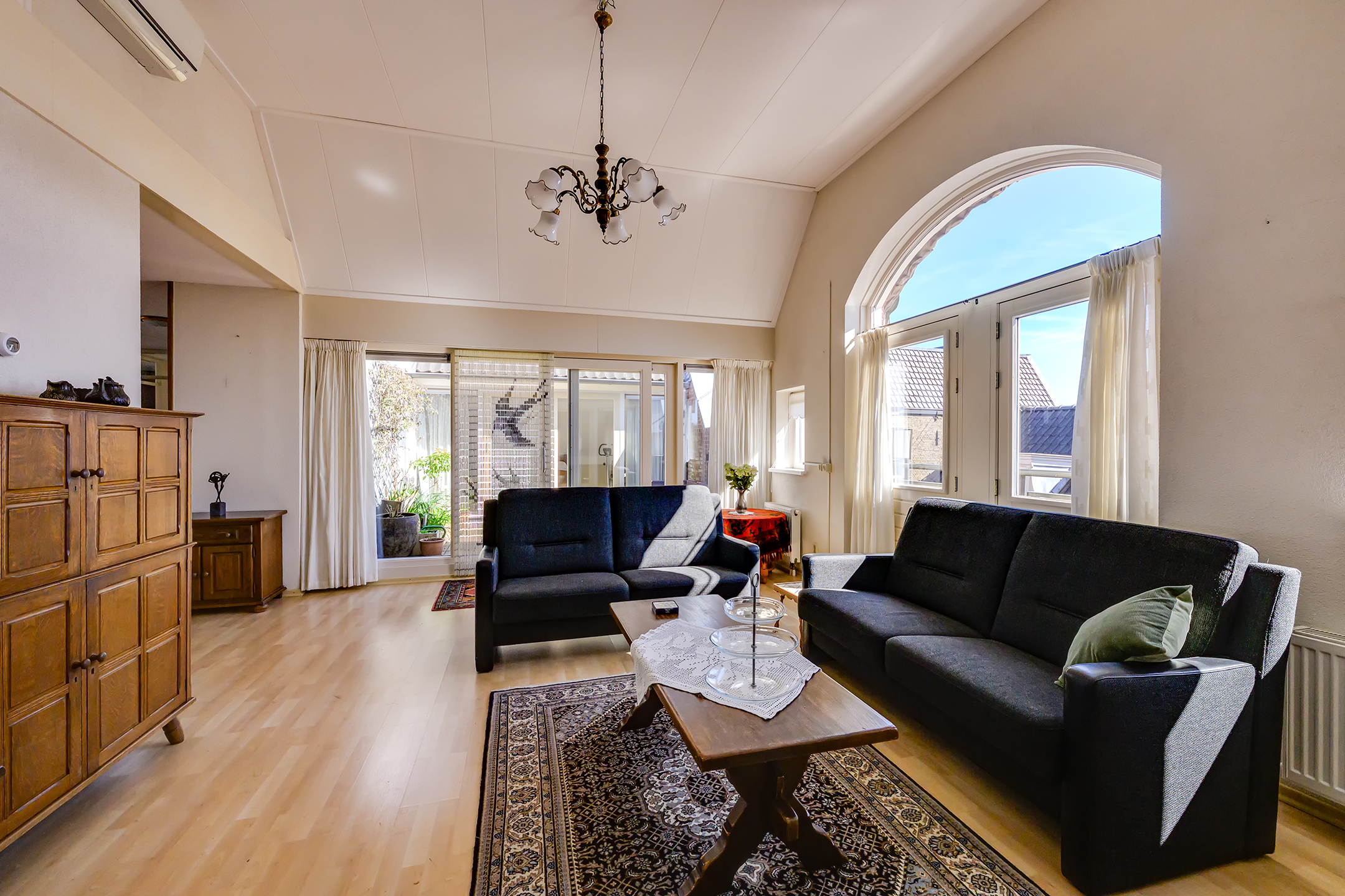 Binnen ervaar je direct de ruimte en het licht. De royale woonkamer met schuifpui en Frans balkon zorgt voor een fijne, open sfeer. Het schuine plafond en het boogvormige raam geven de woning nét dat beetje extra karakter. Aangrenzend vind je de halfopen woonkeuken, een heerlijke plek waar je uitgebreid kunt koken én tafelen met vrienden en familie.