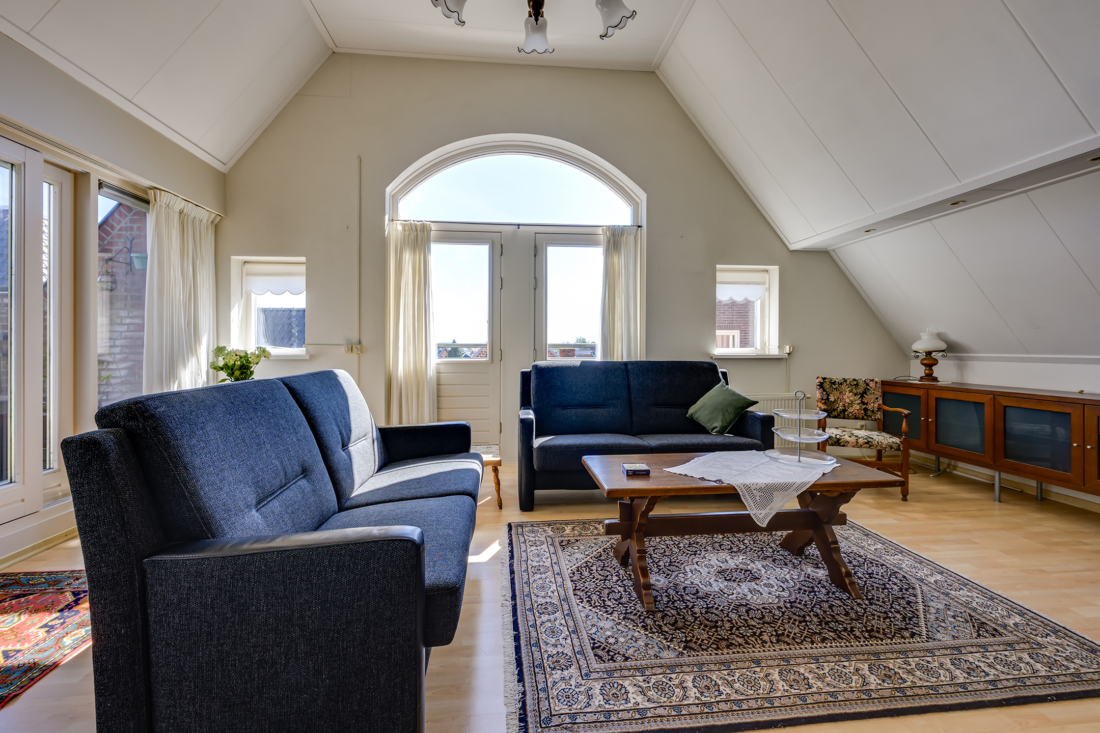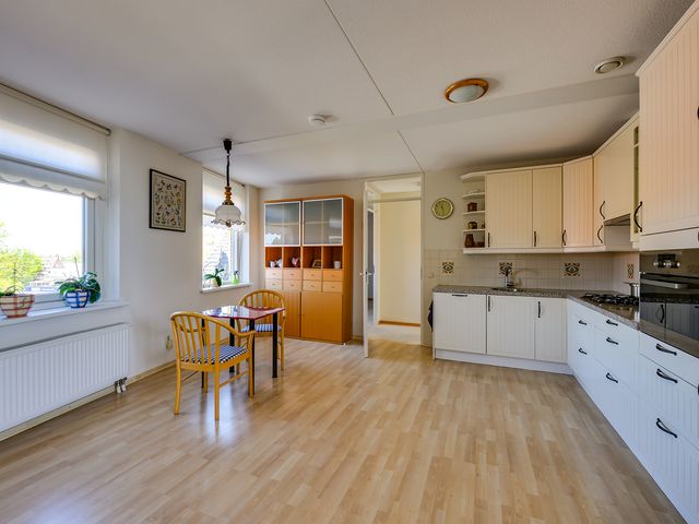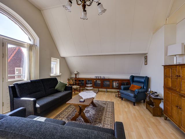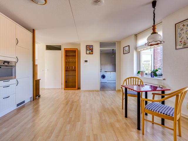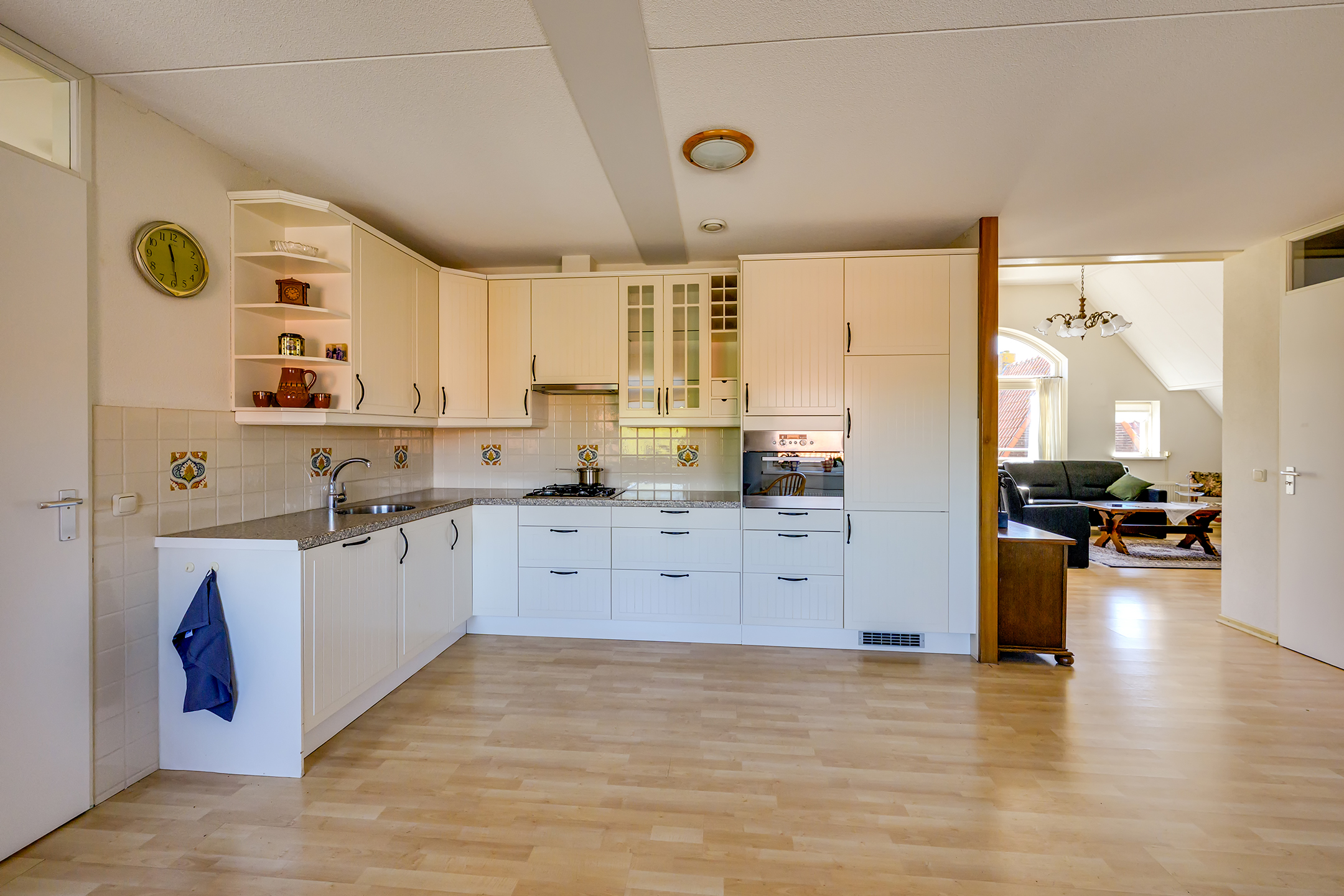 Binnen ervaar je direct de ruimte en het licht. De royale woonkamer met schuifpui en Frans balkon zorgt voor een fijne, open sfeer. Het schuine plafond en het boogvormige raam geven de woning nét dat beetje extra karakter. Aangrenzend vind je de halfopen woonkeuken, een heerlijke plek waar je uitgebreid kunt koken én tafelen met vrienden en familie.