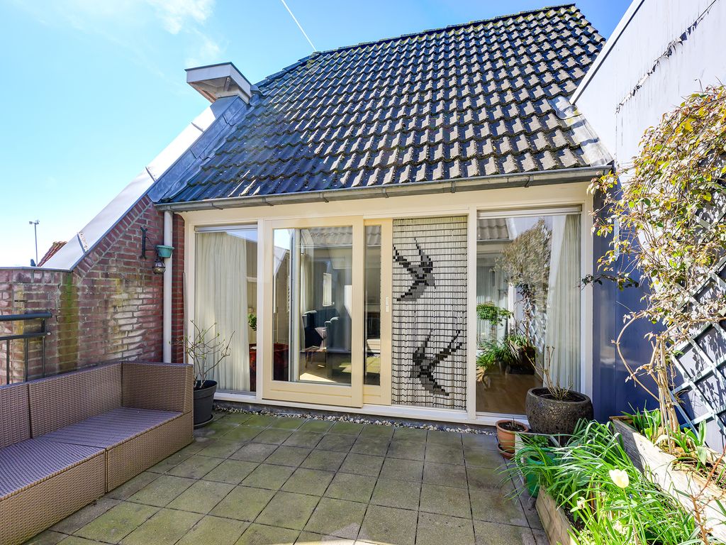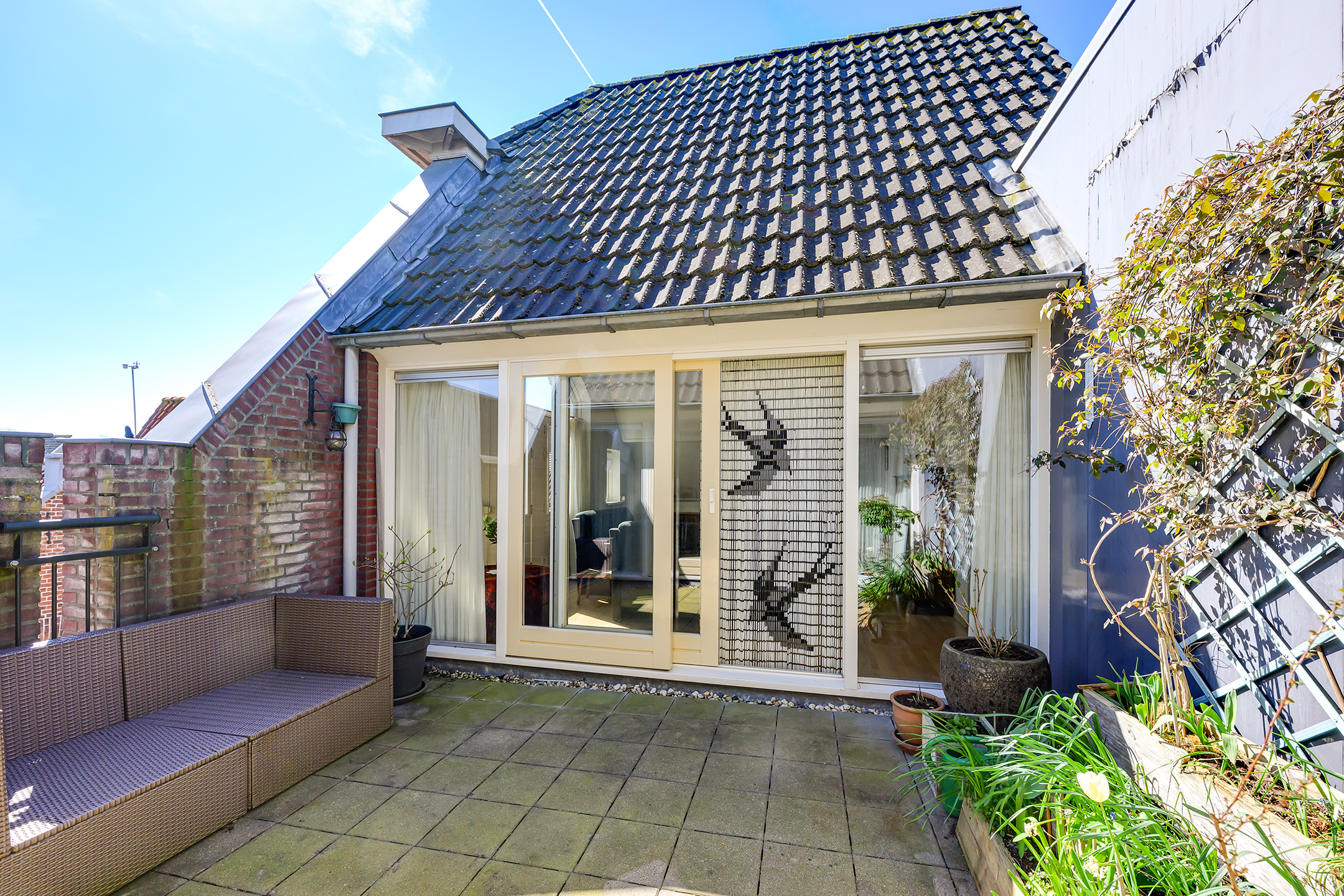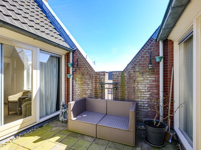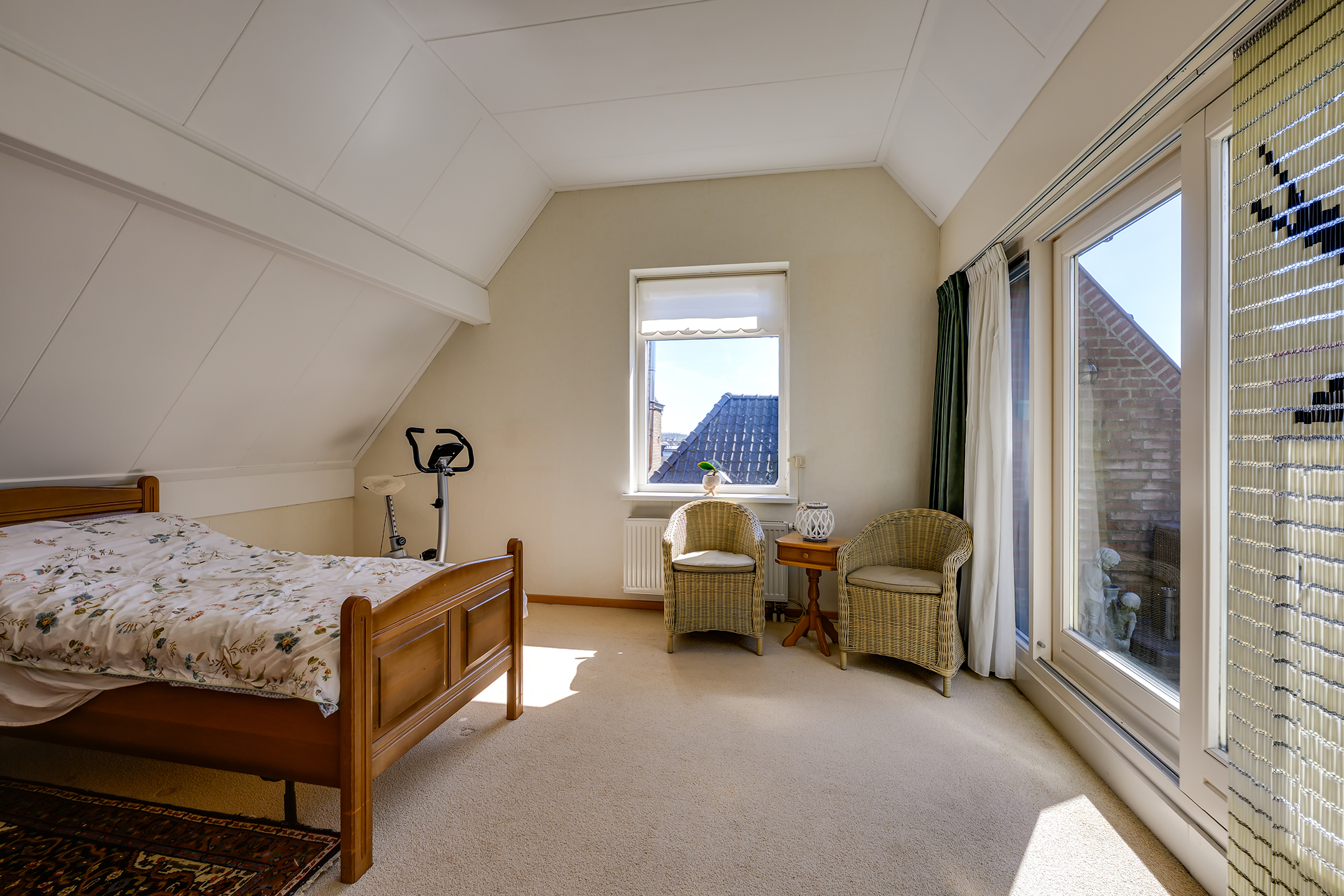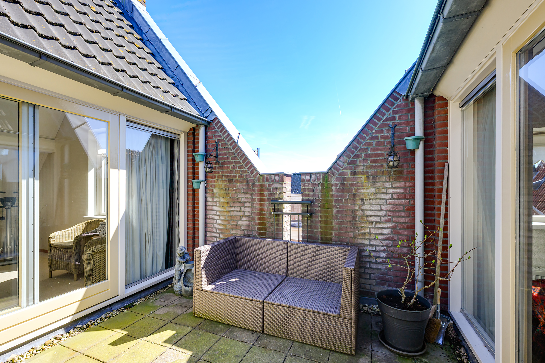 De woning beschikt over twee comfortabele slaapkamers, waarvan de grootste directe toegang biedt tot het zonnige dakterras van circa 14 m² – een fijne plek om te ontspannen en te genieten van de buitenlucht.