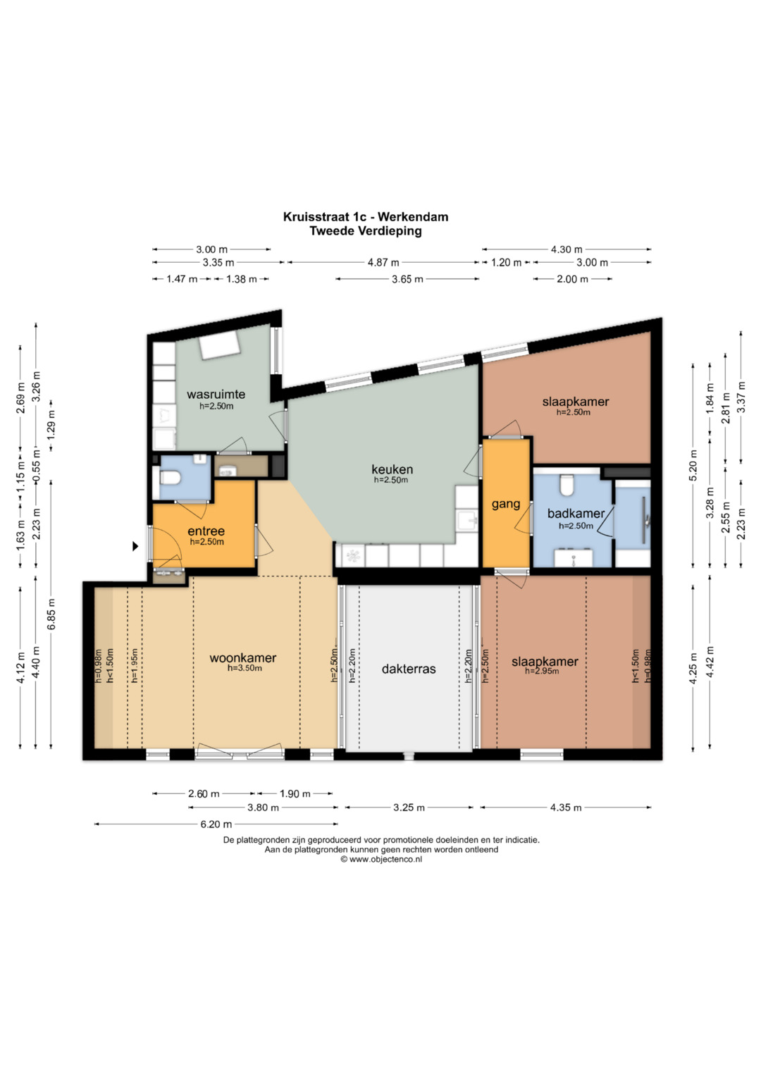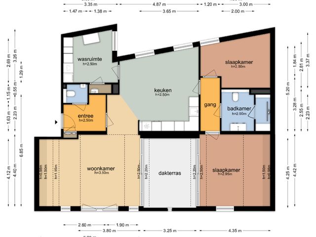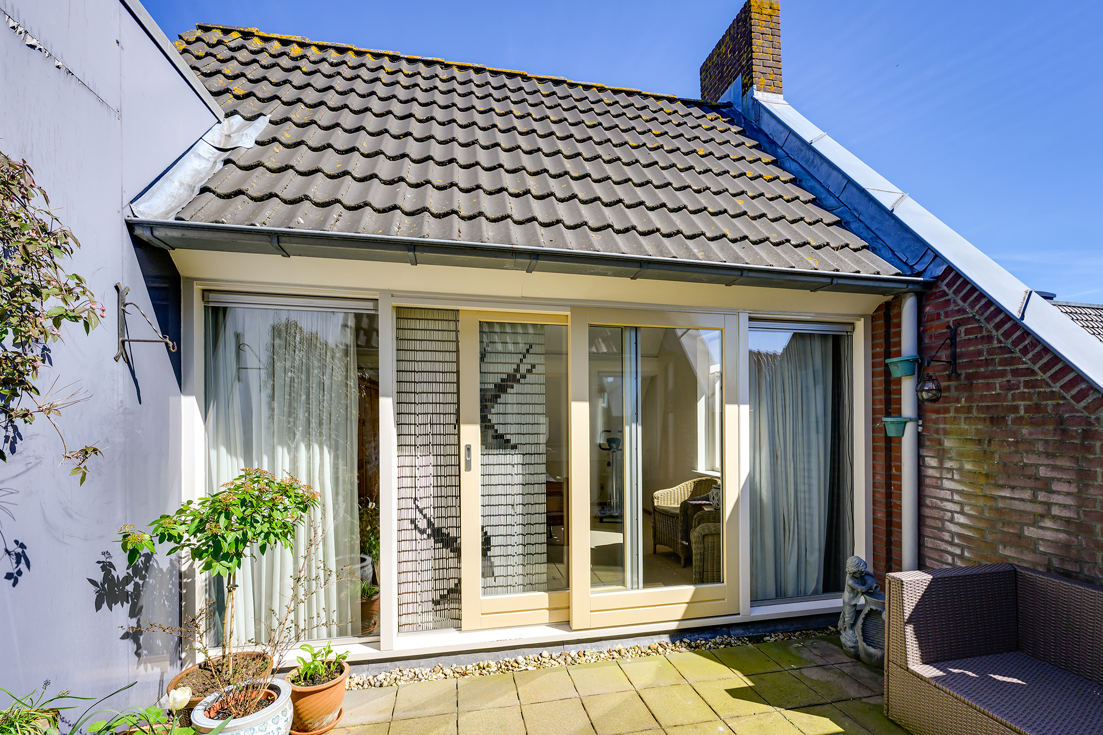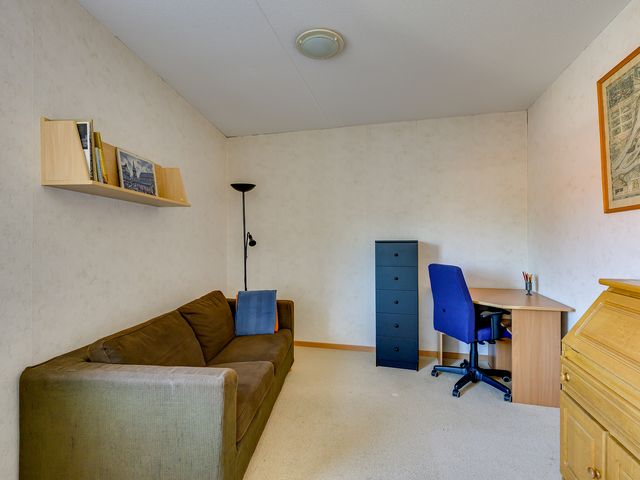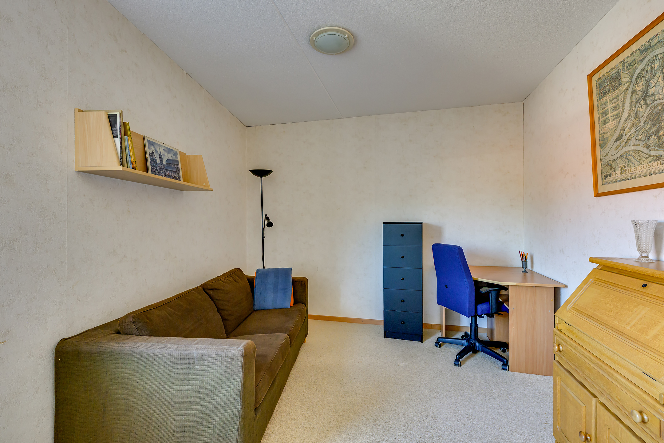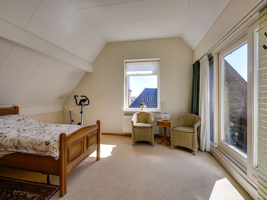 De woning beschikt over twee comfortabele slaapkamers, waarvan de grootste directe toegang biedt tot het zonnige dakterras van circa 14 m² – een fijne plek om te ontspannen en te genieten van de buitenlucht.
