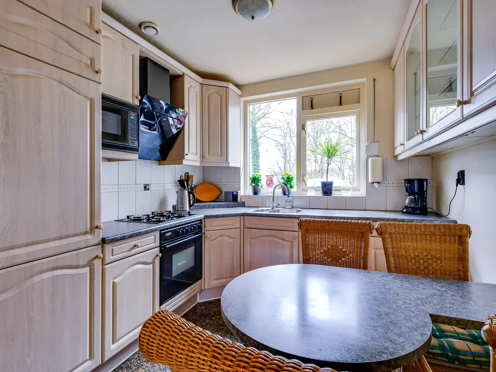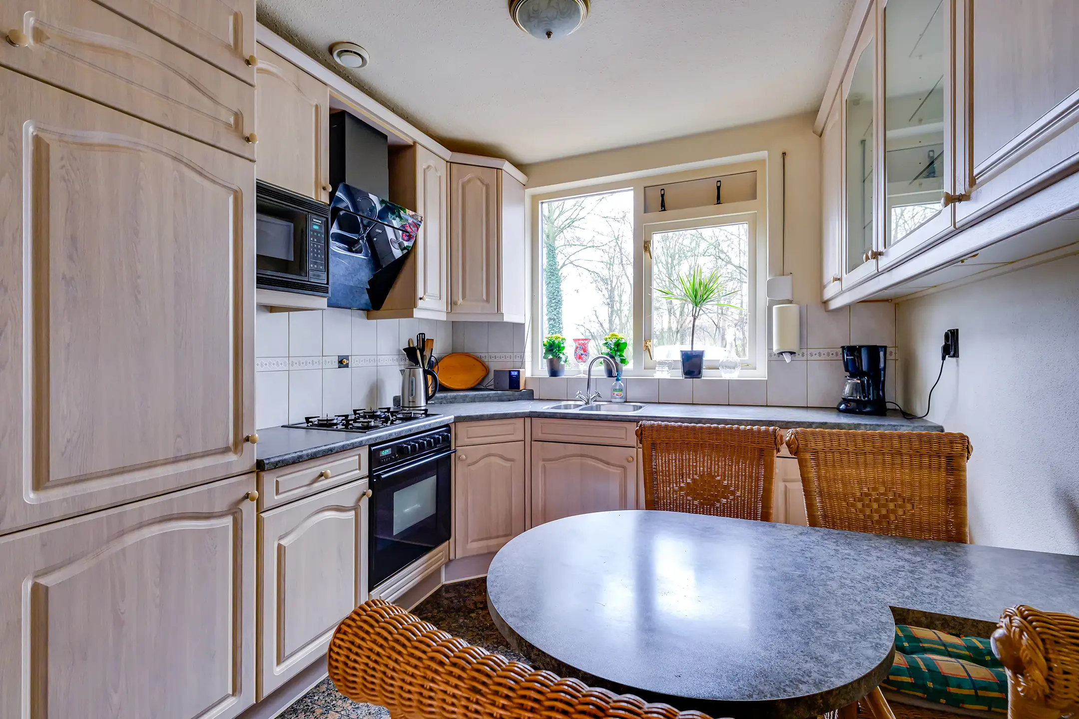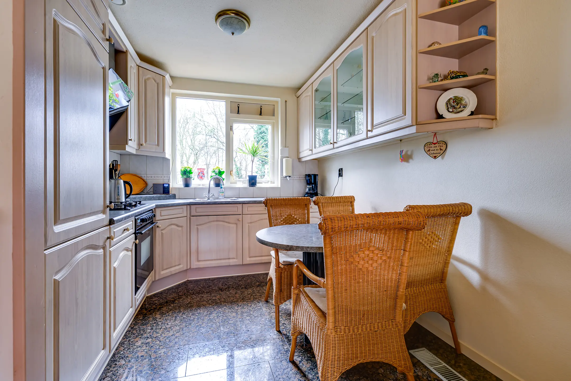 Bij binnenkomst tref je een ruime hal met toilet, meterkast en trapopgang. Vanuit hier loop je door naar de lichte woonkamer, waar de grote schuifpui aan de achterzijde zorgt voor een prettige lichtinval en een directe verbinding met de tuin. De open keuken bevindt zich aan de voorzijde van de woning en is compleet uitgerust met diverse inbouwapparatuur, waaronder een gaskookplaat, oven, magnetron, vaatwasser en koelkast. Daarnaast is er volop kastruimte, waardoor koken hier niet alleen praktisch maar ook plezierig is. Aansluitend vind je een handige bijkeuken met een keukenblokje.