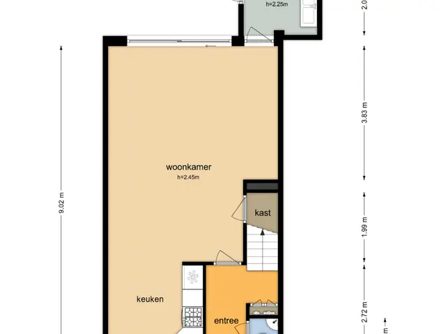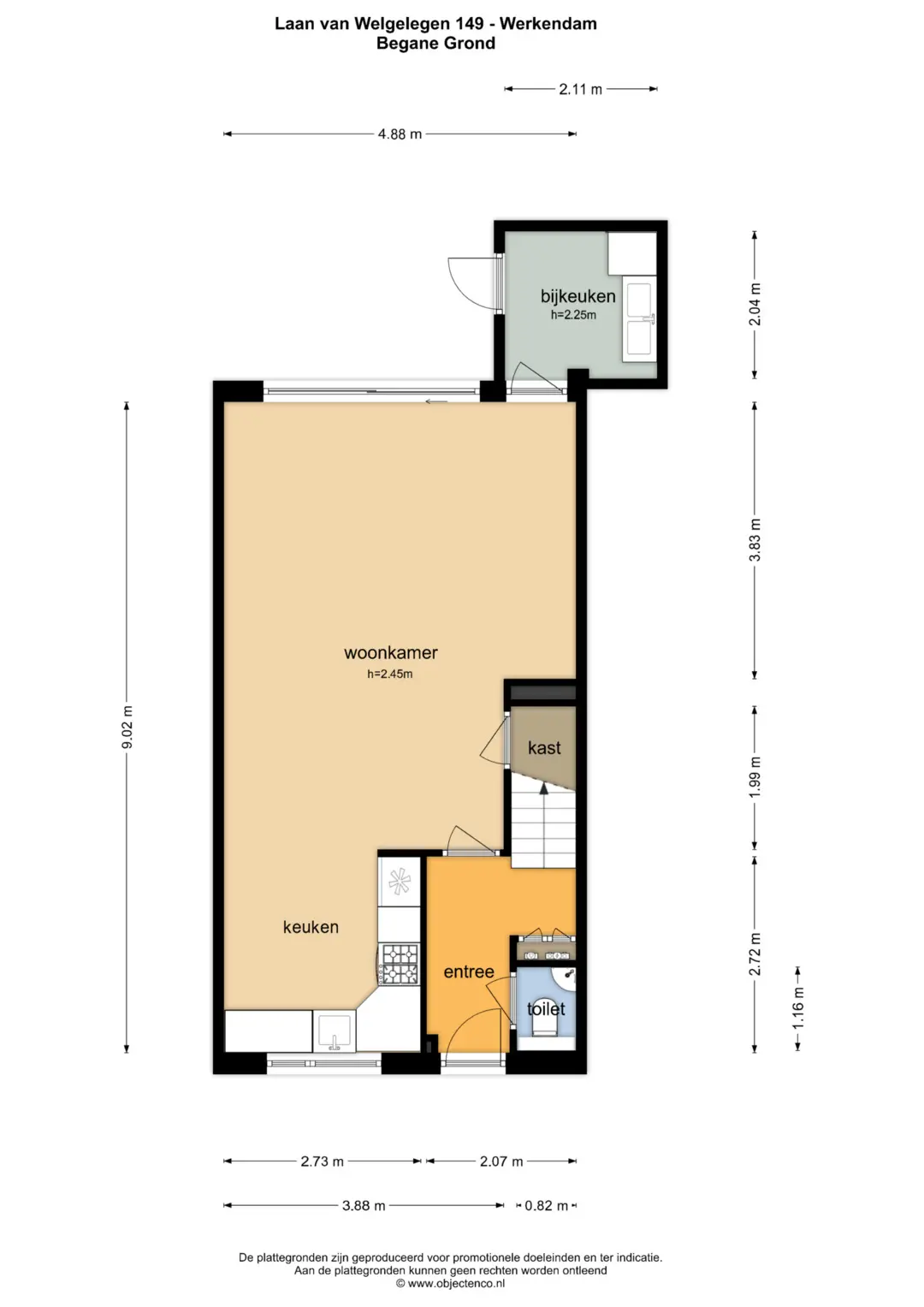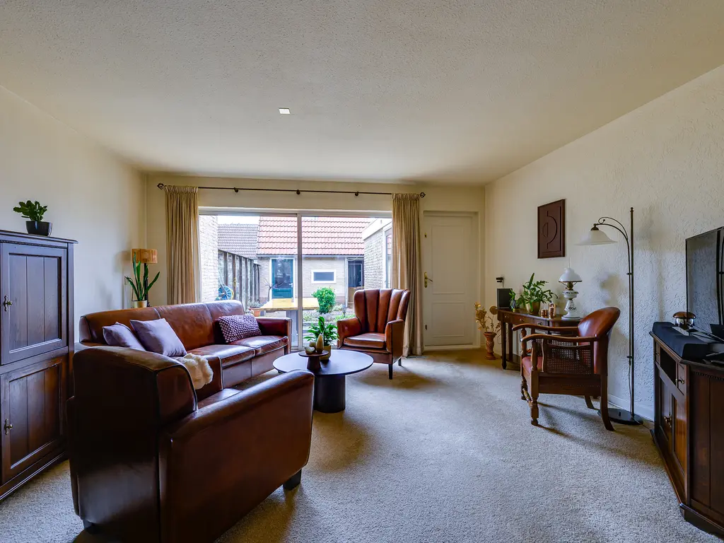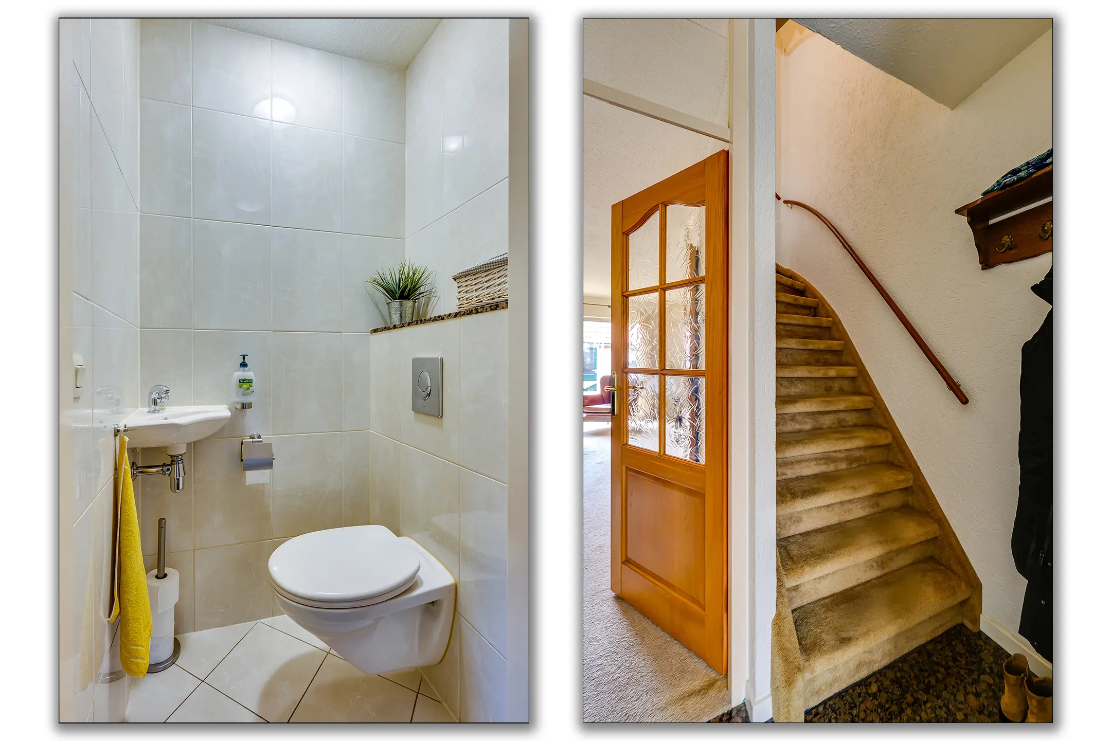 Bij binnenkomst tref je een ruime hal met toilet, meterkast en trapopgang. Vanuit hier loop je door naar de lichte woonkamer, waar de grote schuifpui aan de achterzijde zorgt voor een prettige lichtinval en een directe verbinding met de tuin. De open keuken bevindt zich aan de voorzijde van de woning en is compleet uitgerust met diverse inbouwapparatuur, waaronder een gaskookplaat, oven, magnetron, vaatwasser en koelkast. Daarnaast is er volop kastruimte, waardoor koken hier niet alleen praktisch maar ook plezierig is. Aansluitend vind je een handige bijkeuken met een keukenblokje.
