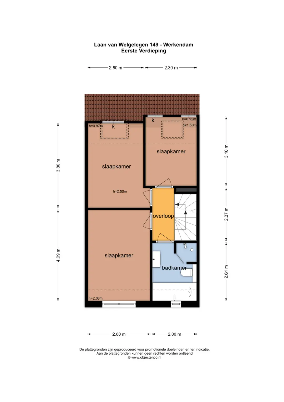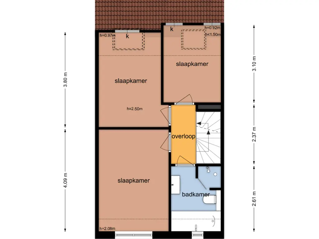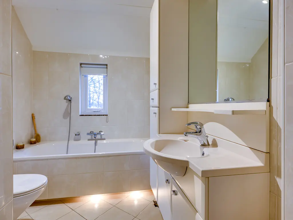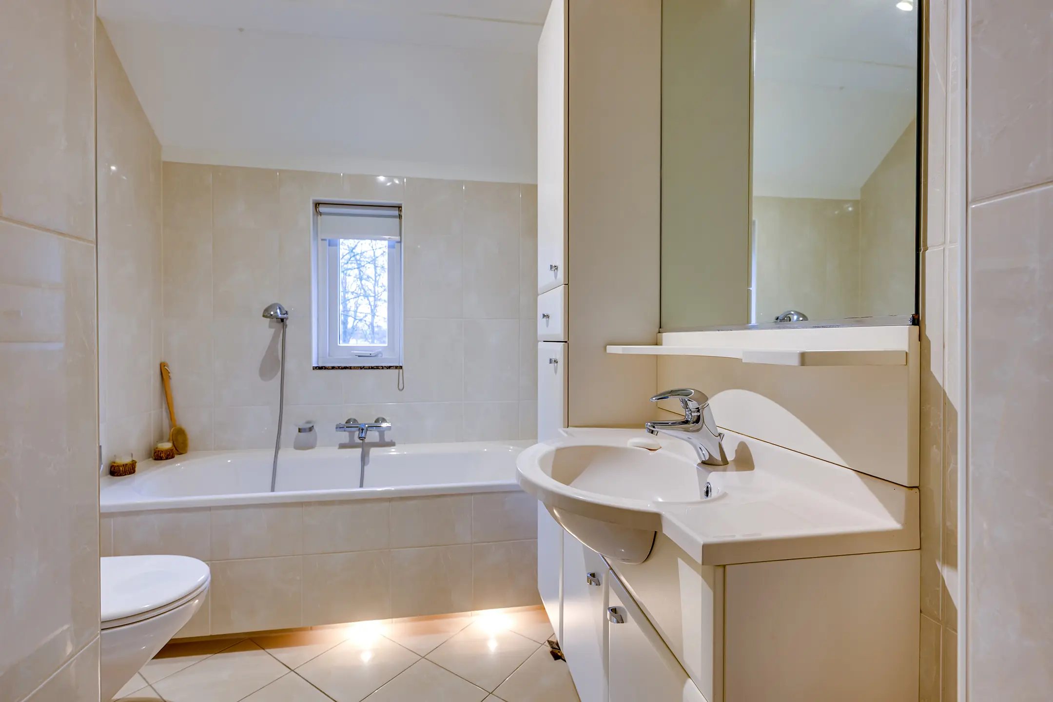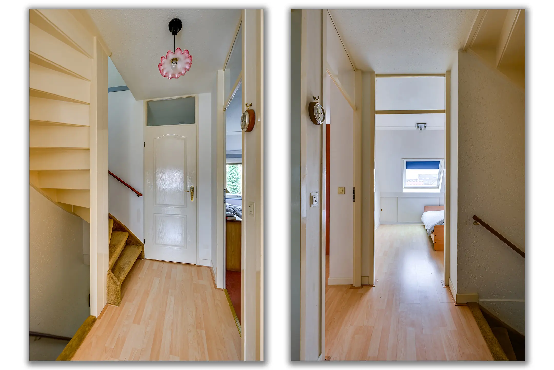 Op de eerste verdieping geeft de overloop toegang tot drie slaapkamers en de badkamer. De slaapkamers aan de achterzijde zijn voorzien van Velux dakramen en beschikken over praktische bergruimte achter de knieschotten. De badkamer is compleet ingericht met een ligbad met douchemogelijkheid, een aparte douchecabine, een wastafelmeubel met veel opbergruimte, een toilet en een handdoekradiator.