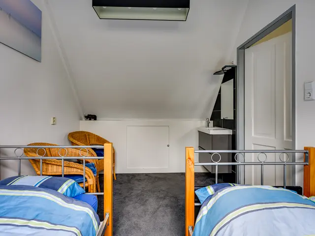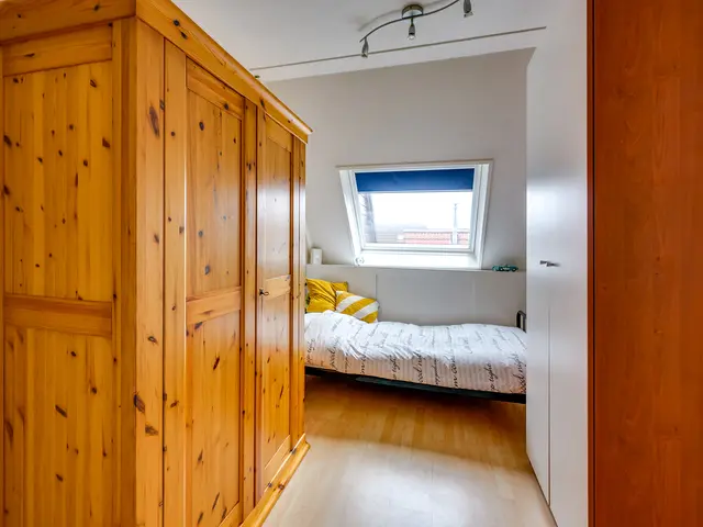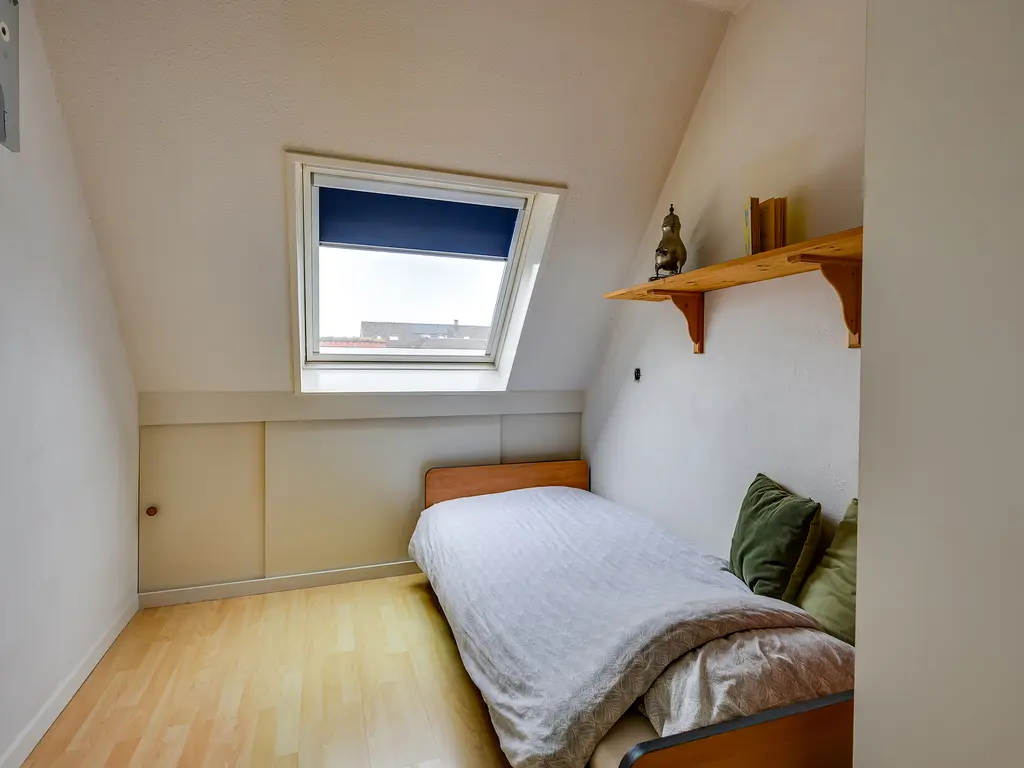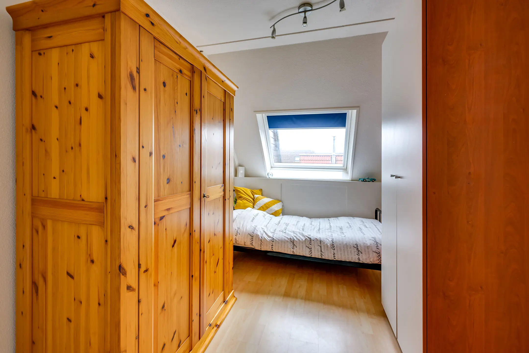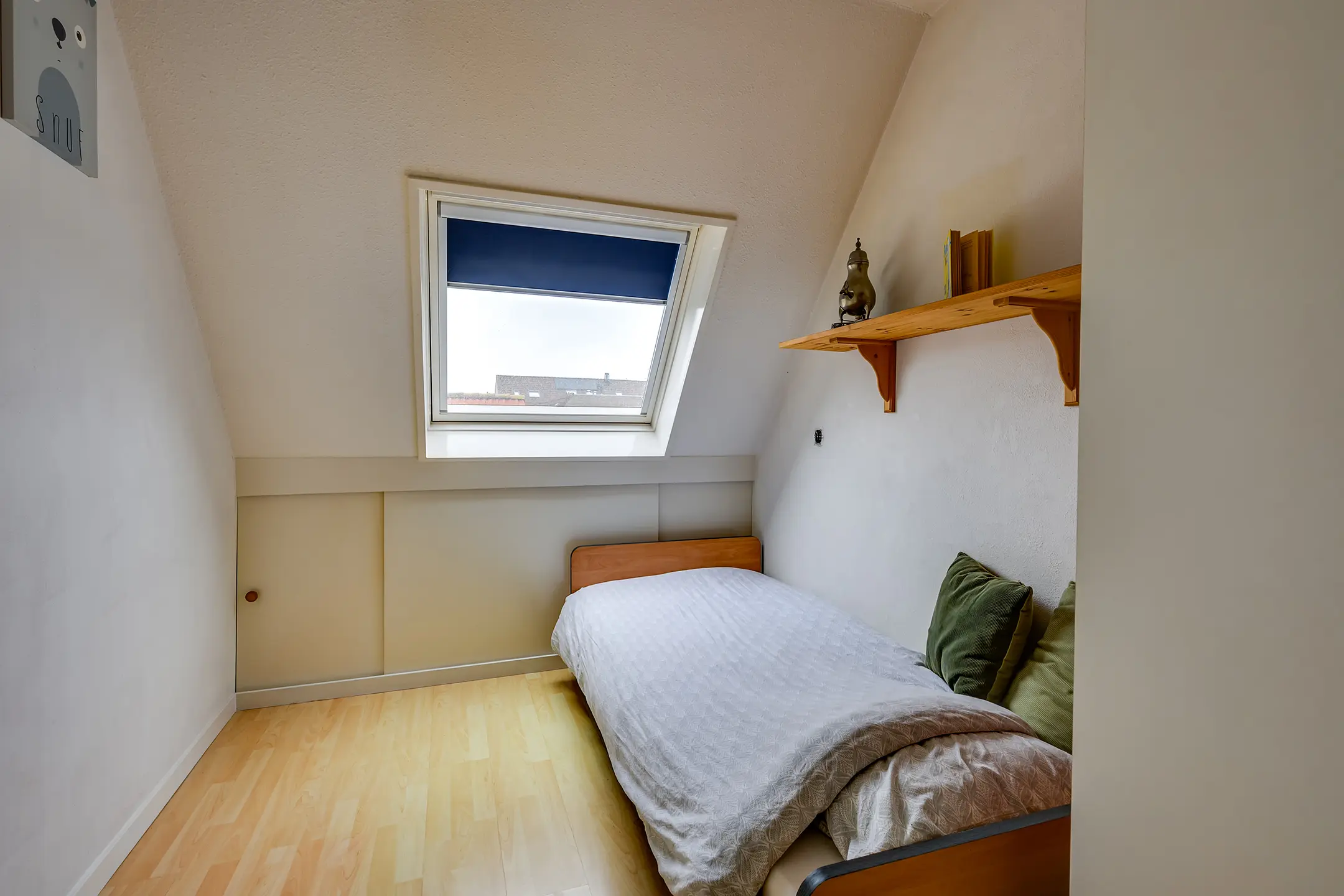 De tweede verdieping biedt nog eens extra ruimte. Op de voorzolder bevinden zich de wasmachine-opstelling, de CV-ketel en de installatie van de heteluchtverwarming. Daarnaast is hier een vierde slaapkamer gerealiseerd, voorzien van een dakraam en een eigen wastafelmeubel. Deze verdieping is uitermate geschikt als logeerkamer, tienerkamer of rustige thuiswerkplek. Ook hier is extra bergruimte aanwezig achter de knieschotten.