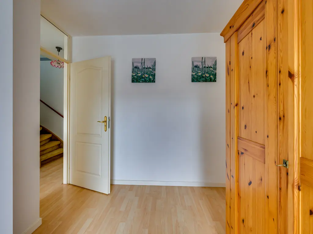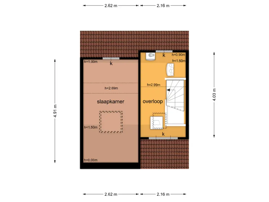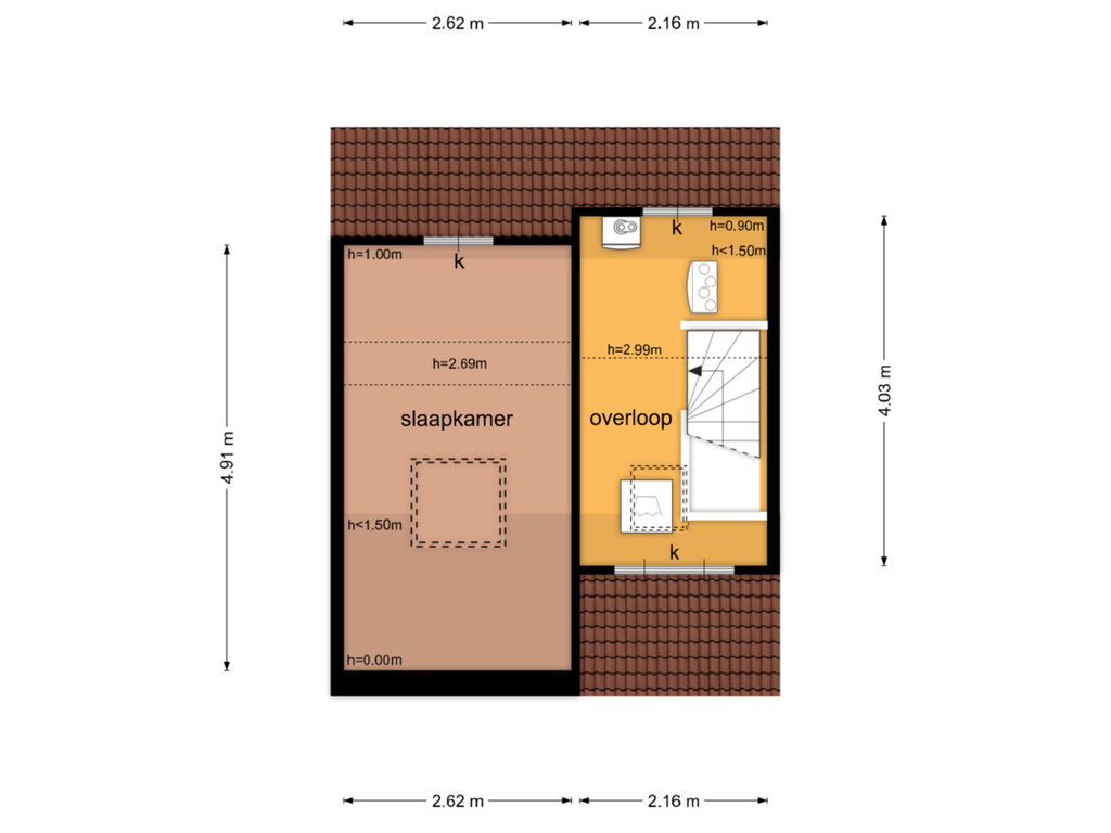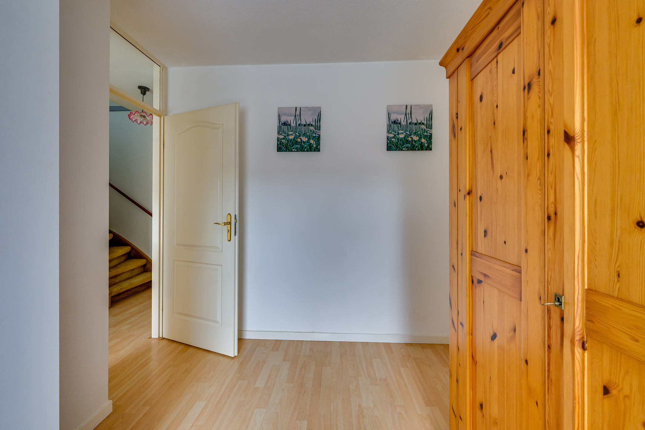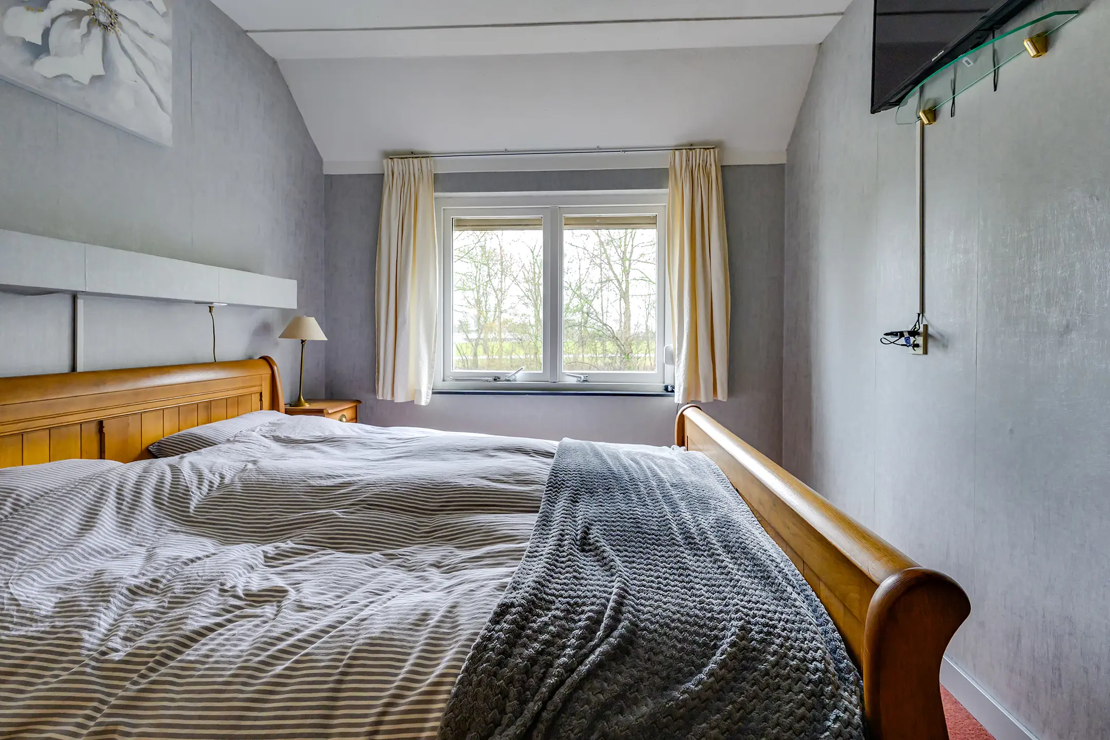 De tweede verdieping biedt nog eens extra ruimte. Op de voorzolder bevinden zich de wasmachine-opstelling, de CV-ketel en de installatie van de heteluchtverwarming. Daarnaast is hier een vierde slaapkamer gerealiseerd, voorzien van een dakraam en een eigen wastafelmeubel. Deze verdieping is uitermate geschikt als logeerkamer, tienerkamer of rustige thuiswerkplek. Ook hier is extra bergruimte aanwezig achter de knieschotten.