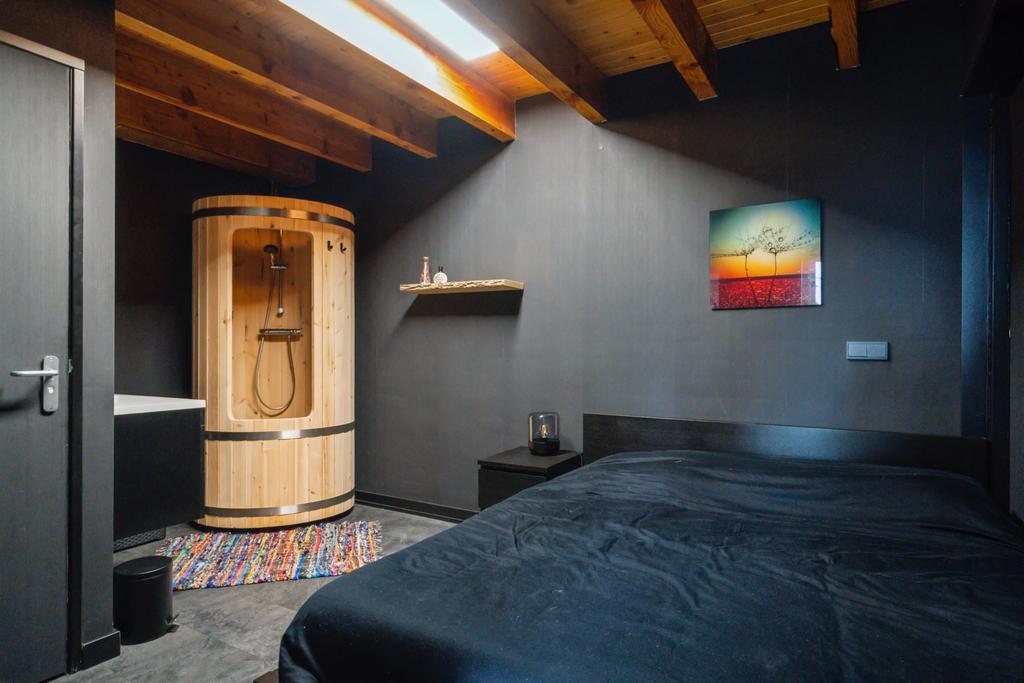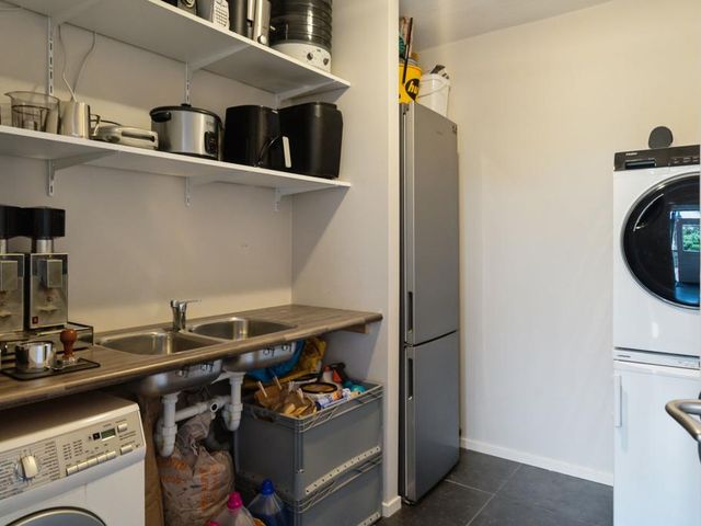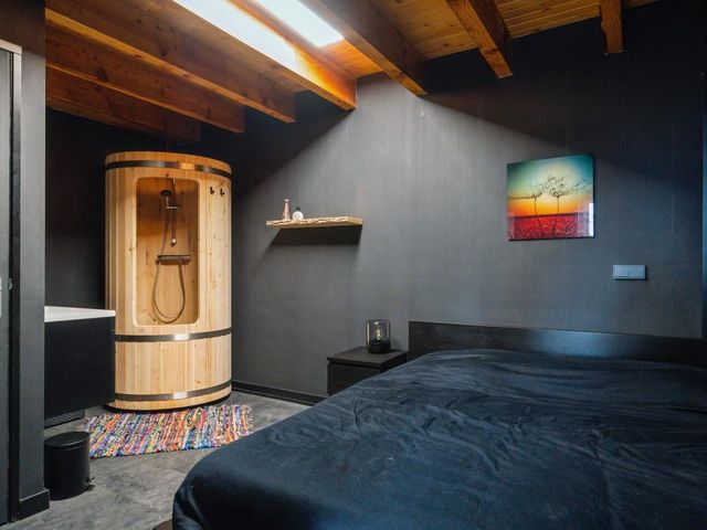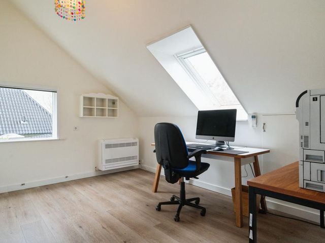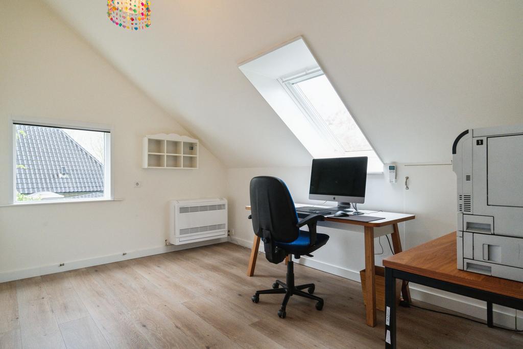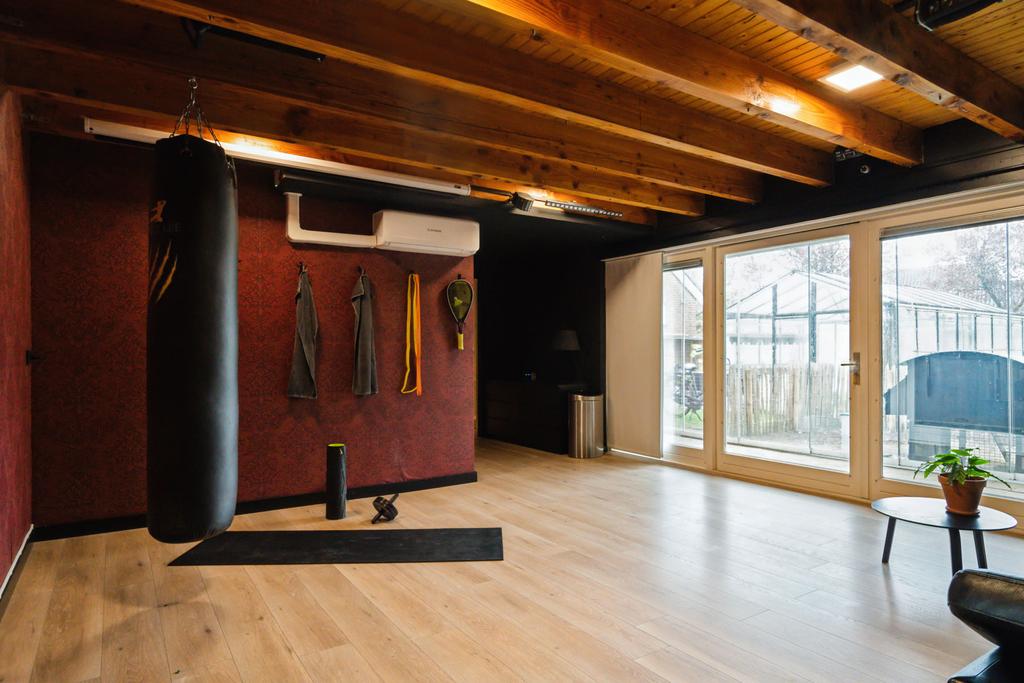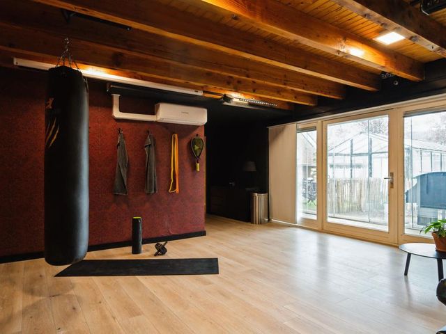Het bijgebouw achter het huis is er in 1997 bij gebouwd. Het heeft een multifunctionele inrichting, want de indeling bestaat uit een slaapkamer voorzien van wastafelmeubel, douche, toilet en een grote ruimte die momenteel dienst doet als fitness/chill ruimte. Fantastisch te gebruiken als zelfstandige woonruimte of kantoor/praktijkruimte met eigen opgang.