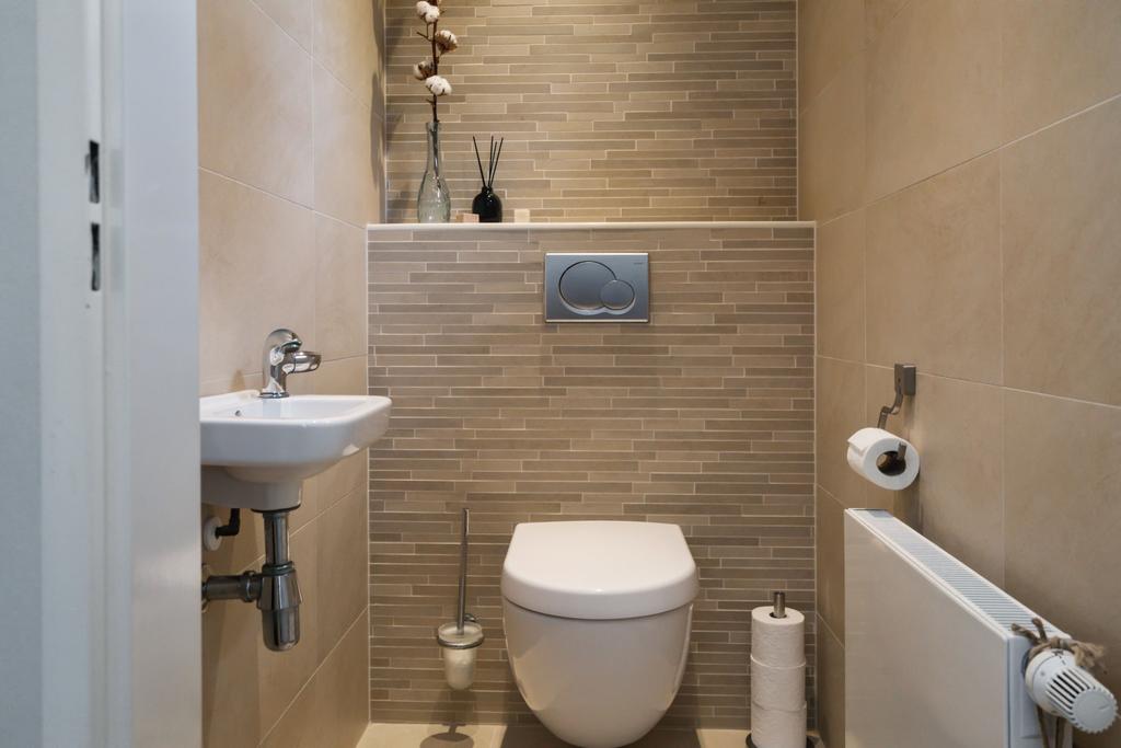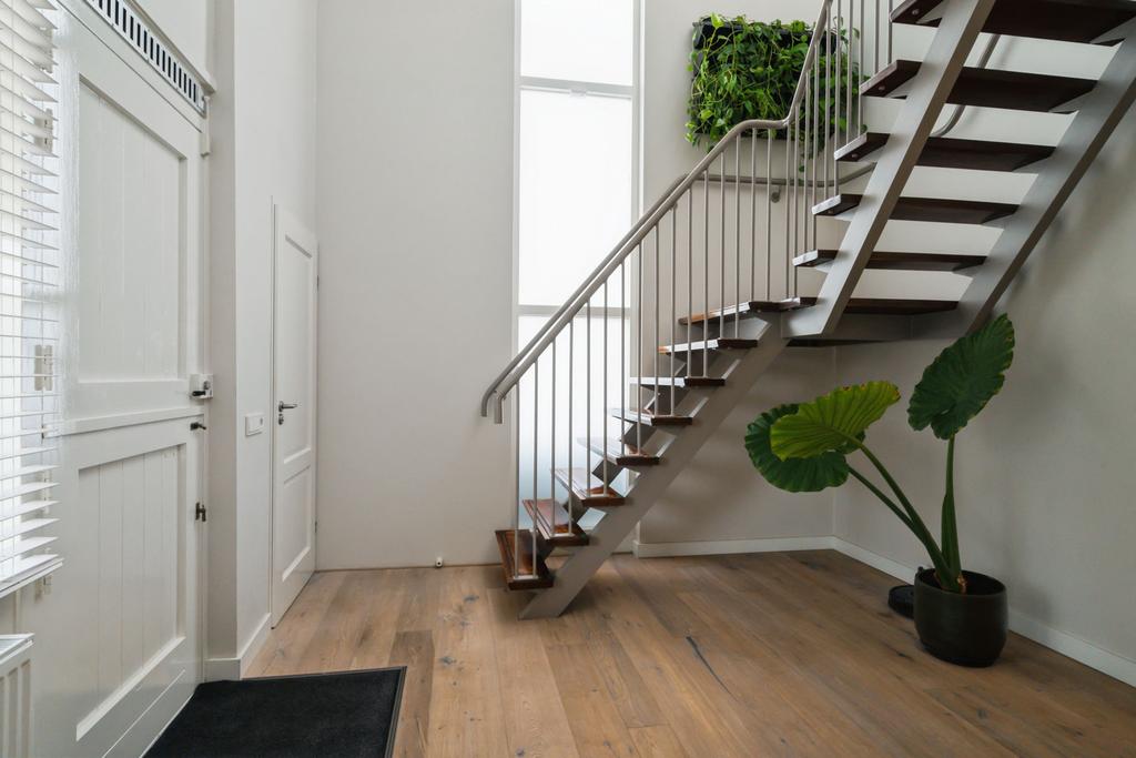 Aan de rechterkant naast de eetkamer heeft u via twee openslaande deuren toegang tot een royale hal met prachtige trapopgang en vide. In deze hal treft u ook een toilet. Daarnaast heeft u vanuit deze hal toegang tot de master bedroom met badkamer ensuite (v.v. regendouche en wastafelmeubel met dubbele wasbak). Via een deur in de master bedroom is ook de achtertuin bereikbaar.