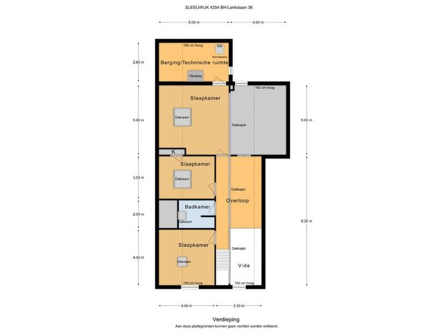 Het totaal heeft ongeveer 1000 m³ inhoud en het perceel heeft een grootte van 885 m².