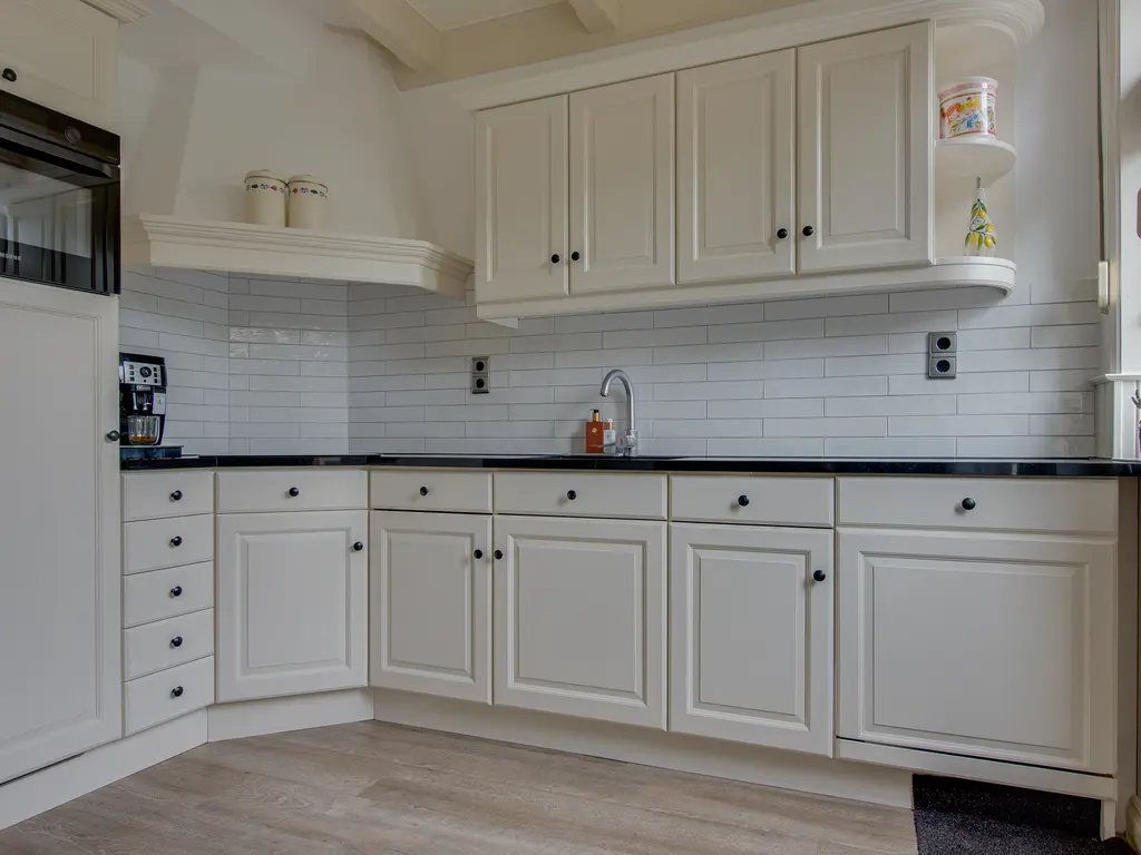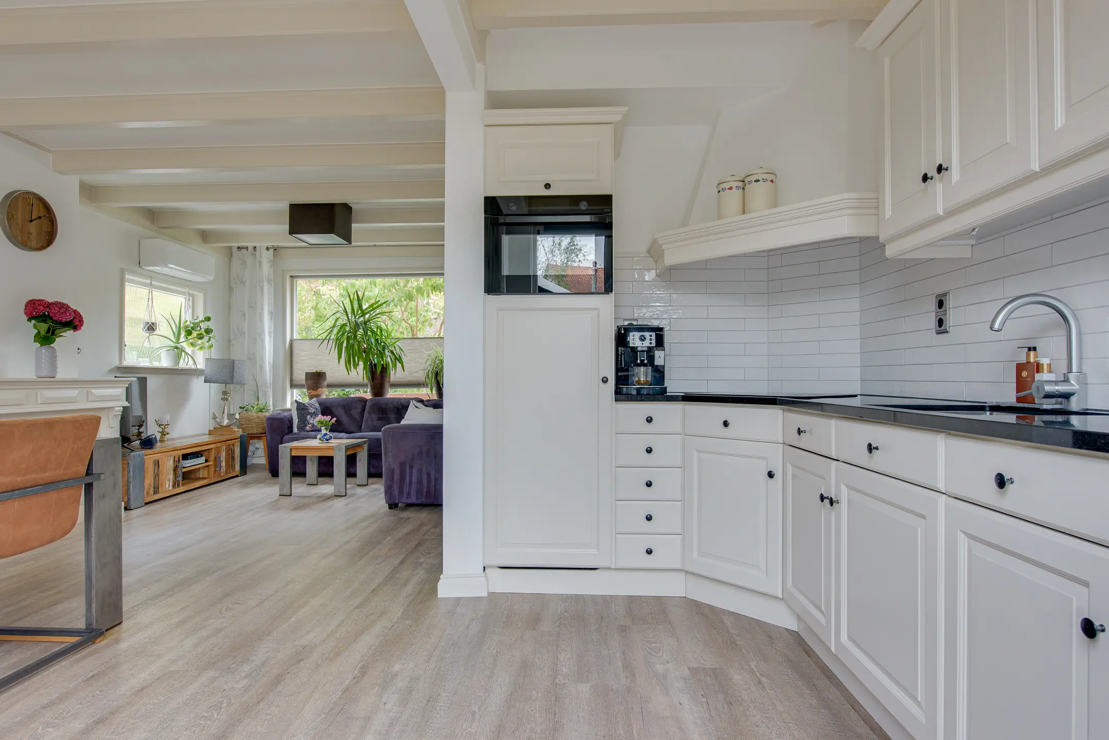 De woonkamer biedt volop ruimte voor een gezellige zithoek én eethoek. Aansluitend vind je de open keuken met een granieten werkblad, inductiekookplaat, afzuigkap, koelkast, combi-oven en 1,5 spoelbak. Via de achterdeur stap je zo de tuin in — ideaal als je gezellig buiten eet in de zomer!