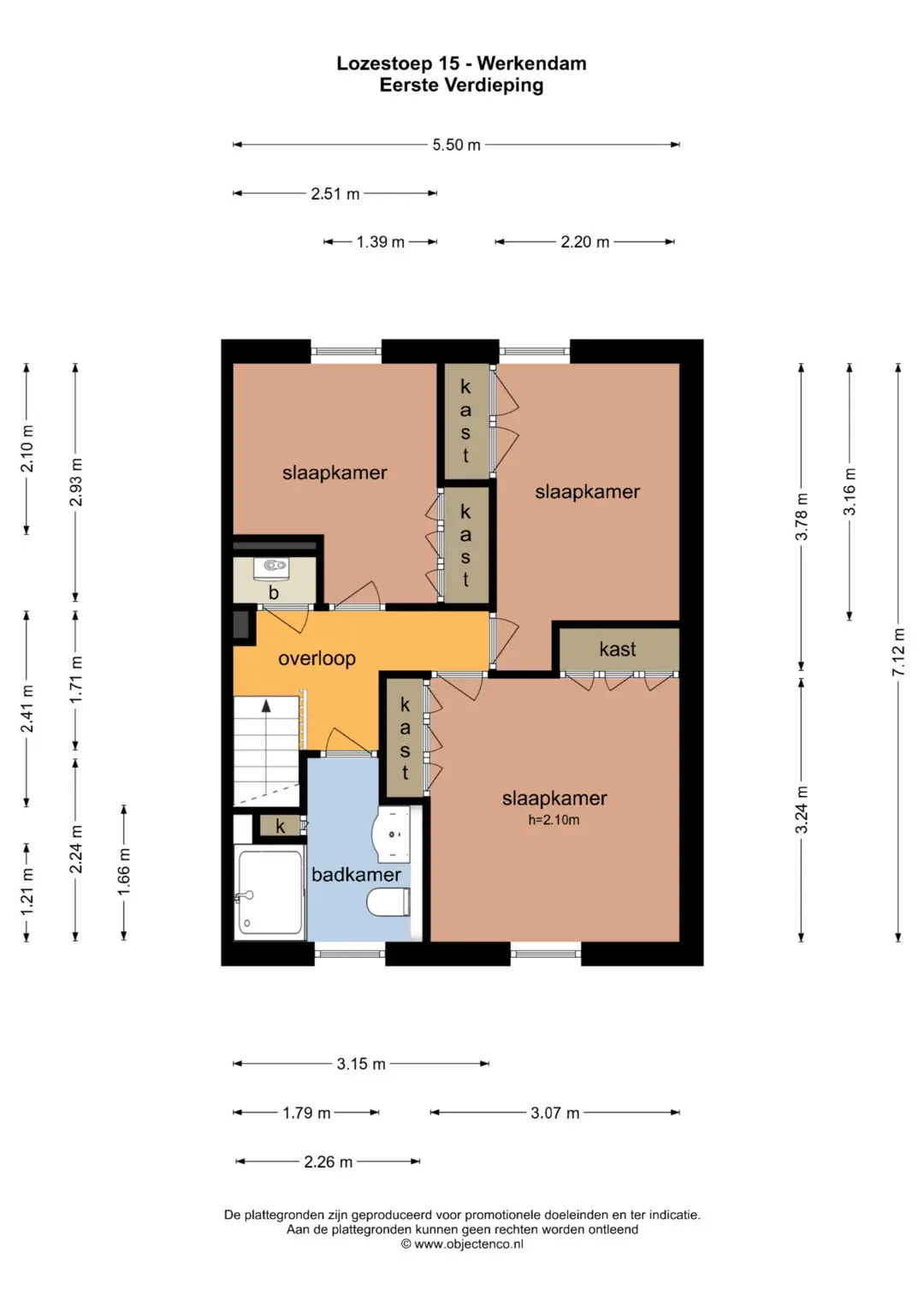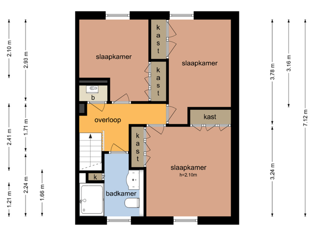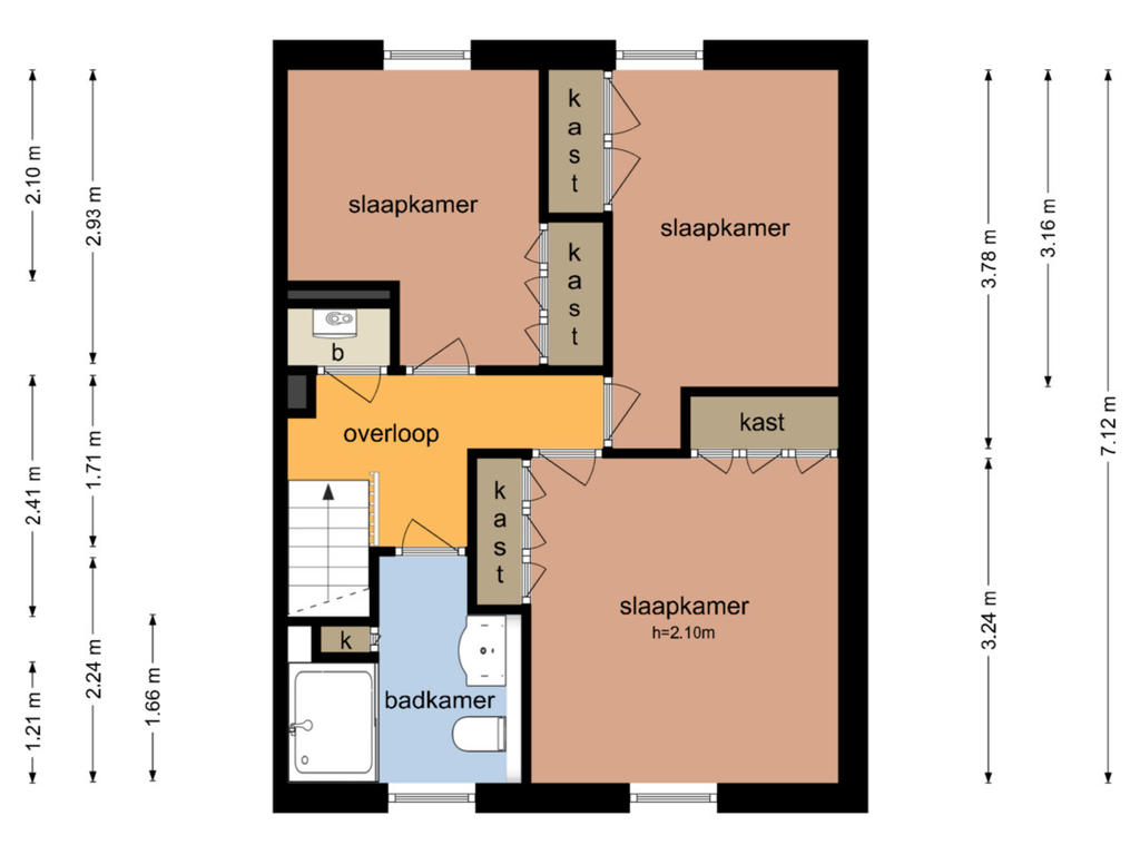 Op de verdieping bevinden zich drie slaapkamers, elk met handige inbouwkasten. De badkamer is voorzien van een douche, toilet en wastafelmeubel.