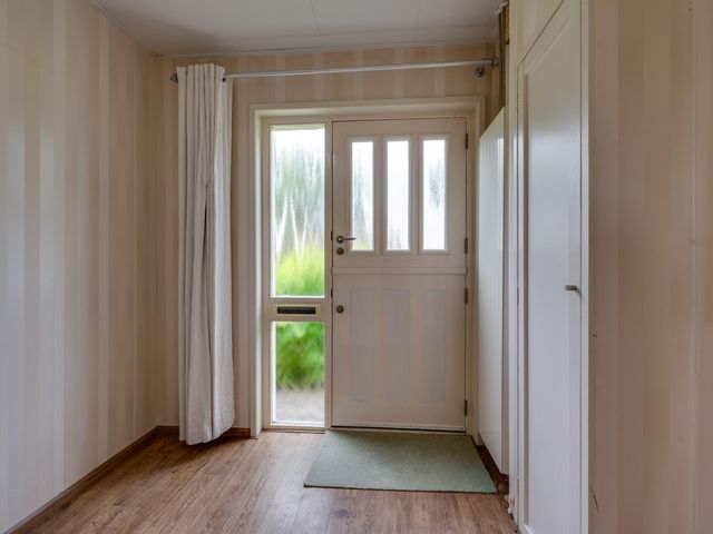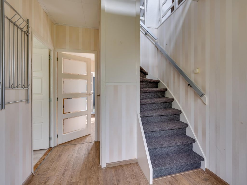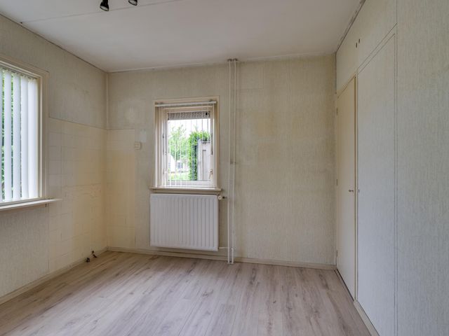 We beginnen in de entree/hal met een nette laminaatvloer, trapopgang, handige trapkast en een vernieuwde meterkast (met 5 groepen en 2 aardlekschakelaars). Direct aan de hal ligt een multifunctionele ruimte die uitstekend dienst kan doen als slaapkamer, werkkamer of hobbyruimte. Deze kamer is voorzien van een laminaatvloer en een vaste kast.