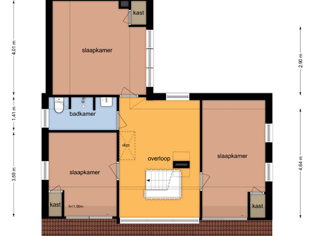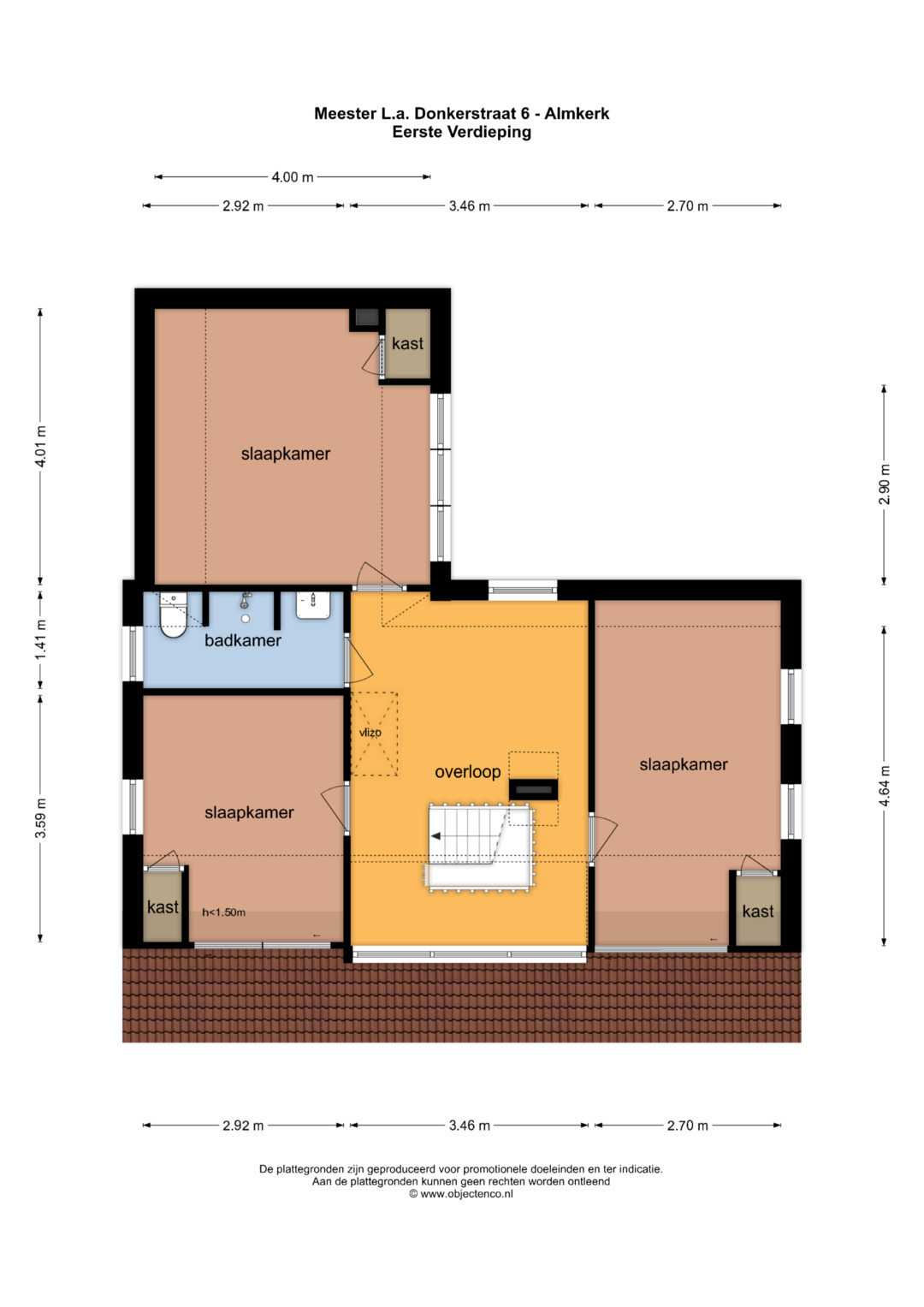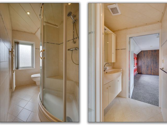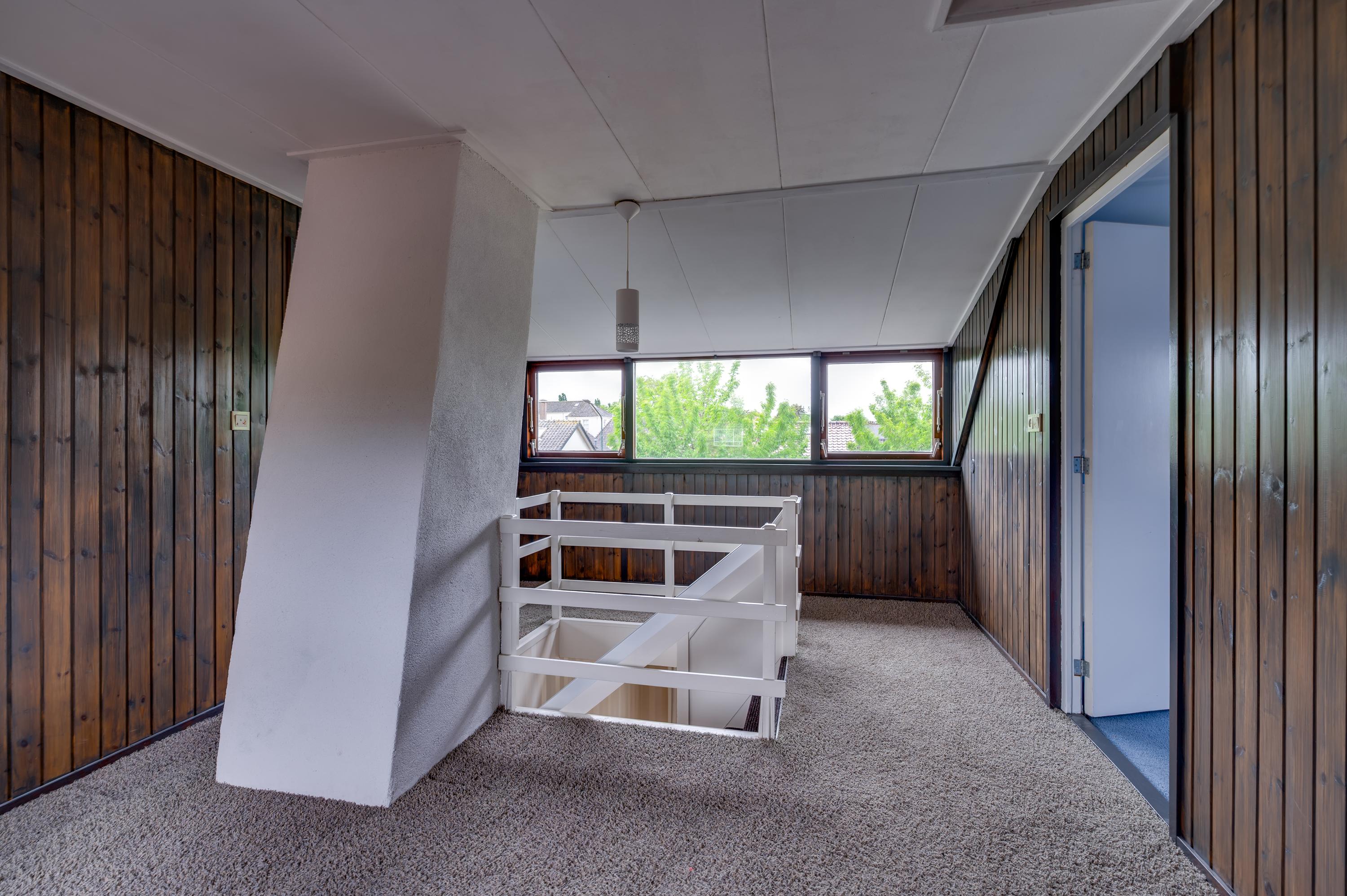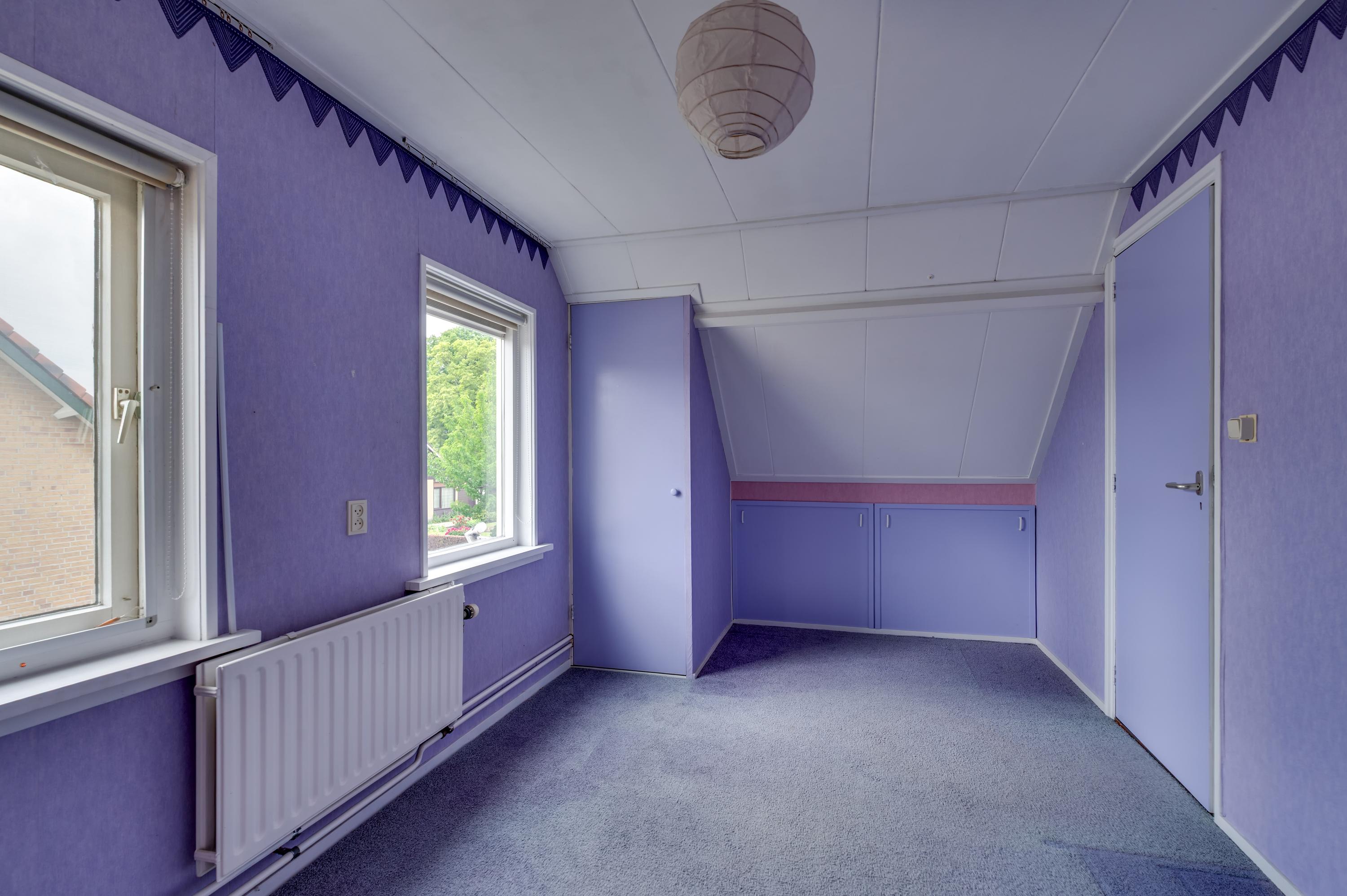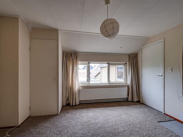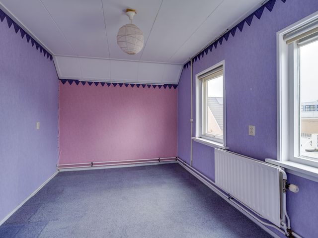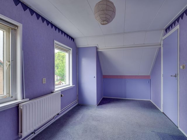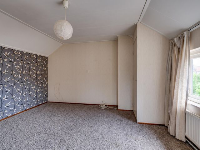 Op de verdieping bevindt zich een overloop met vloerbedekking, een dakkapel en toegang tot de bergvliering via een losse steektrap. Er zijn drie slaapkamers, elk voorzien van vloerbedekking en een vaste kast. De grootste slaapkamer is heerlijk ruim. Ook vindt je hier een tweede, volledig betegelde badkamer met een douchecabine, hangend toilet, wastafelmeubel en designradiator.