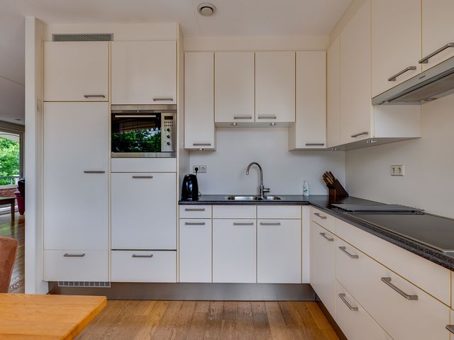Met de lift kom je uit op de derde verdieping van het appartementencomplex. Zodra je binnenstapt in de ruime hal, merk je direct hoe licht en open de woning aanvoelt. Vanuit de hal heb je toegang tot de woonkamer, badkamer en (slaap)kamers. De woonkamer en eetkamer zijn ruim en baden in het licht. Via één van de drie schuifpuien stap je zo het grote balkon op, waar je optimaal kunt genieten van de buitenlucht. De open keuken grenst direct aan de eetkamer en is volledig uitgerust met een koelkast, combi-oven, vaatwasser, 1,5 spoelbak, carrousel, inductiekookplaat en afzuigkap – perfect voor wie graag kookt.